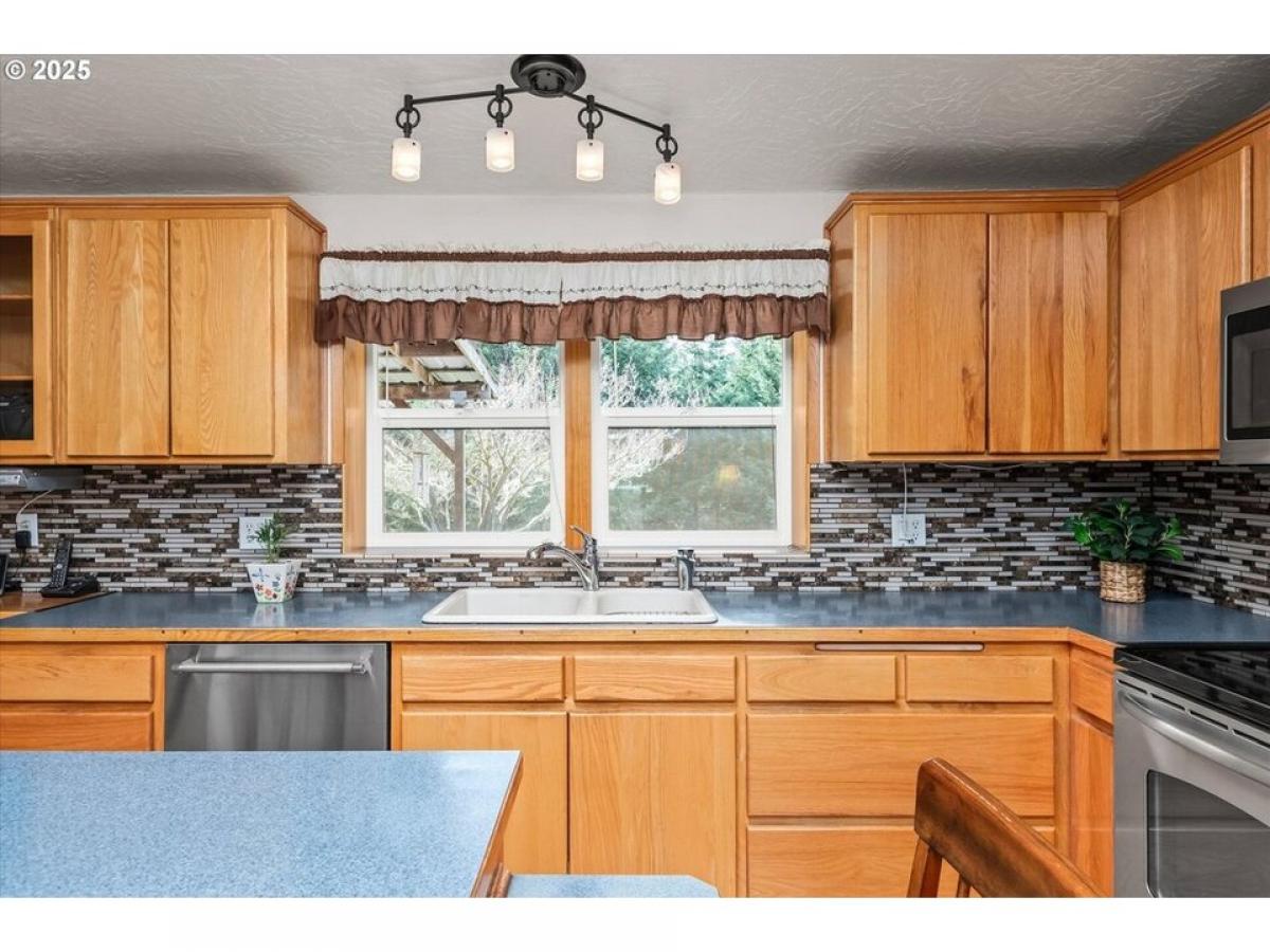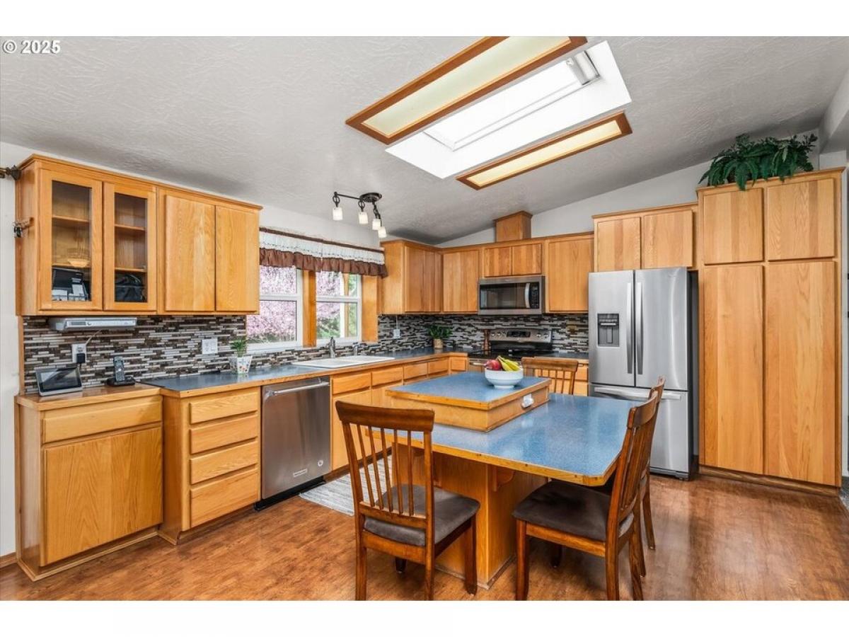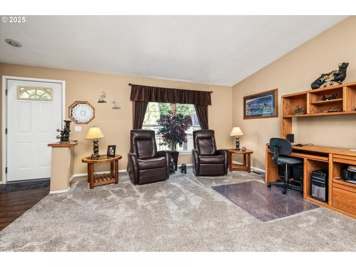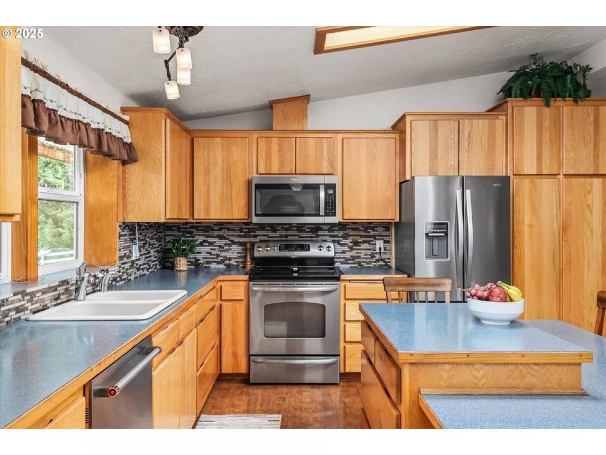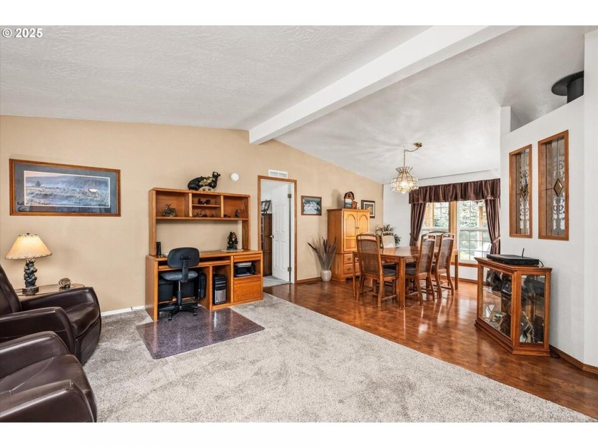 40 acres ( 2 tax lots ) of secluded paradise at your doorstep. The private drive leads to a meticulously maintained manufactured home that sits on 5 acres. This home has 3 bedrooms, 2 full bathrooms and many amenities throughout including a beautiful primary suite with a large updated bathroom, double sinks, vaulted ceilings, skylights, walk in closets and custom kitchen cabinetry. Outside there is plenty of storage in the numerous outbuildings and RV parking. Oversized 30X24 2 car detached garage with RV storage cover. There is also a separate shop with a roll down door 24X11. Two fire pits and a covered Trex deck with fans facing the 35 acre second tax lot of beautiful timber land that was cut and replanted 30 years ago. Large fenced garden area with access to irrigation well water. Enjoy exploring the pond and wooded trails on your quad.