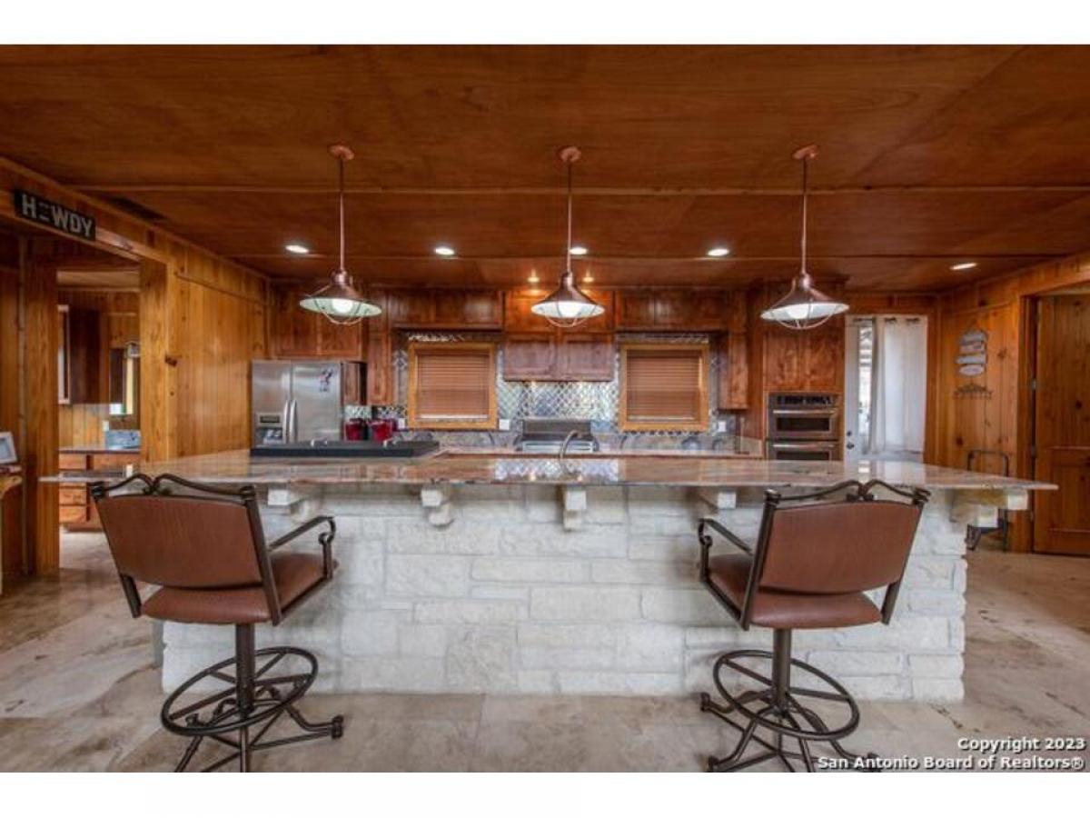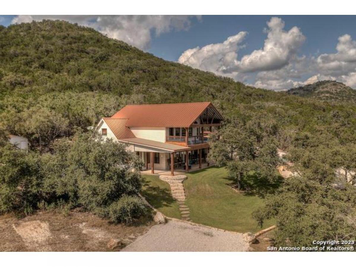 Texas Hill Country living at it's best! Magnificent views from this 4 bedroom, 3 bath custom home overlooking the Frio Canyon on 5+ acres. Extraordinary attention to detail and quality is evident throughout every room. Meticulous maintenance is apparent inside and out and all appointments are top-quality. Heated pool, outdoor kitchen/cabana, stocked fish pond, huge carport and several metal storage buildings all add to the enjoyment of this beautiful home and property. Private Frio River Park for property owners. 40'x76' Barndominium on 1.9 adjoining acres is available @ $700,000.