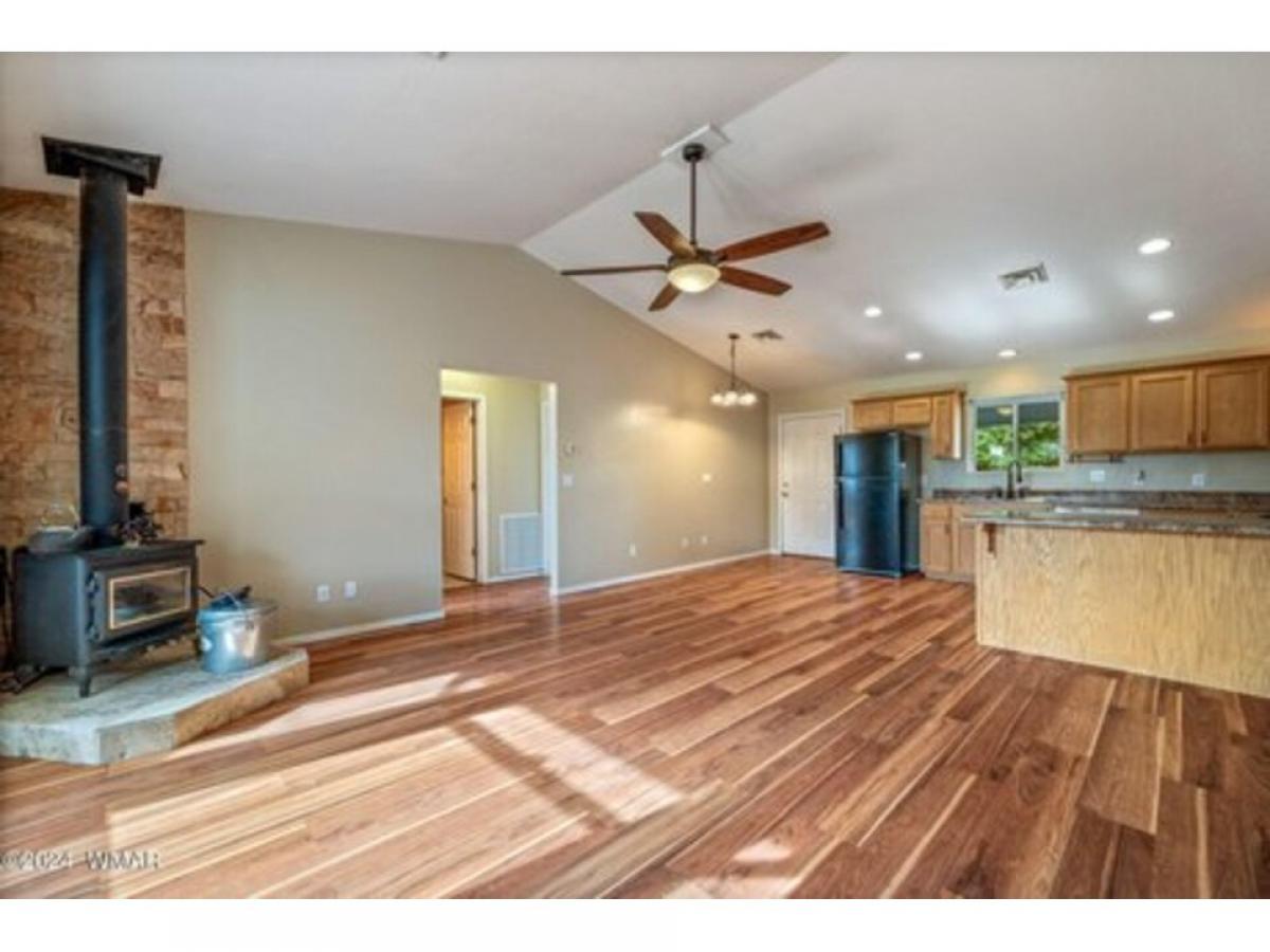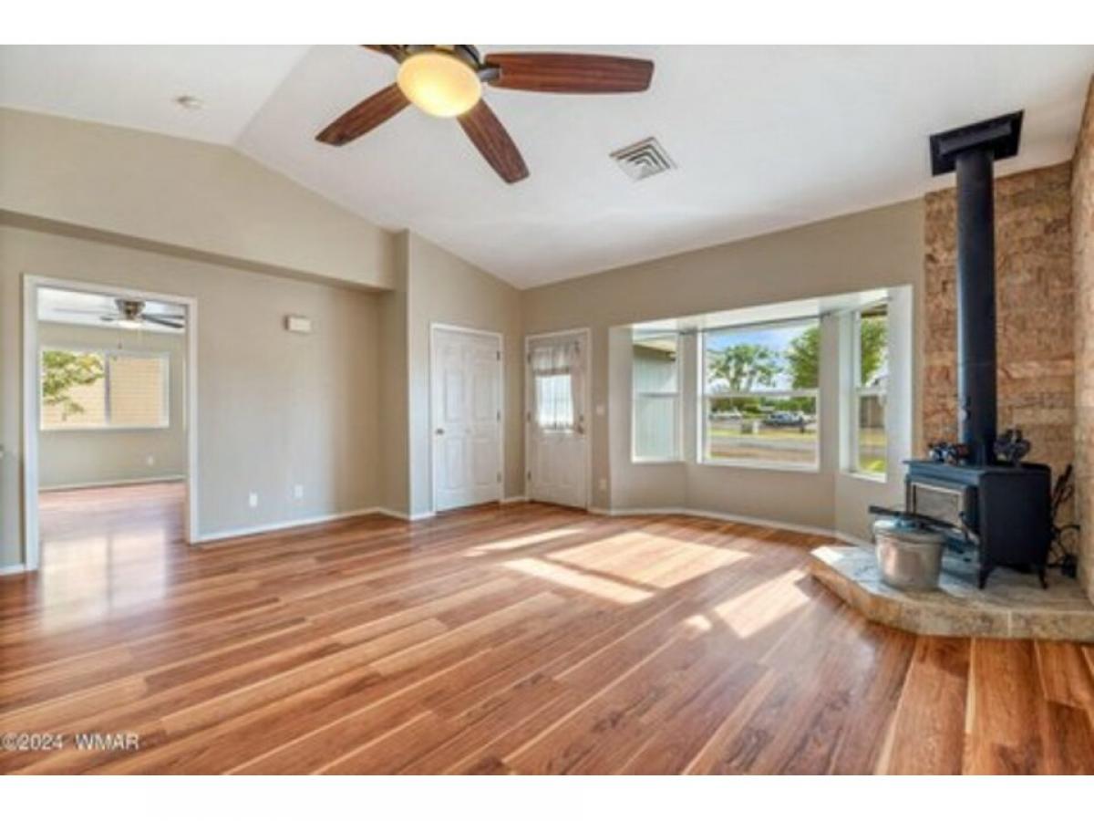 Split floor plan home with laminate flooring and tile throughout. Home features three bedrooms, 2 baths and a two car garage on a quarter acre lot that is centrally located in the Town of Eagar. Tasteful rock work behind woodstove in living room to enjoy all winter long. Come take a look, easy to show.