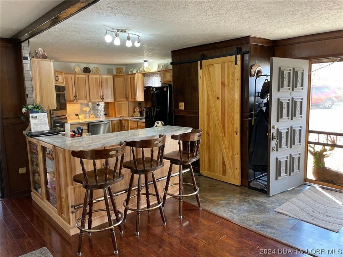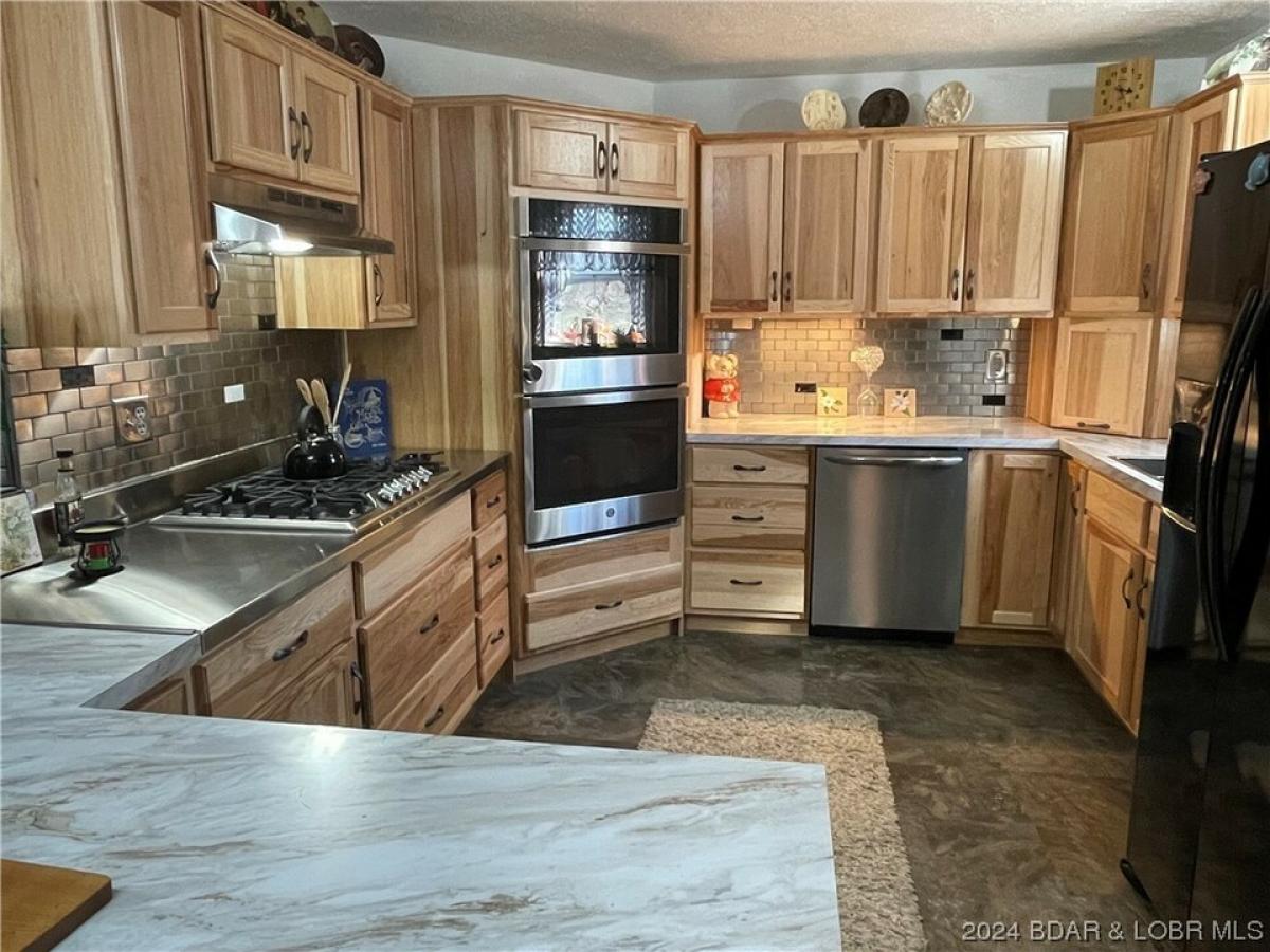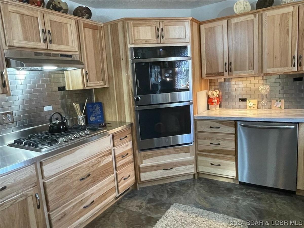PRICE REDUCTION!! This well built, well maintained home was builder's home. Gorgeous wooden staircase. Lots of updates - all new kitchen with hickory cabinets, gas stove, double oven, & stainless countertop. Also has new baths, sliders, and decks. Main level offers living, kitchen, dining, main bedroom with bath, laundry, and 1/2 bath. There's an oversized attached 2 stall garage. Lower level is a huge finished walkout basement with large living room, 2 bedrooms, a full bath and 2 additional rooms for more bedrooms or storage. 2nd parcel offers room to park your camper or build a shop. Lakefront is owned by the HOA and is common lakefront for all HOA members. Community dock is a short walk or golf cart ride away. Boat slip with a lift is included. Seller is offering a 1 year home warranty. Located down O Road near Laurie in N. Buck Creek Cove. Nearby golf course, movie theater, numerous restaurants and grocery stores. Peaceful neighborhood in a park like setting. Come see this beautiful home today!
