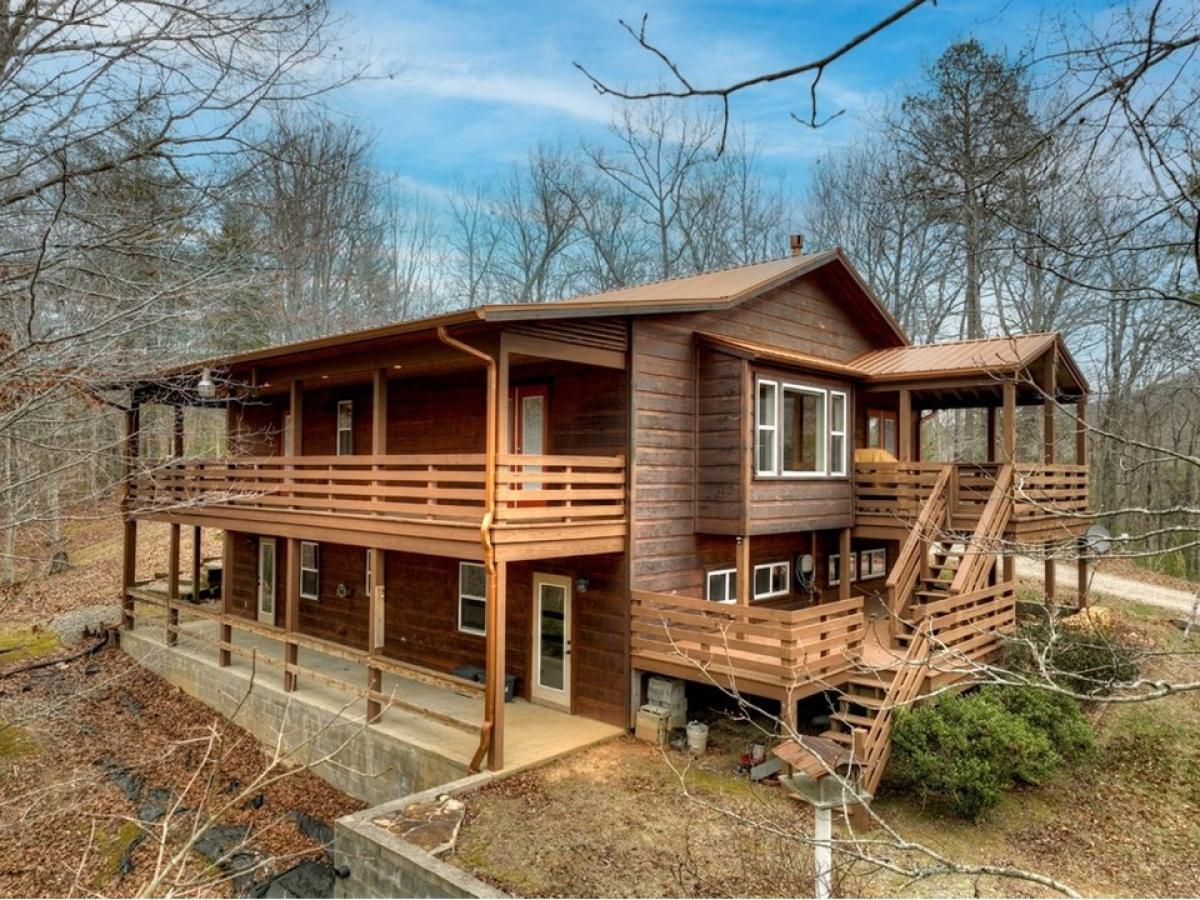 Discover your exclusive mountain retreat on over 17 acres nestled in the North Georgia Mountains! This unique property showcases two residences and a workshop, all set against the backdrop of breathtaking, panoramic views that could easily be worth a million dollars, with direct access to the Chattahoochee National Forest along picturesque Skeenah Gap Road. The centerpiece is a custom-built main house, crafted by a master craftsman, that harmoniously blends wood and stone elements. The interior boasts a spacious living room complete with vaulted ceilings and a warming gas log stove, setting the stage for cozy evenings. The gourmet kitchen is a chef's dream, featuring a built-in oven and microwave, a central island, elegant granite countertops, a stylish hood vent, and exceptional lighting. The primary suite offers a luxurious ensuite bathroom equipped with a walk-in shower, dual vanities, and a generous walk-in closet. Step outside onto the wrap-around balcony to soak in the serene views of your sprawling estate. The potential for expansion is immense with the main home's basement, which is ready for customization. It offers a finished bathroom and the flexibility to design additional living space or an independent apartment. Accompanying the main residence is a modular guest house, perfect for visitors or as a rental opportunity, including two bedrooms, 1.5 bathrooms, and a full kitchen and living area. Additional features include a spacious 900 sq ft workshop and a fenced garden area, enhancing this property's appeal as a one-of-a-kind private mountain sanctuary.