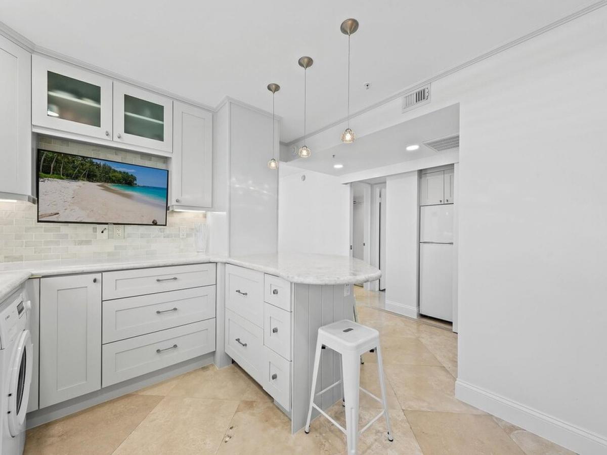 Beautifully updated Southern Corner with direct Intracoastal views! In addition, since this is a corner, you have additional southern facing windows a larger kitchen amp; private window w/ views of the Ocean! This renovated home features marble flooring, designer quartzite counters, custom cabinetry w/ a bar style ice maker, a Bosch Double Oven, Induction cooktop, Sub Zero refrigeration drawers, full sized washer and dryer and coffee bar! The until also has two bedrooms, an enormous indoor/outdoor balcony, with interior storage and walk in closets. Seagate of Highland is a beautifully renovated building with great amenities - Pools, Clubhouse, plus deeded beach access across the street with chairs, covered parking, chase loungers and a shower on the sand, community Boat dockage, bocce, etc.