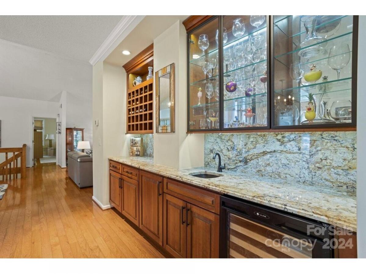 Outstanding home offering winter mountain and golf course views. Situated on 1.44 private acres with exquisite outdoor lighting and multiple outdoor living options. The main level boasts hardwood floors, open floor plan, great room with cathedral ceiling and wall of sliders leading to the sunroom, den with gas fireplace and built-ins, well-appointed and spacious kitchen with granite, stainless steel appliances and island with breakfast bar flowing seamlessly to the den, dining room with stunning bar featuring granite tops, wine cooler, wine storage and glass display cabinetry, primary suite with dual walk-in closets, private deck, walk-in tiled shower and double vanity, powder bath, laundry with cabinetry and sink. Lower level features a 2nd primary suite with bath, add#039;l guest bedroom and bath, family room, office, exercise room and flex space. Amazing outdoor options include a private deck with hot tub, multi level decking and sunroom. 3 car garage. Generator. Close to amenities!