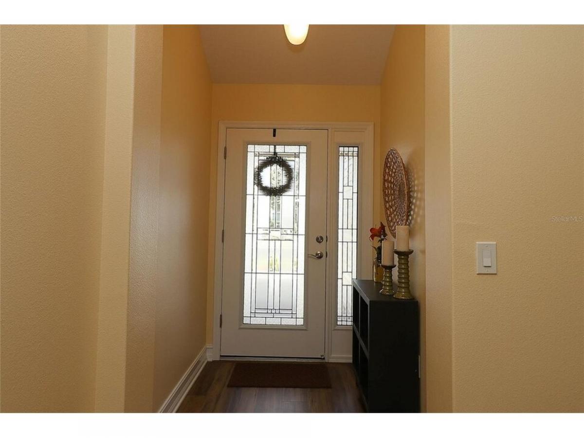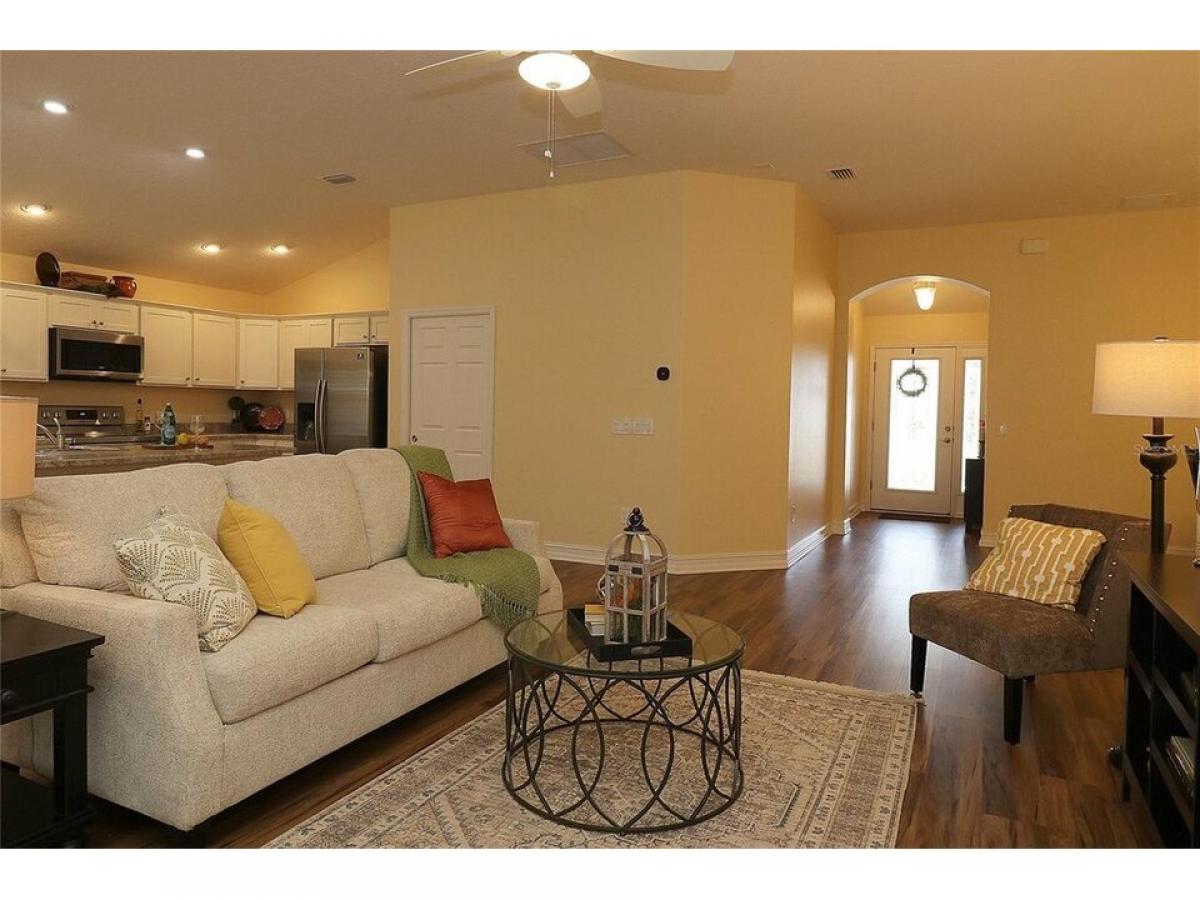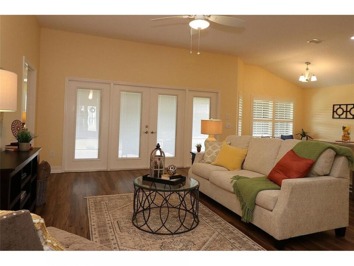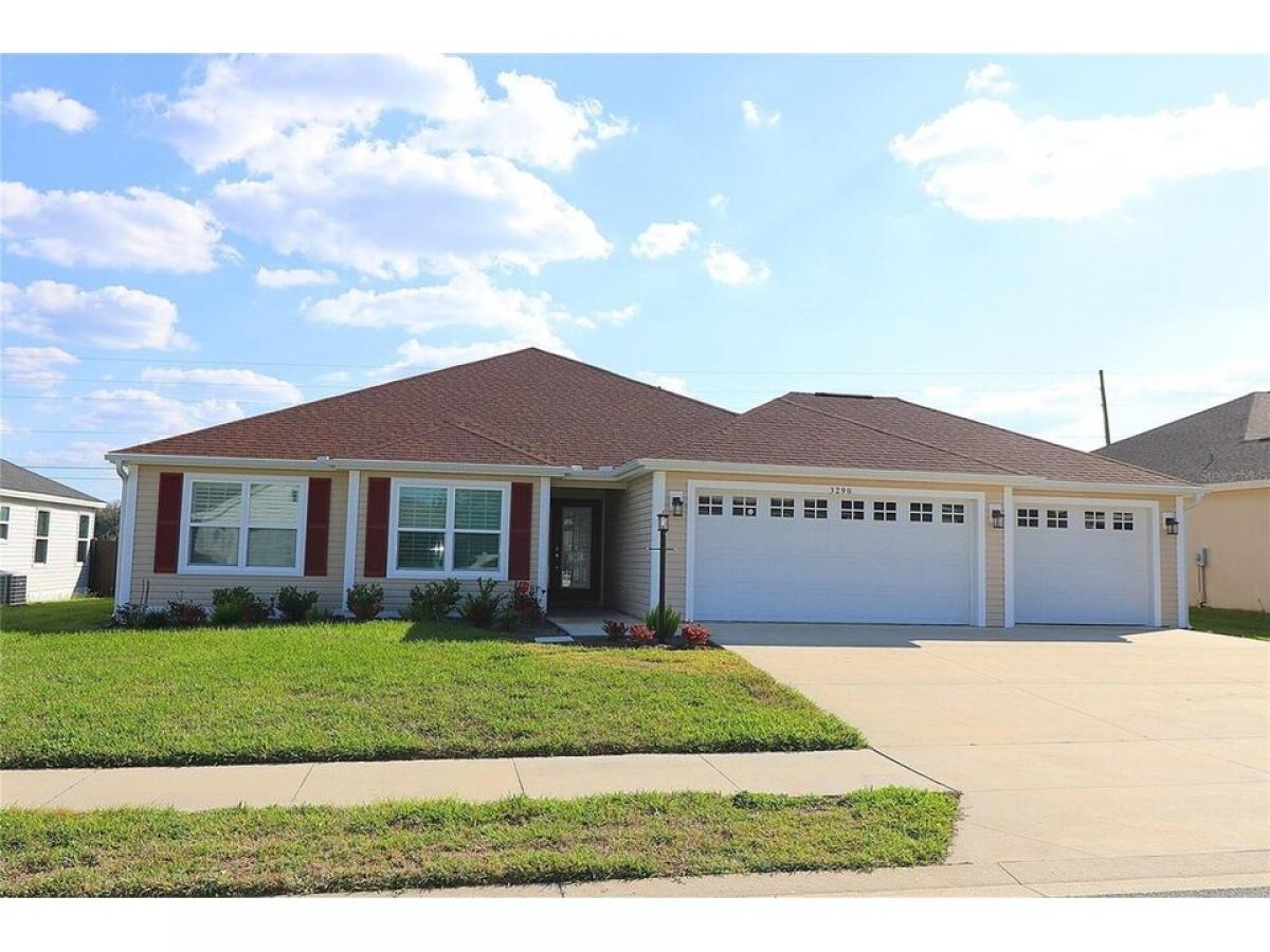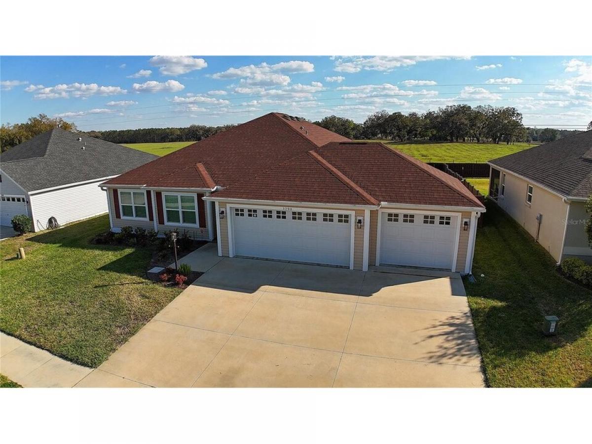 Come by and see the home, Just REDUCED! This home has been Professionally Staged. This lovely 4/2 home in the family friendly community of Oxford Oaks is just beckoning your family to visit. This community is for families and grandparents who want their family close by. Who knows, once you move here, maybe your family will move to Florida. This home is a Ponderosa Pine model with 4 bedrooms, 2 baths and a 3 car garage that has the most beautiful epoxy you#039;ve ever seen!. There is a wonderful open green space behind the fenced yard ( which has room for a pool). Imagine sitting on this extended screened lanai and looking at the beautiful birds and wildlife. The lanai is extended 4 feet and has motorized privacy shades and a sealed floor. To get to the lanai you have to open the white French doors with built-in adjustable mini blinds. Now lets come in the stained glass front door and you will see the gorgeous luxury vinyl planking which is in the living room, dining room and kitchen. The high vaulted ceilings and the new neutral painted walls throughout are a breath of fresh air. The open concept gives you a place to entertain while you prepare meals or cocktails. The kitchen has Bay cabinets and stainless steel appliances and plenty of storage with pull-outs in every cabinet and a lazy-suzan in the corner. This is an all electric home. Every window in this home has plantation shutters ( with a Life-time guarantee) and the base boards are tall. The ceiling fans in the living room, 4 bedrooms and the lanai all have lights. The Primary suite is very large and has a bathroom with a Roman shower, dual sinks, a huge walk-in closet, and a linen closet. All of the guest bedrooms have closets and one has a walk-in closet. The guest bath has a tub and shower. There is an interior laundry with a washer and dryer and a utility sink and a pantry. Oxford oaks is a quiet gated commnity close to shopping and CR 466. It was built by and adjacent to The Villages, but not an actual part of it. There is NO BOND, NO AMMENITY FEES, but an HOA that is about $659 per year. There is large resort style community pool, a playground, basketball,tennis and pickelball courts. You have to see this home.