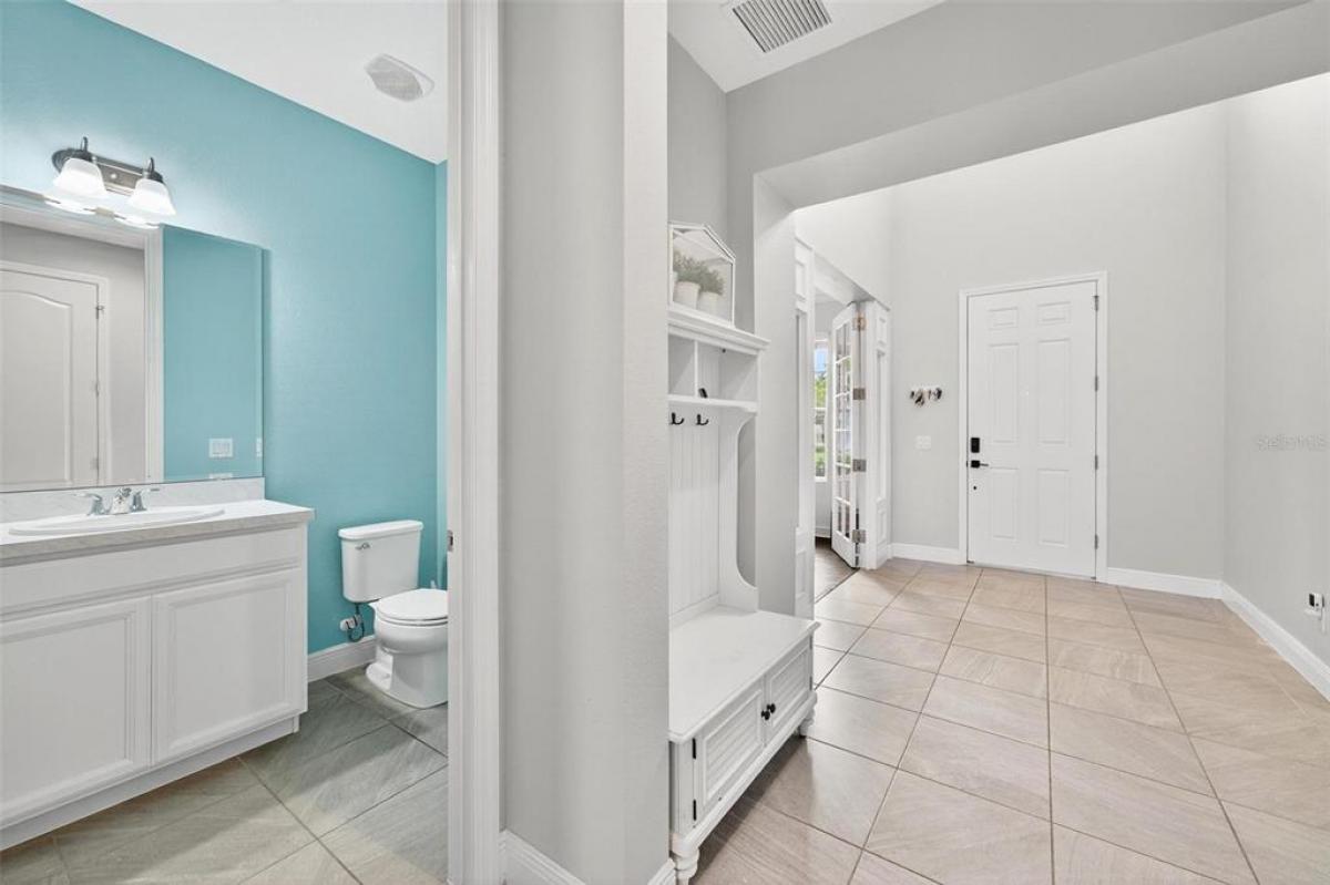 This extraordinary 3,800 sq. ft. Exbury plan offers a luxurious waterfront lifestyle on a beautiful homesite at Hanover Lakes, featuring an open-concept design with 5 Bedrooms, 3.5 Baths, and a 3-car garage, highlighted by an incredible 1st Floor Primary Suite. The property provides direct water access via a navigable canal to the Alligator Chain of Lakes for great fishing and boating opportunities across 5 lakes. The oversized kitchen is a chef's delight with beautiful 42" cabinets, quartz countertops, a tile backsplash, expansive island, walk-in pantry, Stainless appliances, and an adjacent Butler's Pantry leading to the Dining Room. A dramatic 2-story Family Room overlooks a spacious covered rear Lanai for entertaining, and the home features upgraded luxury vinyl flooring in main 1st-floor living areas and included window blinds throughout. The Primary Bedroom's luxurious en-suite bath boasts 2 walk-in closets, separate quartz vanities, a free-standing soaking tub, and a separate walk-in shower. Additional gathering space is found in the 2nd-floor Loft/Family Room, ideal for media or exercise. The exterior includes an attractive brick paver driveway and a private, completely screened, salt water pool with a splash pad and beautiful waterfall. Exceptional community amenities include a resort-style pool, splash pad, and playground, and the convenient location is close to Disney, Universal, Sea World, nearby Atlantic Beaches, and expressways for easy access to Downtown Orlando.