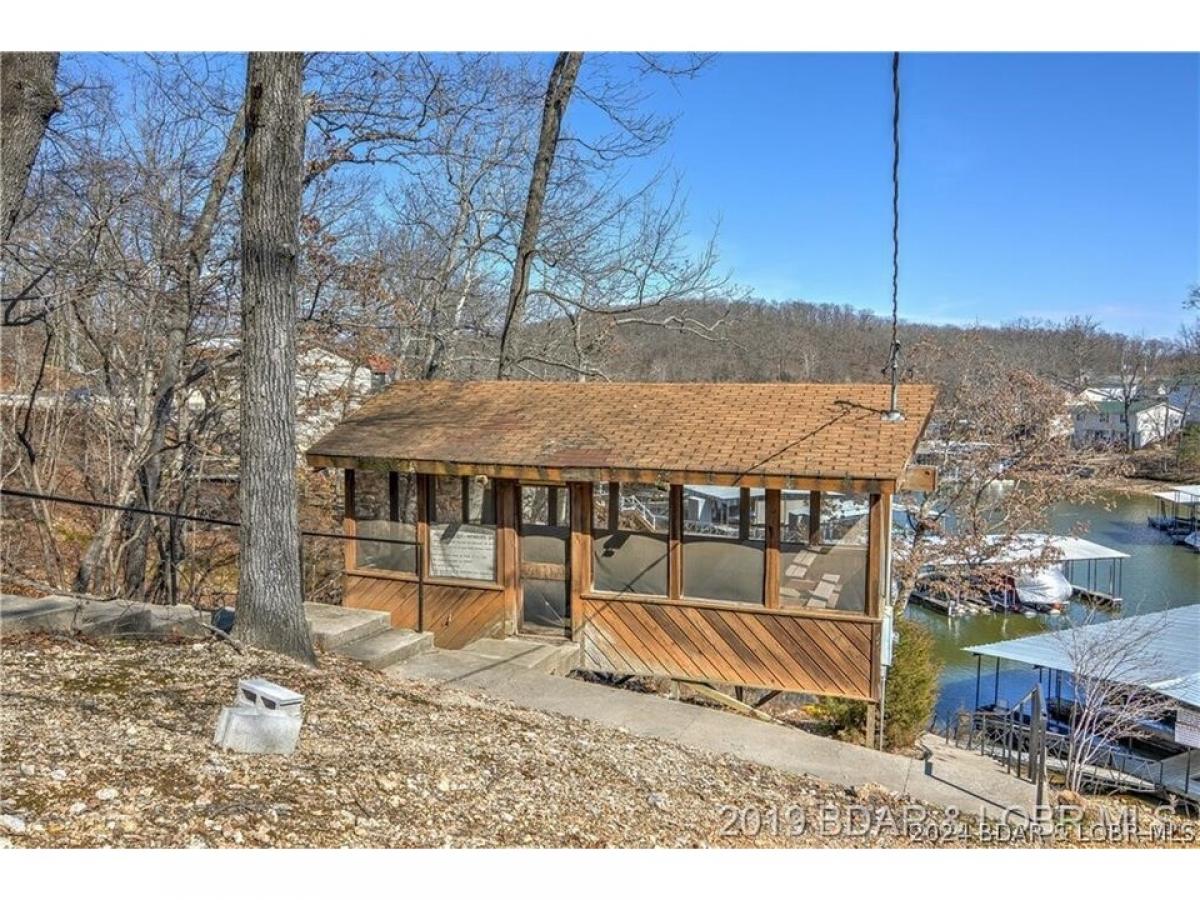 HUGE PRICE REDUCTION!!! Discover the charm of this unique A-frame home, overlooking a wonderful cove of the 3MM, Lake of the Ozarks! With a great open floor plan, offering two stories of inviting living space including 2 Beds, perfect for a small family or a serene weekend retreat. Nestled on a generous 2-acre lot, the property provides stunning lake views and a peaceful atmosphere. The home has been beautifully updated and features a screened-in porch, providing a serene and comfortable space to unwind and immerse yourself in the tranquil surroundings. The property also includes a lakeside concrete patio with a firepit, creating an ideal setting for cozy evenings under the stars. Benefit from a current lease on a 14'x40' boat slip at the nearby marina, allowing for easy access to boating and water activities. Additionally, a community dock provides a convenient spot to pick up friends and family. Don't miss this rare opportunity to own a captivating lakeview home in a prime lakeside location!