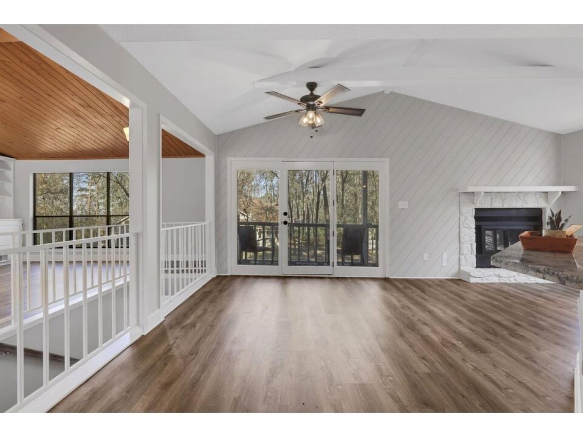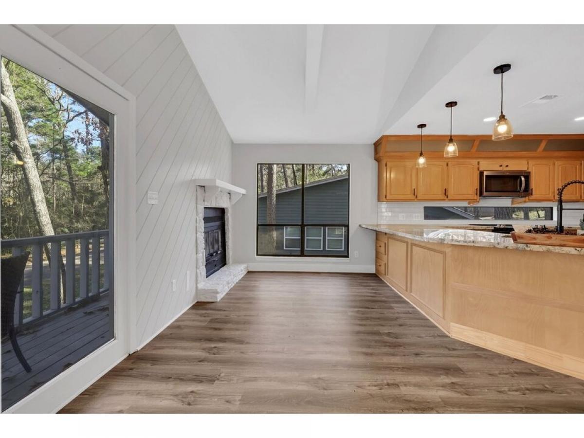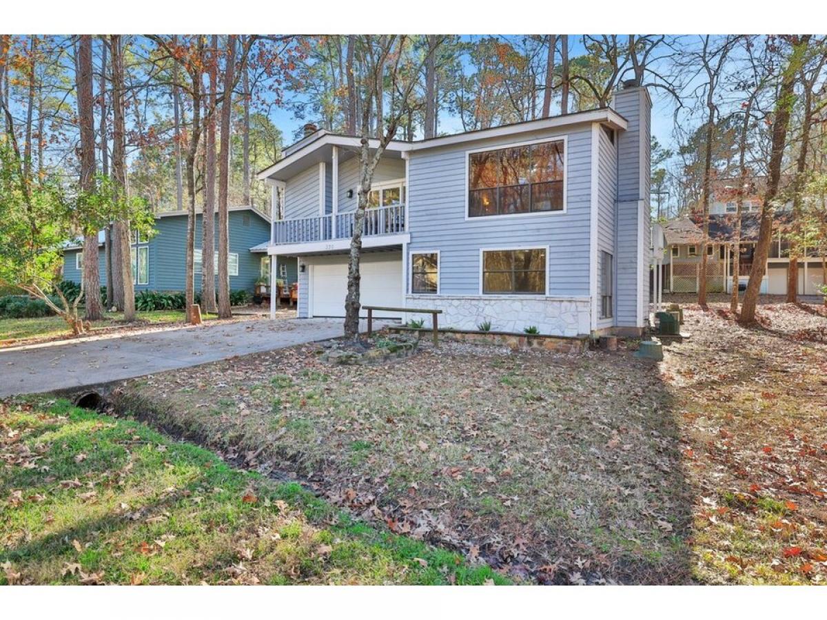Discover the charm of this unique home nestled in a welcoming lake community on Lake Livingston. This 2,276 sq. ft. home features 3 bedrooms, 2 full bathrooms, and a split floor plan, offering both comfort and charm. The heart of the home boasts a bright living area with built-ins around the cozy wood-burning fireplace. There is a second fireplace in the kitchen/dining area adding warmth and character. The kitchen has granite countertops, large breakfast bar and plenty of cabinet space for storage. Escape to the primary suite upstairs with ensuite bathroom including dual sinks, marble countertops and a spacious walk-in closet. The large bedroom downstairs could serve as additional living space or game room for the kids. Enjoy a walk-out balcony on the second floor and a 2-car attached garage. Located in Cape Royale, residents enjoy exclusive amenities including a 24-hour manned gate, pool, tennis courts, nature trail and a marina with small store.