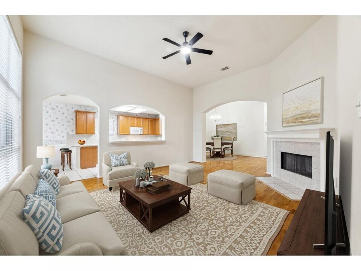 Welcome to this charming one-story home in Pearland! Nestled on a quiet cul de sac with a green space behind, this 3 or 4 bedroom property boasts a formal dining room, cozy fireplace, and engineered wood floors throughout. Located off of the primary bedroom is an additional room for added versatility such as a nursery, study, or exercise room. With only one owner, this meticulously cared for home is a rare find. Don#039;t miss the opportunity to make it yours!