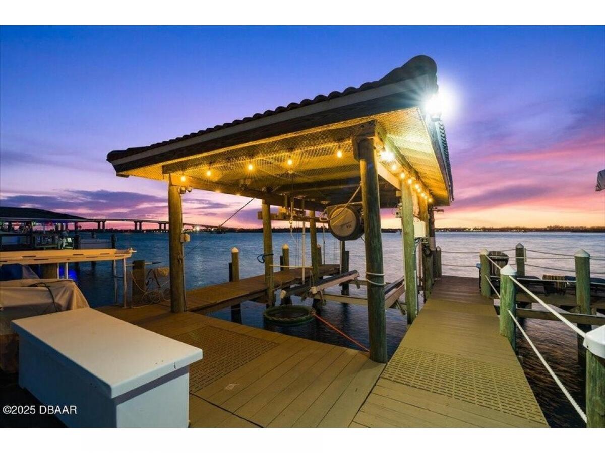THIS LISTING INCLUDES 3318 AND 3320 S PENINSULA DRIVE, PORT ORANGE, FL - Luxury Riverfront Estate in Port Orange! Discover unparalleled waterfront living with this exceptional estate in Port Orange, offering a main residence of over 4,300 living square feet and a separate, fully remodeled 3-bedroom, 2-bath home currently utilized as a short-term rental. Situated on a sprawling property with a gated entrance and a long, private driveway with 2 detached 2-car garages, this estate combines luxury, privacy, and versatility. The main house is designed for both comfort and elegance. As you approach, a large front patio provides an inviting space to take in the expansive grounds. Inside, the home boasts breathtaking water views from many rooms, including the generously sized kitchen, which features a center island and abundant workspace. A flex room, a dining room, and a living room with a cozy fireplace enhance the main level#039;s appeal... Two downstairs bedrooms each include their own private full baths, ideal for guests or multi-generational living. Bonus room is perfect for fishing equipment or storage and has a ice machine as an added bonus. The second floor is dedicated to the luxurious master suite, which encompasses nearly the entire level. It features stunning water views, two private balconies, a custom-designed walk-in closet, and a spa-inspired master bath. Outside, the estate is an entertainer#039;s dream. A screened-in inground pool and spa offer serene views of the river, while a firepit and a dock complete with two covered electric lifts and a floating dock provide the ultimate outdoor retreat. Boating, fishing, and waterside relaxation are seamlessly integrated into this home#039;s lifestyle. Additional features include hurricane shutters and hurricane-grade windows throughout most of the main home, providing peace of mind during storm season. House has solar that significantly off sets power bills. The separate 3/2 home at the front of the property has been meticulously remodeled from the studs up, featuring hurricane-grade windows and modern finishes. This space offers excellent income potential or can be used as a guest house. With its combination of luxury, functionality, and stunning riverfront location, this estate offers a rare opportunity to own a truly unique property in Port Orange. Square footage received from tax rolls. All information recorded in the MLS intended to be accurate but cannot be guaranteed.