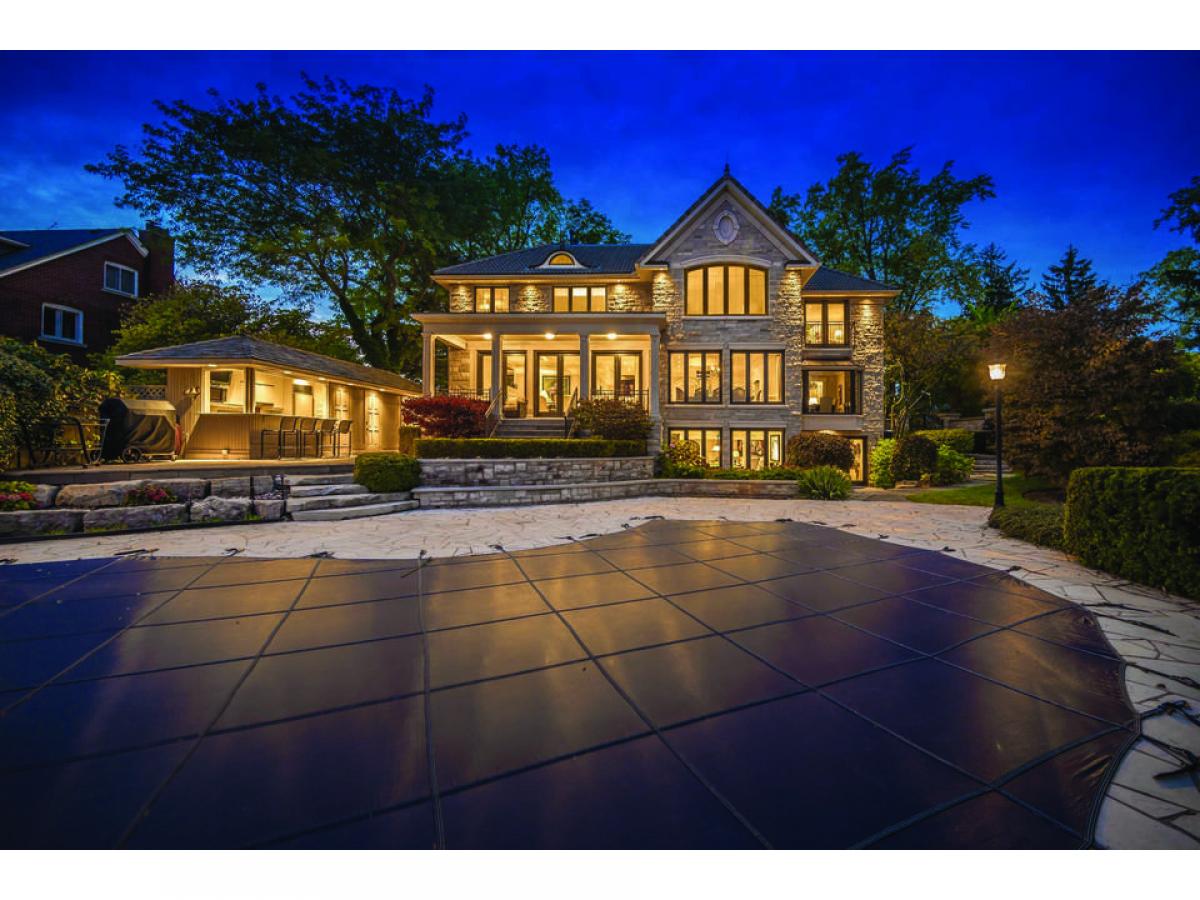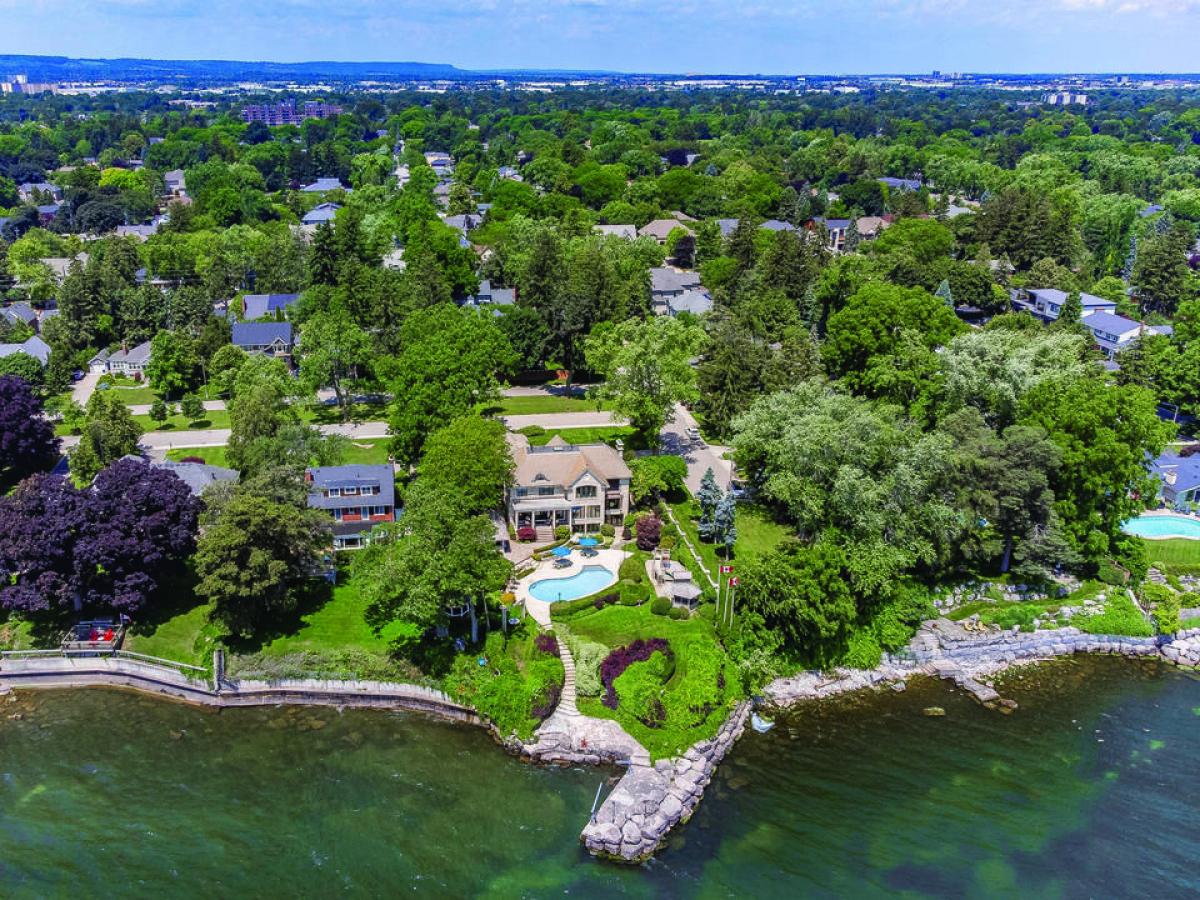 Over 7400 sq ft of exceptional living space. The epitome of timeless elegance with quality appointments and attention to detail throughout. The expanded addition at the rear of the home features floor to ceiling windows and unobstructed lake views. Stunning Primary Suite with spectacular lake view and 5 pce ensuite with steam shower. Luxurious main level office. Private guest suite over the garage. Lower living space with walk-out and dynamic wine cellar. Backyard oasis with private dock, outdoor kitchen. Lot size: Land 92' x 233' with Riparain Rights 92' x 402'. Prime cul-de-sac location.