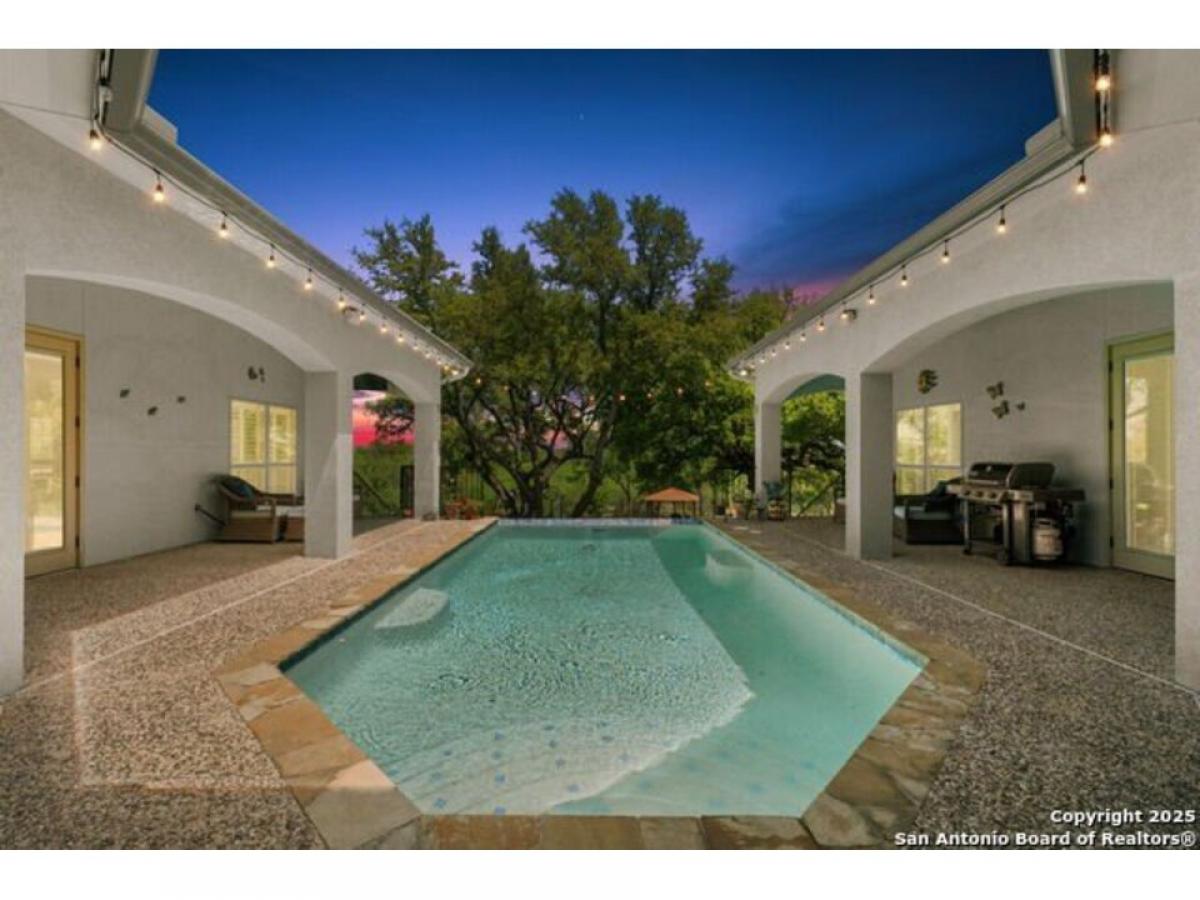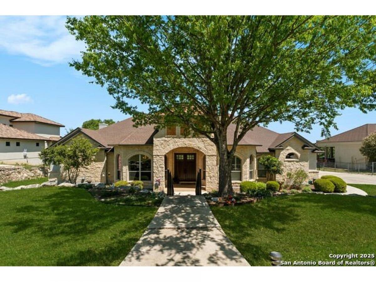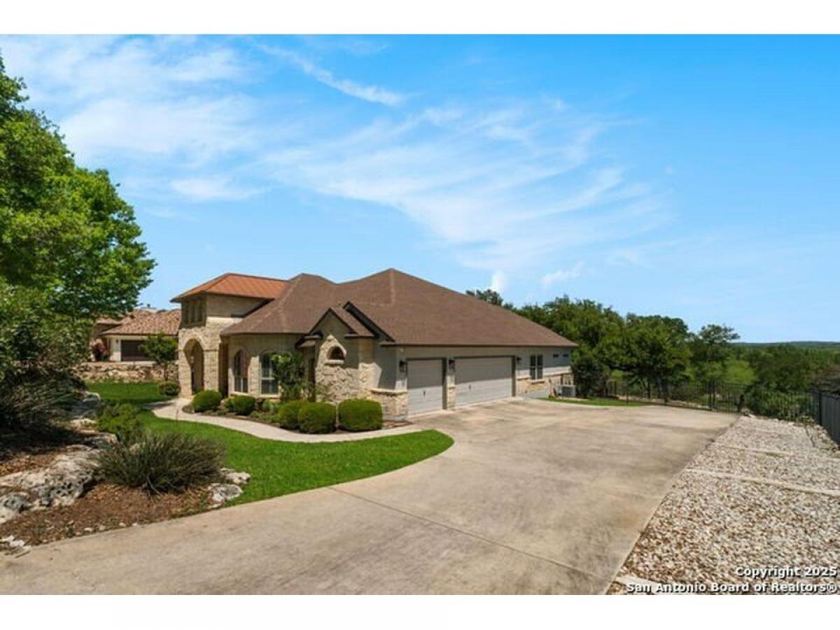 Nestled in the prestigious gated section of River Crossing, quot;The Waters,quot; 334 Whitestone Dr. is a breathtaking custom home that exudes elegance, comfort, and Hill Country charm. Set on a picturesque 1.04-acre lot that backs up to a serene greenbelt, this single-story retreat offers privacy, stunning natural views, and an unmatched lifestyle in one of Spring Branch#039;s most sought-after communities. Spanning 3,844 square feet, this home boasts an open-concept design that perfectly balances grand entertaining spaces with warm, inviting living areas. The gourmet kitchen is a chef#039;s dream, featuring double ovens, a warming drawer, custom cabinetry, and an eat-at island that seamlessly connects to both the casual dining area and the formal dining room-ideal for hosting intimate dinners or festive gatherings. The home features three spacious bedrooms, each with its own full bathroom and walk-in closet, providing ultimate privacy and comfort. A dedicated office offers a quiet space for remote work or study, while the luxurious primary suite serves as a true sanctuary, complete with a spa-inspired bathroom that includes a separate tub and shower, dual vanities, and an oversized walk-in closet. For those who love to entertain, the home theater is the perfect place to enjoy movie nights or watch the big game in a private cinematic setting. Just beyond the main living areas, the backyard unfolds into a stunning outdoor oasis, where a sparkling pool invites you to relax and unwind. Whether you#039;re enjoying morning coffee on the patio or hosting a weekend barbecue, this space offers the perfect balance of tranquility and entertainment. Car enthusiasts and golf lovers will appreciate the oversized garage setup, which includes a two-car garage plus a separate golf cart garage-ideal for easy access to the nearby River Crossing Golf Club. As a resident of this exceptional community, you#039;ll also have exclusive access to the private Guadalupe River park, offering a perfect blend of luxury and outdoor adventure. With recent updates including new wood flooring, new appliances, home sound system, and an unbeatable views, this home is truly one of a kind. Don#039;t miss the opportunity to experience the beauty and sophistication of this Hill Country retreat.