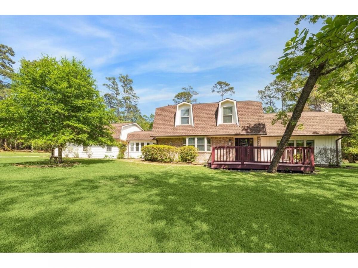 Country retreat on 5 private, wooded acres with scenic pond. This home has a newly added primary suite on the first floor with a luxurious bath and walk-in closet. 2 bedrooms are located on the first floor with a flex space that can be used as a sunroom, another living space or an office! Beautiful living area bathed in light with a vaulted and beamed ceiling and a stunning, stone fireplace! The cozy kitchen has stainless appliances, a dining area with a wood burning fireplace and a movable island. Upstairs are two large bedrooms and a large, connecting bathroom. Zoned to sought after Tomball ISD schools! Come enjoy country living but just a short drive to restaurants and shopping in nearby Tomball and Magnolia! (3 acres w/ 2800 sq. ft. metal building next door also available for sale, see 33502 Cripple Creek Drive)