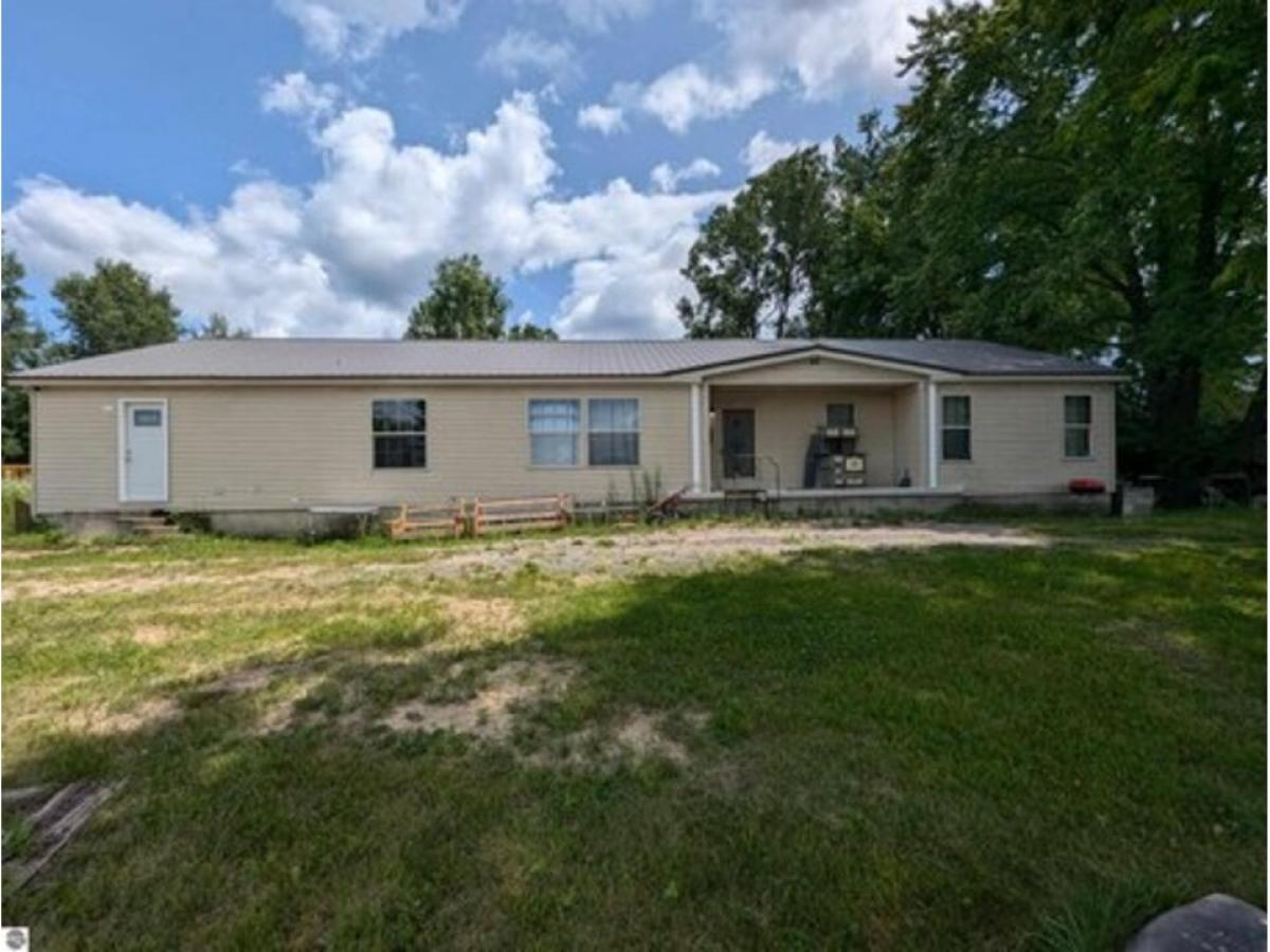 Spacious 3 bedroom, 2 bath manufactured ranch home on approximately 22 acres nearby M-61! This home is in need of some TLC, but has a ton of potential. There is a large primary bedroom with a private bathroom that has a shower, jet tub, and walk-in closet that has access from the bathroom and bedroom. The kitchen overlooks the dining area and has lots of cabinet space. There are two living rooms with one having a fireplace. For even more space, there's a massive unfinished basement. The grounds are in need of some clean up, but there is a 27x45 outbuilding for covered storage. Other features include a metal roof, outdoor wood burner, and a large pantry.