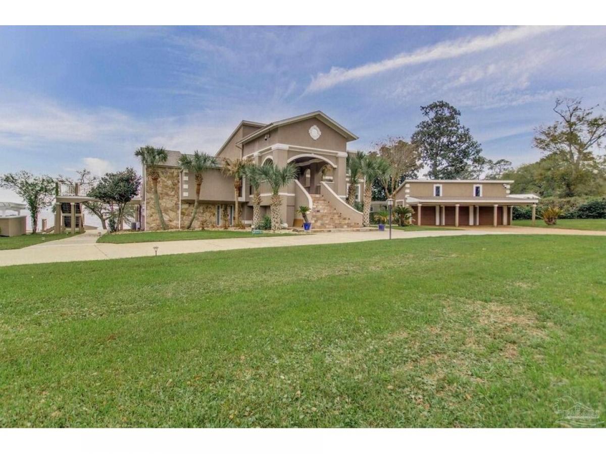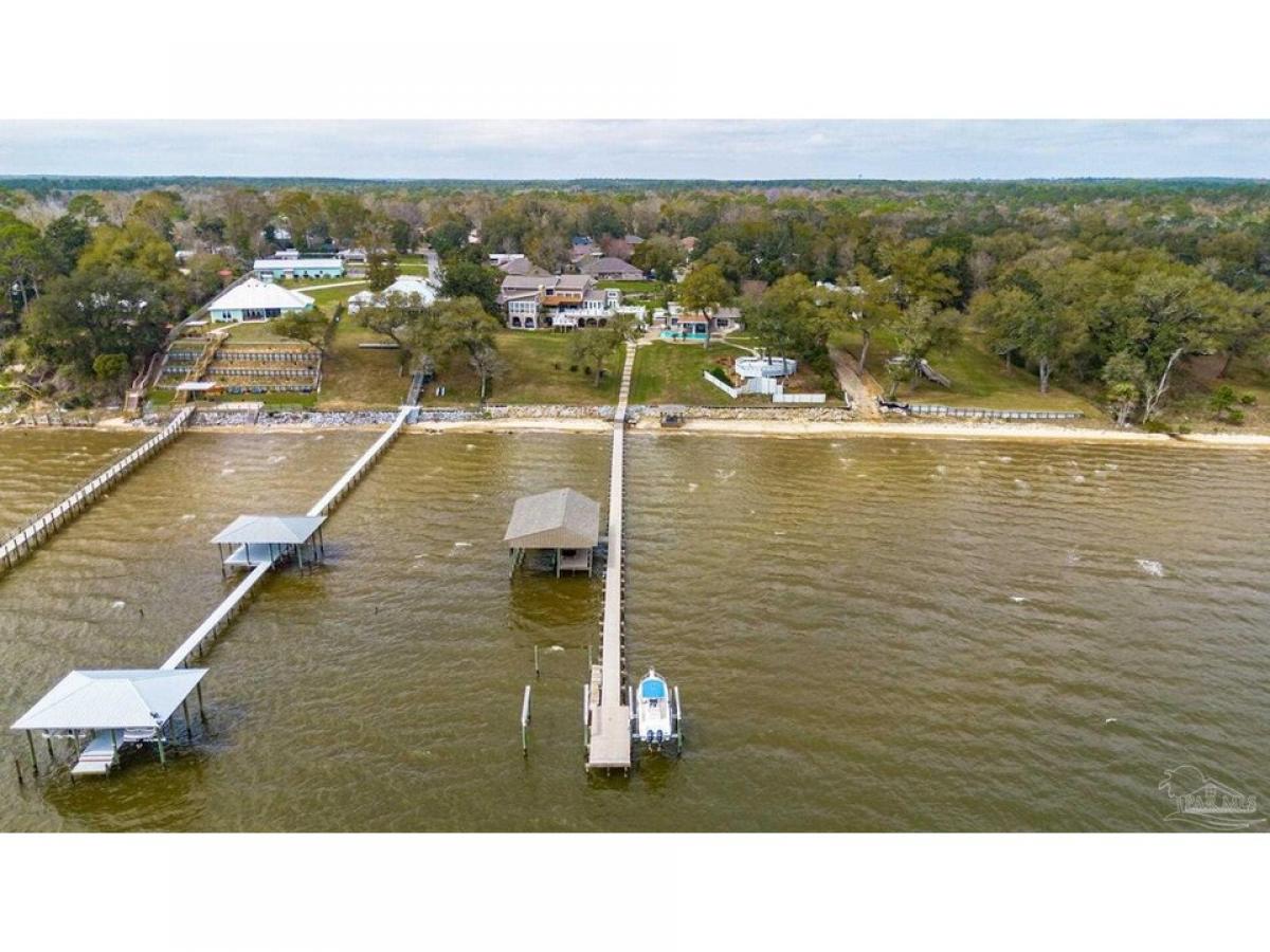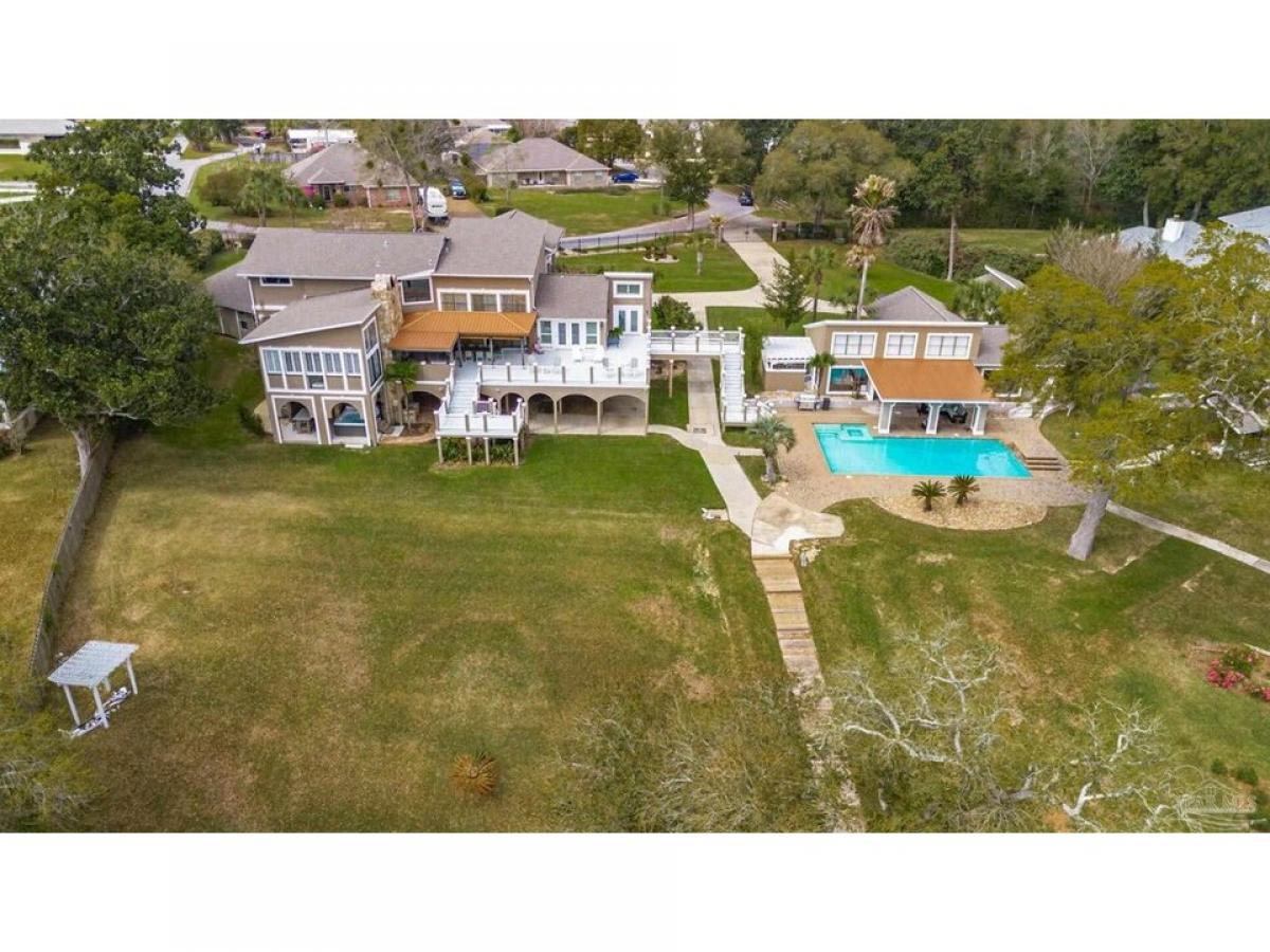 Stunning Waterfront Estatendash;Owner Financing Available-Private Retreat or Investment Opportunity. Wake up to breathtaking sunrises over the bay and nightly sunsets, the ultimate in luxury waterfront living. This extraordinary 2.09-acre estate, situated 40 feet above sea level, offers peace of mind with no flood concerns. With 300 feet of pristine, accessible shoreline and panoramic water views, this property is a rare find. The gated estate features multiple structures, including the main house, pool house, 3-car garage, garden shed, and gazebo. The main residence spans three levels, offering 5,559 square feet of luxurious living space, including 5 spacious bedrooms, 5.5 bathrooms, and an executive office. The gourmet kitchen is equipped with top-tier appliances, a Sub-Zero refrigerator, oak cabinetry, and granite countertops, providing ample space for culinary endeavors. The inviting living room boasts vaulted ceilings, travertine floors, a natural fieldstone fireplace, plantation shutters, and a wet barmdash;all complemented by sweeping bay views and French doors leading to the waterfront deck and outdoor kitchen.The primary suite is a private sanctuary, featuring his-and-her walk-in closets and a spa-like bathroom with a tub that overlooks Perdido Bay. The downstairs living quarters have a separate entrance, a family room, kitchen, 2 bedrooms, and bath with a steam room.The pool house offers 1,762 square feet of living space with 1 bedroom and 1bath, an open floor plan, a full kitchen, stunning water views, and double doors leading onto a veranda and pool. Wellcome boat enthusiasts! The expansive pier has a dock and includes two wet slips with lifts, plus an additional covered slip under the boathouse. This gated estate also includes a 3-car garage with the potential for a second-floor mother-in-law suite. All is set within beautifully landscaped grounds that offer limitless opportunities for relaxation and entertainment. This is a gorgeous luxury waterfront property.