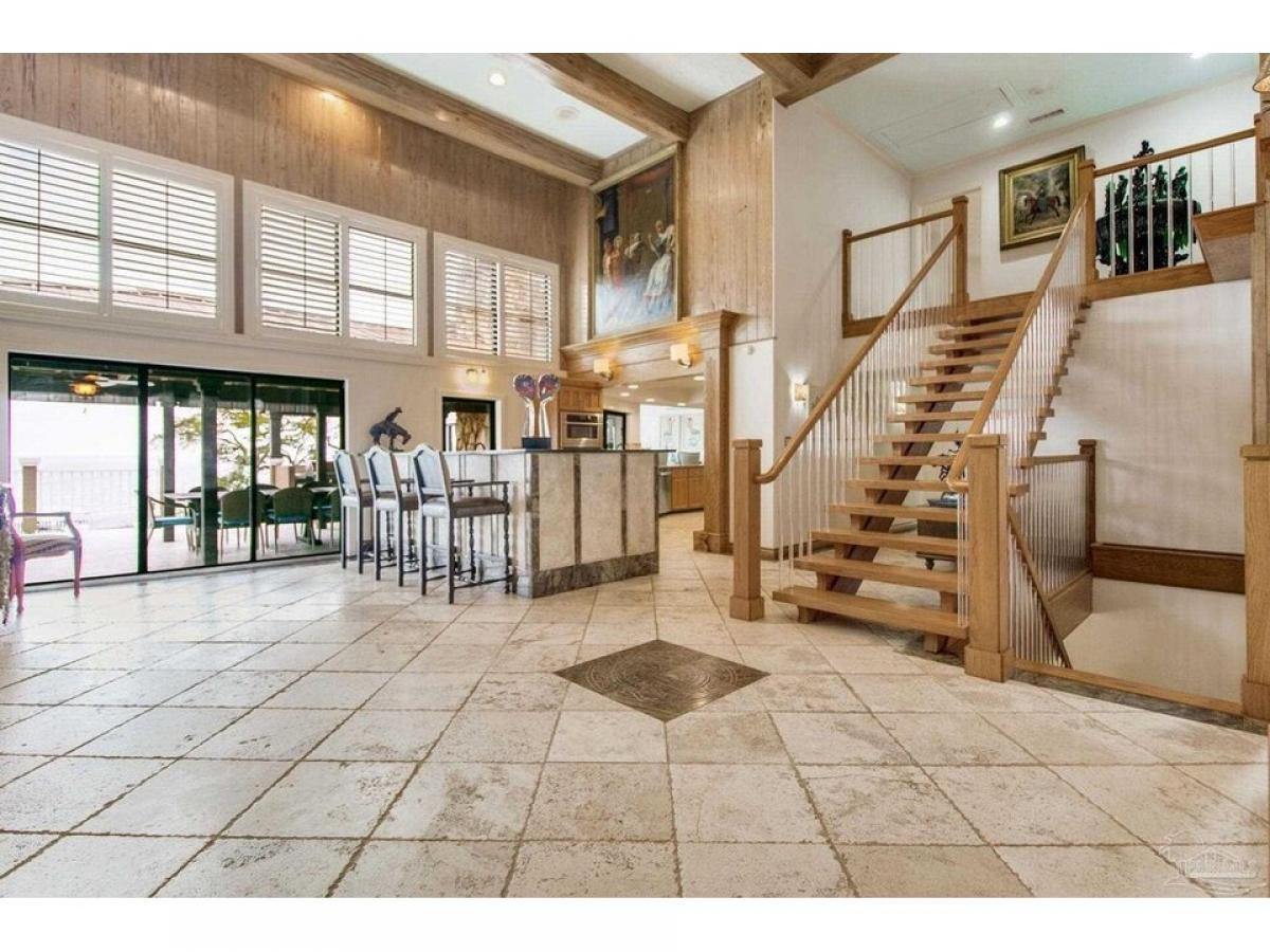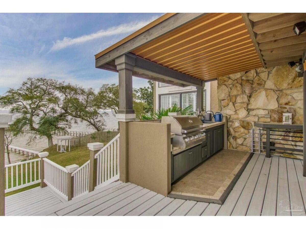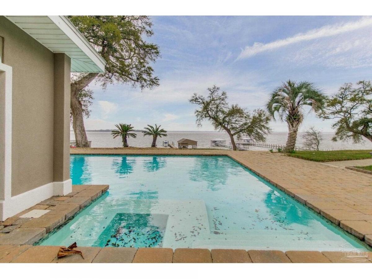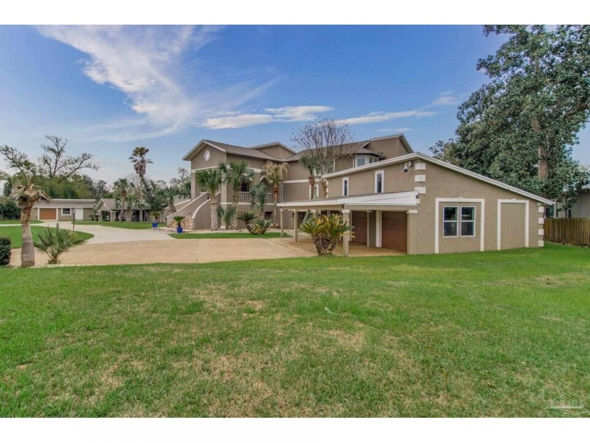Stunning Waterfront Estatendash;Owner Financing Available-Private Retreat or Investment Opportunity. Wake up to breathtaking sunrises over the bay and nightly sunsets, the ultimate in luxury waterfront living. This extraordinary 2.09-acre estate, situated 40 feet above sea level, offers peace of mind with no flood concerns. With 300 feet of pristine, accessible shoreline and panoramic water views, this property is a rare find. The gated estate features multiple structures, including the main house, pool house, 3-car garage, garden shed, and gazebo. The main residence spans three levels, offering 5,559 square feet of luxurious living space, including 5 spacious bedrooms, 5.5 bathrooms, and an executive office. The gourmet kitchen is equipped with top-tier appliances, a Sub-Zero refrigerator, oak cabinetry, and granite countertops, providing ample space for culinary endeavors. The inviting living room boasts vaulted ceilings, travertine floors, a natural fieldstone fireplace, plantation shutters, and a wet barmdash;all complemented by sweeping bay views and French doors leading to the waterfront deck and outdoor kitchen.The primary suite is a private sanctuary, featuring his-and-her walk-in closets and a spa-like bathroom with a tub that overlooks Perdido Bay. The downstairs living quarters have a separate entrance, a family room, kitchen, 2 bedrooms, and bath with a steam room.The pool house offers 1,762 square feet of living space with 1 bedroom and 1bath, an open floor plan, a full kitchen, stunning water views, and double doors leading onto a veranda and pool. Wellcome boat enthusiasts! The expansive pier has a dock and includes two wet slips with lifts, plus an additional covered slip under the boathouse. This gated estate also includes a 3-car garage with the potential for a second-floor mother-in-law suite. All is set within beautifully landscaped grounds that offer limitless opportunities for relaxation and entertainment. This is a gorgeous luxury waterfront property.