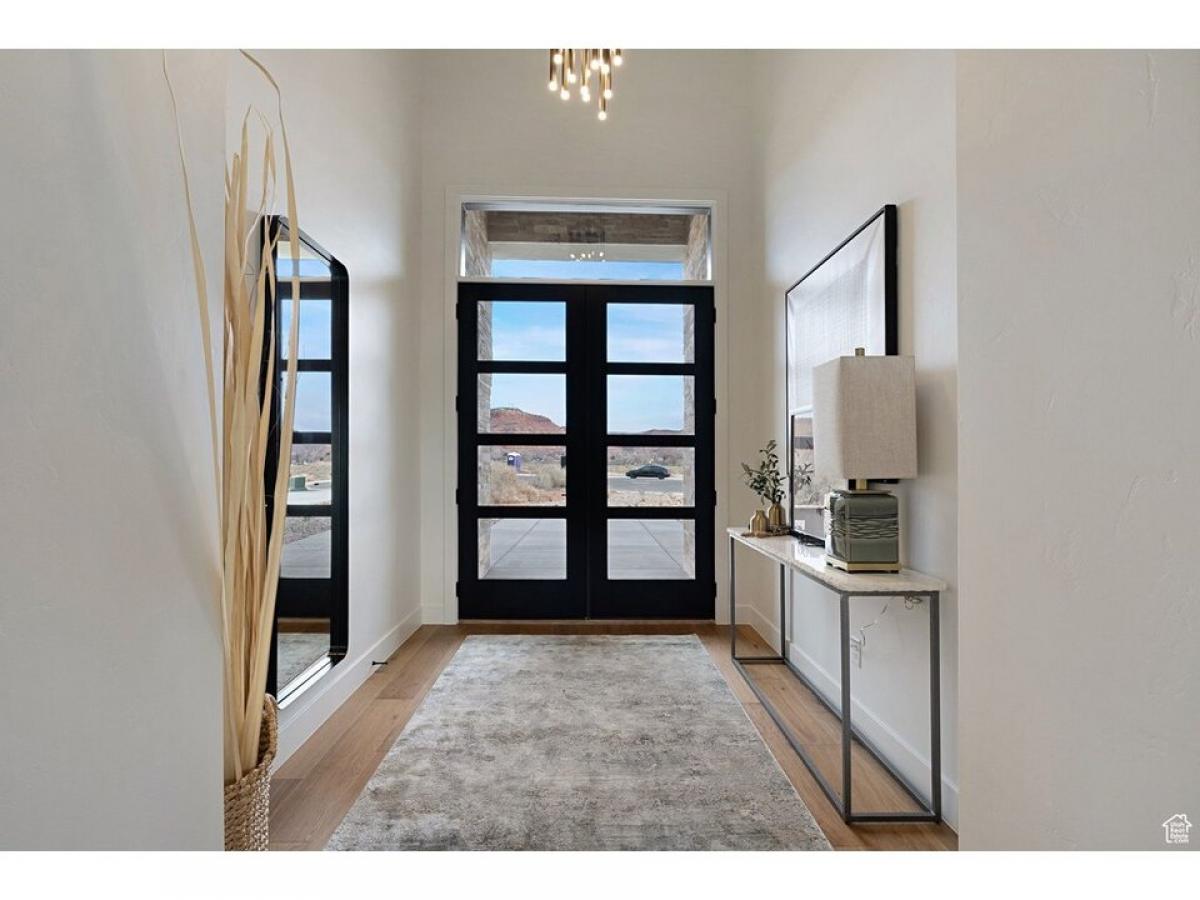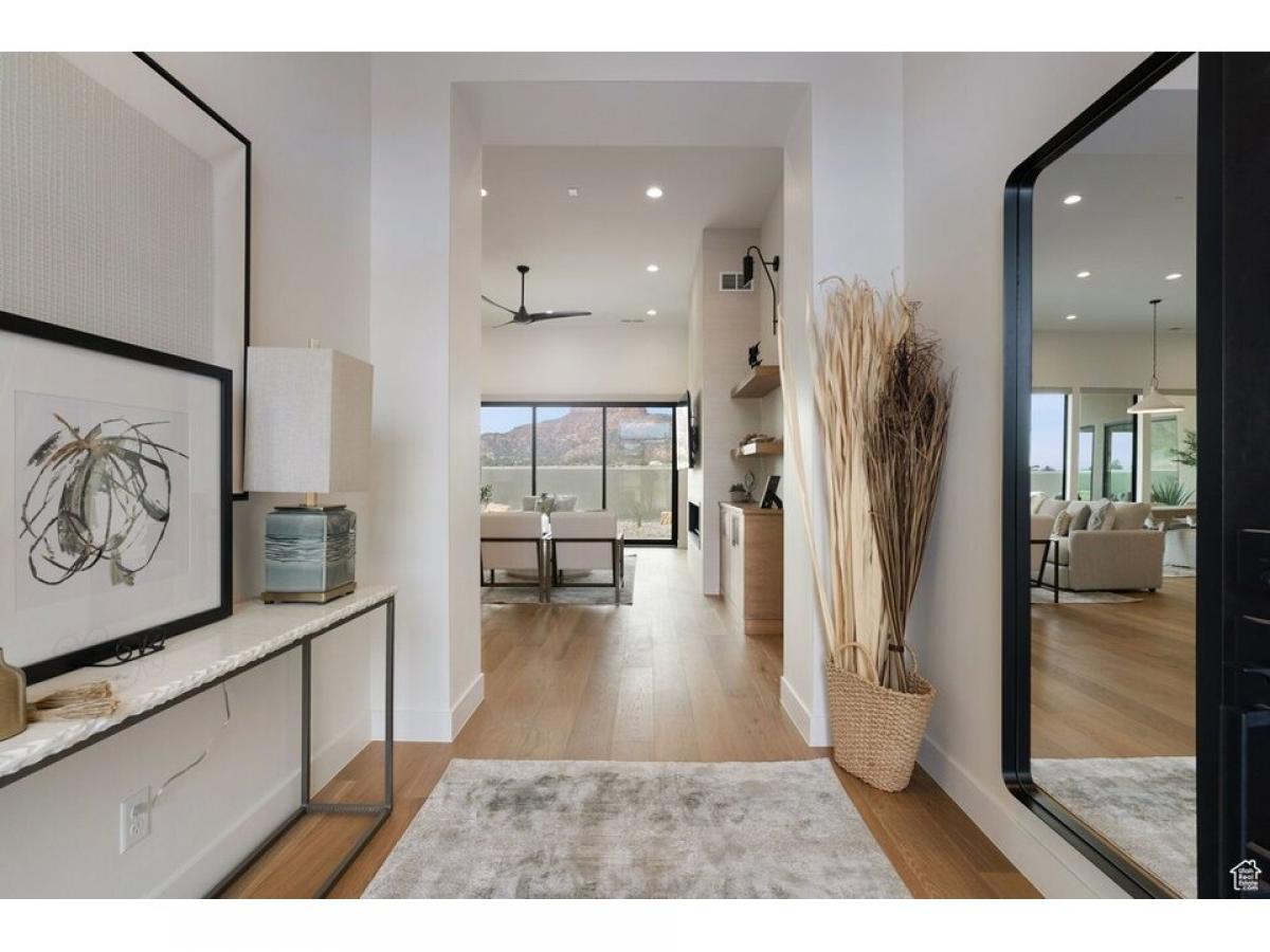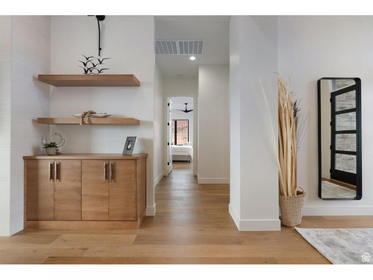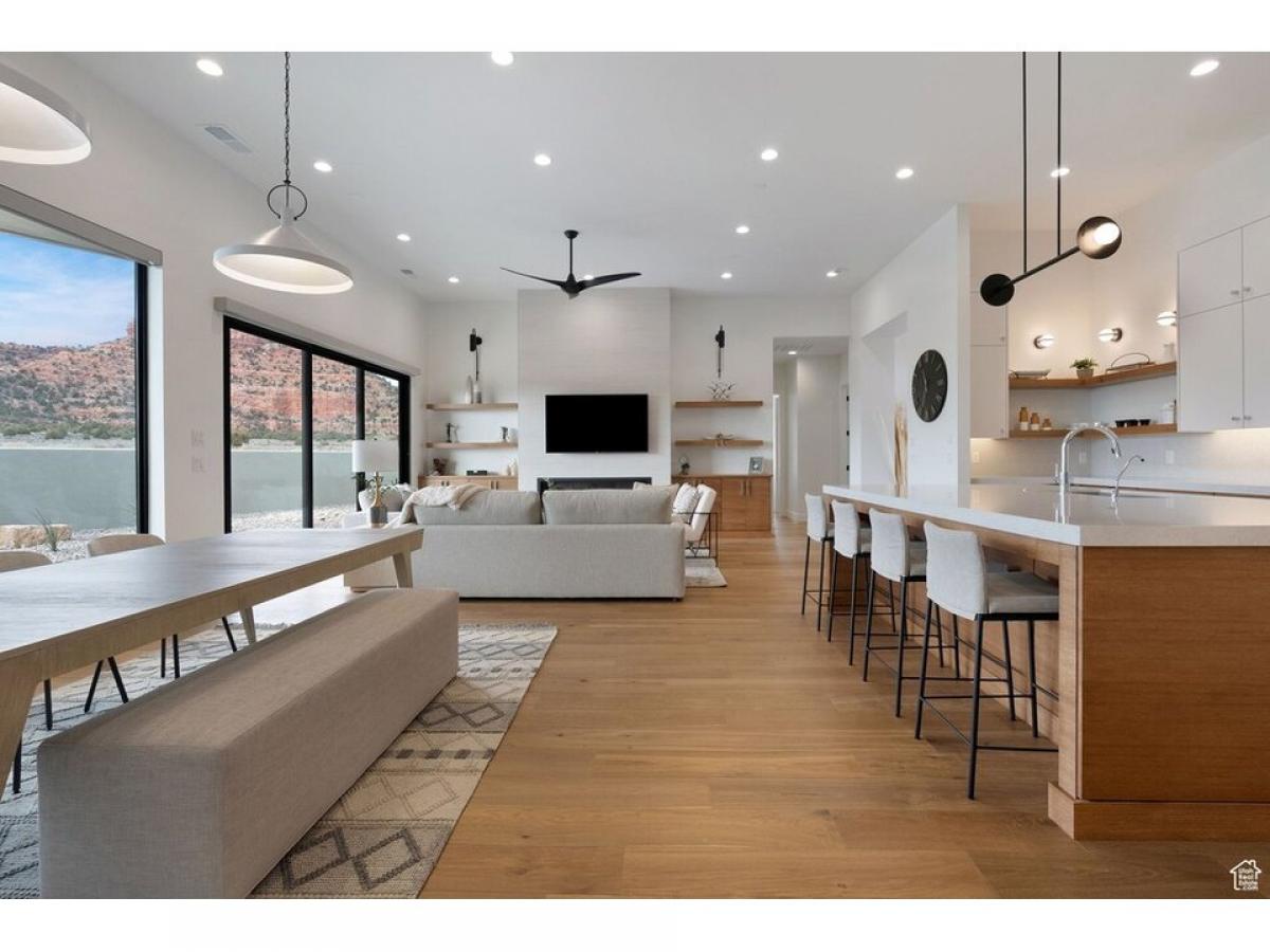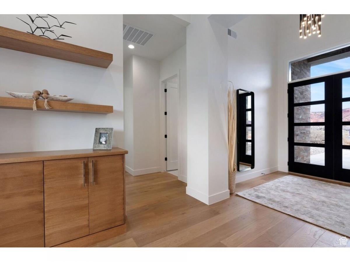 Nestled in the breathtaking landscape of Kanab, Utah... just below the majestic red mountains, lies a luxury desert oasis that redefines the essence of high-end living. This stunning property is a masterpiece of modern design, seamlessly blending into the surrounding natural beauty. As you approach the property, you are greeted by the serene ambiance of the desert landscape. Minimal landscaping and Xeriscape is used to retain the natural beauty of the native plants and history. The exterior design features clean lines, minimalist aesthetics, and an abundance of glass, allowing the stunning red rock formations to take center stage. Upon entering the property, you will be struck by the elegance of the open concept living area features such as soaring ceilings, walls of glass, and seamless transition between indoors and outdoors. Beautiful wide plank hardwood floors and porcelain tile throughout the home. The gourmet kitchen is a culinary dream, equipped with high- end appliances, sleek cabinetry, and expansive quartz countertops. just behind the main kitchen is a serving kitchen with sink where you have more room for food preparation. This serving kitchen leads to a large pantry ... with views from the pantry as well. Imagine waking up in the spacious primary suite with these exceptional red mountain views. Large glass sliding doors lead from the primary suite to the private back patio where you can enjoy your morning coffee or walk right out to one of many walking paths or the BLM hiking trail behind the community. Tucked away from the main living area, the private casita offers a serene retreat for guests with a separate entrance and kitchenette. Enjoy breathtaking views of the surrounding red rock formations, creating a sense of connection to the natural beauty Kanab is famous for. As the sun sets, the sky is painted with hues of pink, orange, and purple... making this a truly unforgettable destination. This home offers 2 temperature-controlled zones as well as a 44ft RV garage. RV side of garage also has a trailer clean out. No expense was spared in the garage with epoxy coating on the floors as well. This particular home offers a unique investment opportunity, as it is one of the few lots in the community zoned for Short Term Rental use. With access to amenities like pools, pickleball courts, hot tub, and playground... this property is poised to generate significant rental income. Out of 147 lots, only 7 will be allowed to be zoned as short term rentals and have access to the amenities in the gated community next door. This is one of those lots. It is not required... but is an option should the owner choose to use it as such. This luxury desert oasis is a rare find, offering the perfect blend of natural beauty, modern sophistication, and outdoor recreation. Whether you are seeking a private retreat, an adventure-filled getaway, or a lucrative investment opportunity, this is property is sure to exceed your expectations. Furniture package is available.
