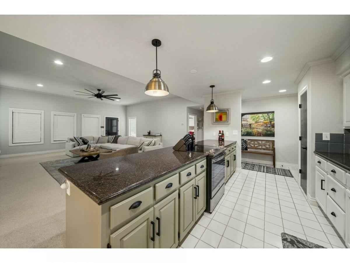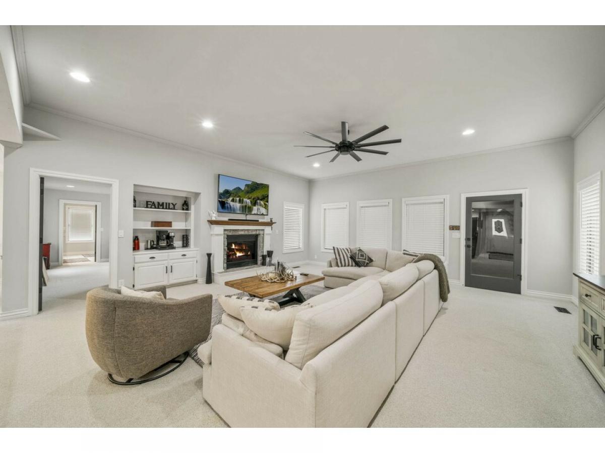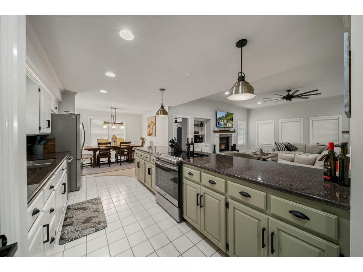 This lovely single-level home, nestled on a spacious lot, is just what you've been searching for, whether you're planning for retirement or seeking memorable weekends at the lake. Inside, an inviting open layout welcomes you with a spacious living room, kitchen, & formal dining area, while each bedroom features its own ensuite bathroom. A bonus room can easily adapt to your needs as a third bedroom, office, craft space, etc. Recent updates, including paint, fixtures, countertops, and more. Gather in the game room, enclosed porch, or by the cozy fire pit. The Coves amenities comprise 24/7 security, an 18-hole golf course, a 16-acre golf practice facility, a saltwater pool, tennis courts, pickleball, basketball, and a pro shop with a restaurant, and more! Additional lot available next door.