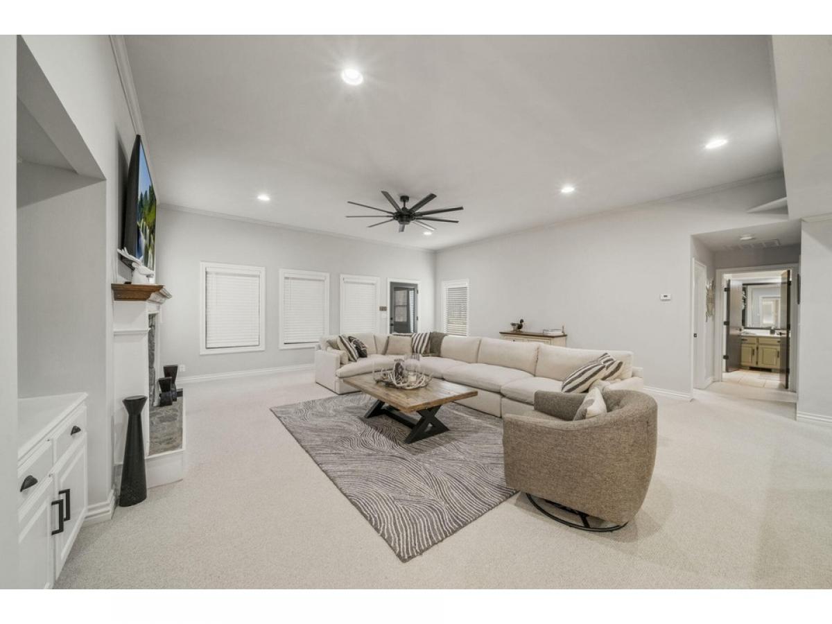 This lovely single-level home, nestled on a spacious lot, is just what you've been searching for, whether you're planning for retirement or seeking memorable weekends at the lake. Inside, an inviting open layout welcomes you with a spacious living room, kitchen, & formal dining area, while each bedroom features its own ensuite bathroom. A bonus room can easily adapt to your needs as a third bedroom, office, craft space, etc. Recent updates, including paint, fixtures, countertops, and more. Gather in the game room, enclosed porch, or by the cozy fire pit. The Coves amenities comprise 24/7 security, an 18-hole golf course, a 16-acre golf practice facility, a saltwater pool, tennis courts, pickleball, basketball, and a pro shop with a restaurant, and more! Additional lot available next door.