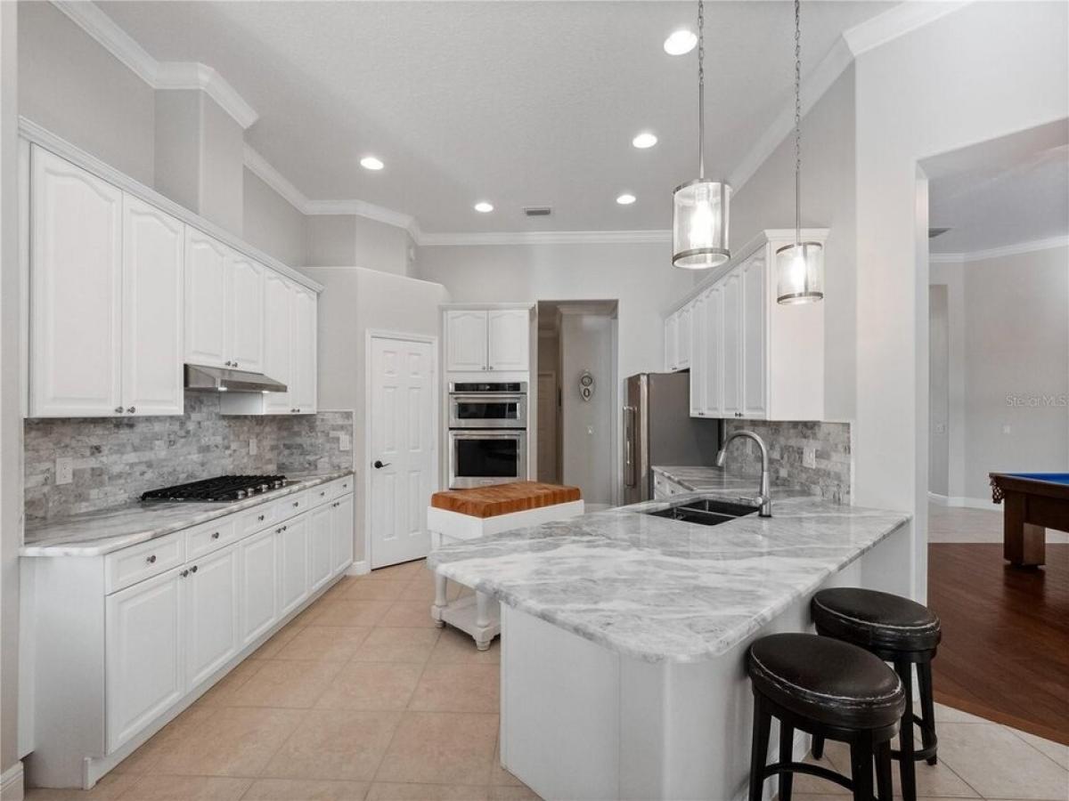 Luxury Living in Alaqua Lakes! This beautifully updated and customized home offers the perfect blend of elegance, comfort, and modern upgrades. The heated saltwater pool and spa (2018) create a private retreat, ideal for both relaxation and entertaining. The backyard is fully fenced, lined with towering privacy hedges, and backs onto the community park, providing a serene and secluded setting. Inside, yoursquo;ll find plantation shutters, trey ceilings, crown molding, stylish lighting, beautiful wood flooring, and exquisite granite throughout. The chefrsquo;s kitchen boasts marbled granite countertops, a perfectly matched tile backsplash, newer stainless-steel appliances (2018), a wide breakfast bar, an island, and a walk-in pantry. The dining room is enhanced by a built-in buffet, adding both beauty and functionality. The spacious master suite is lined with windows and custom shutters, leading to a luxurious updated bath featuring a seamless glass shower, garden tub, and dual vanities. All bedrooms include custom closet systems. Two generously sized secondary bedrooms downstairs feature wood floors, with one offering a large walk-in closet with custom built-ins. Upstairs, a huge 4th bedroom/bonus room (no closet) and half bath provide extra versatility. A distinctive office off the foyer and a convenient pool bath add to the homersquo;s functionality. Step outside to the stunning pool area, featuring a spa with an inviting waterfall, updated exterior lighting, and a high-quality sound system that extends throughout the home and outdoors. The exterior has been thoughtfully refreshed with newly repainted trim, updated landscaping, and a fully leveled, recanted, and sealed lanai area. The homersquo;s striking stone-accented faccedil;ade and meticulously maintained landscaping create exceptional curb appeal. Additional recent upgrades include three new AC units (2021), a water softener, fresh interior and exterior paint, updated pool lighting, garage floor epoxy, and blown insulation for enhanced energy efficiency. Backing up to the community park, this home is just steps from Alaqua Lakes#039; top-tier amenities, including a clubhouse, pavilion, volleyball and basketball courts, a soccer field, five clay tennis courts, a playground, and a resort-style pool. The 18-hole championship golf course, designed by renowned architect Tom Fazio, winds through this prestigious guard-gated luxury community. Donrsquo;t miss this incredible opportunitymdash;schedule your private tour today!