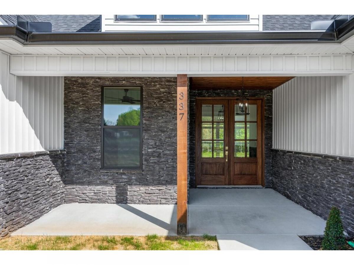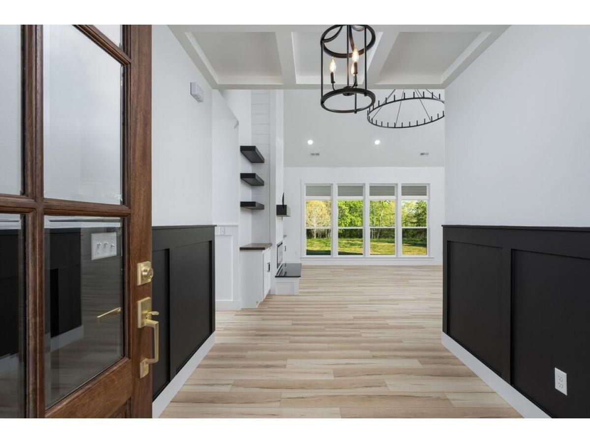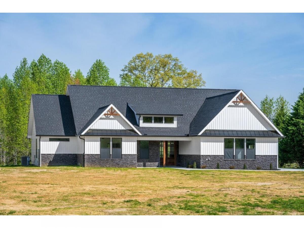 One level living new construction on over 3 fully fenced acres, surrounded by pristine natural beauty and only 20 minutes to downtown Scenic City Chattanooga this incredibly well designed four bedrooms two full baths and powder room in Trenton, GA is the perfect blend of easy living with refined urban taste. This new construction checks all the boxes blending modern design with traditional function. A deep covered front porch with double doors welcomes guests in the open concept central living area looking straight out to the wooded level yard beyond. 3 acres of fully fenced wooded property makes for unlimited opportunity for play and pets. Tucked away at one side of the home, the primary bedroom suite, with spacious spa-like en suite bathroom and incredible primary closet is a true retreat for relaxing and restoring. Three bedrooms with an additional bathroom provide plenty of space for the rest of the family, guests or potential work space. The center of the home is an open concept plan with sleek black granite countertops and electric fireplace with hearth. The vaulted ceilings and clean lines lead out to a poured covered patio off the kitchen overlooking a level tree lined backyard. Hunter Trail is a single entry community promising to be a special place to make your home. Make an appointment to see this perfect blend of modern living and natural splendor new construction Trenton one level home. No Place Like It!