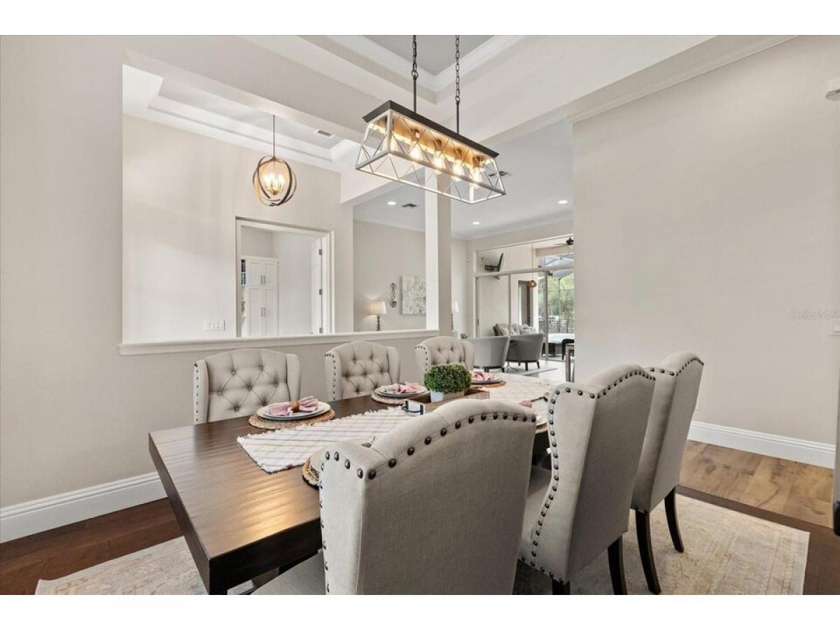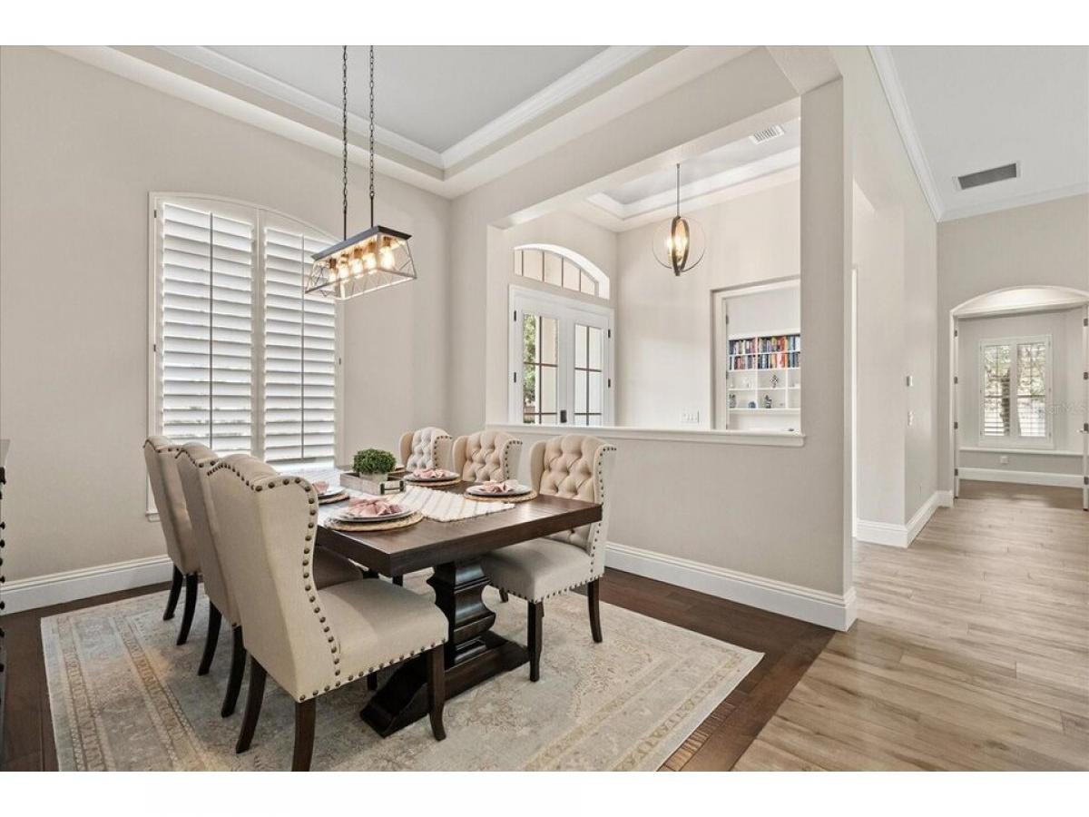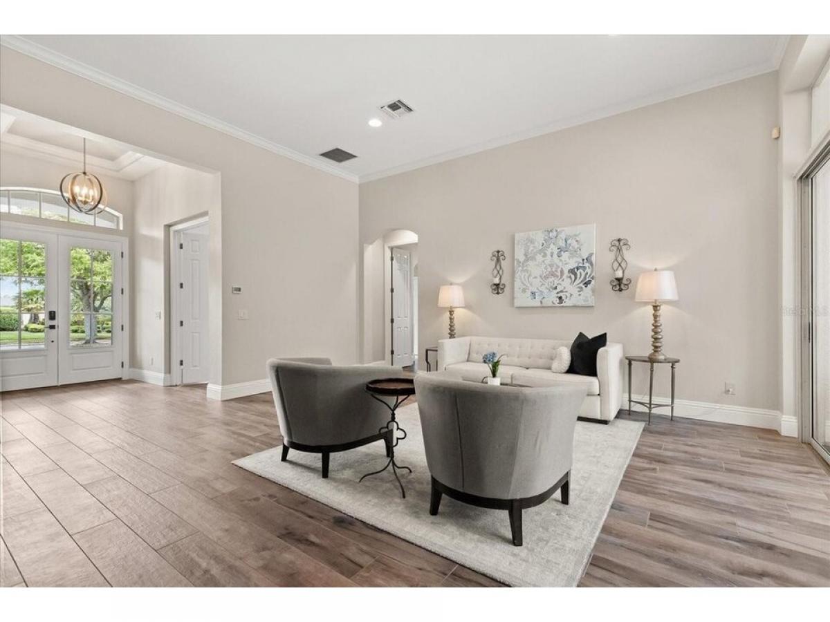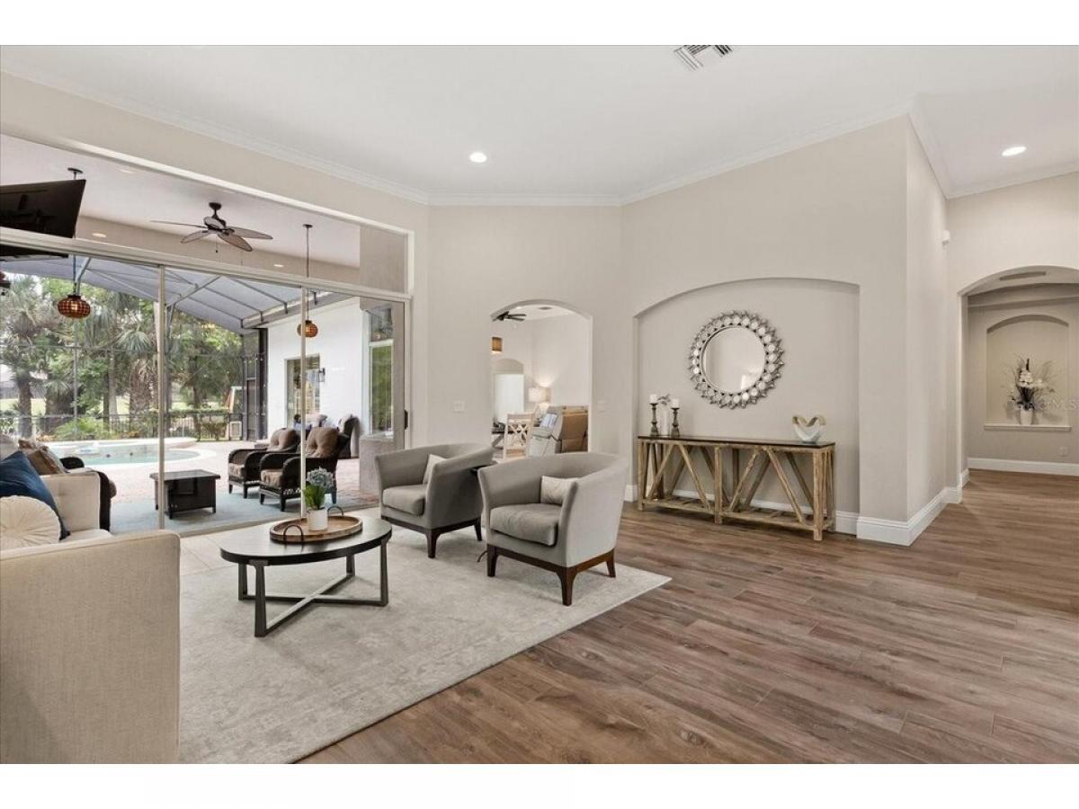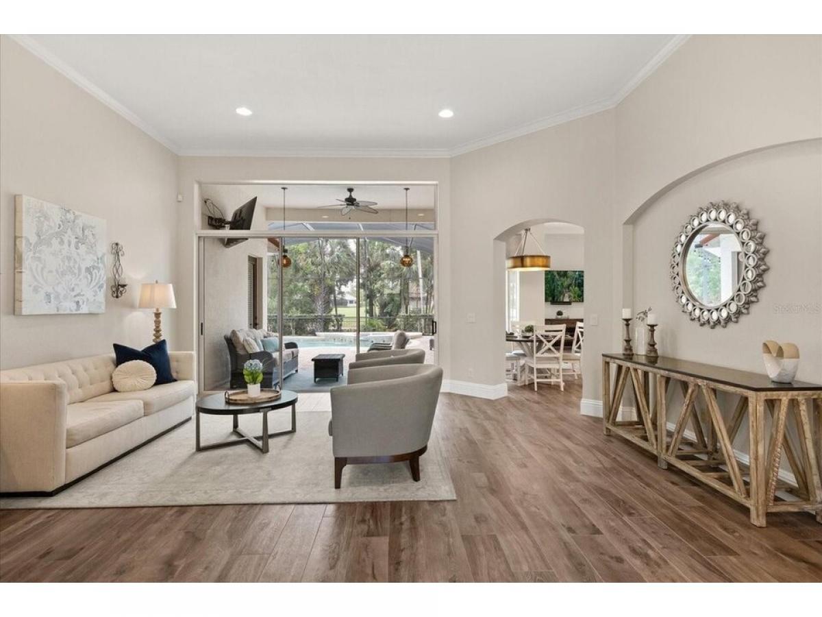 Welcome to this stunning golf-front home in the highly sought-after guard-gated Alaqua Lakes Community! Situated on the 7th fairway, this beautiful home boasts a fantastic open floor plan with breathtaking views of the golf course and the pool. As you step through the brand-new glass entry doors, you are immediately greeted by serene outdoor views through the large sliding doors filled with abundant natural light. To the right of the entryway, you will find a formal dining room perfect for entertaining guests, while a private workspace on the left features custom built-ins that offer both storage and stylish display options and additional counter space for work. The seamless flow continues into the living room, which opens to the kitchen and spacious family room. The kitchen is a chef#039;s dream, showcasing white cabinetry, a large granite island with bar seating, a custom-built pantry, and an inviting eat-in nook. The home#039;s three-way split plan provides maximum privacy and convenience. The luxurious owner#039;s retreat is on the left side of the home and features a cozy sitting area along with his and hers California custom walk-in closets. The spa-inspired master bath includes a walk-in shower and a freestanding tub. The living room, family room, and bonus room/flex space all open to an expansive lanai, creating a perfect indoor-outdoor space. Outside the screened lanai is additional space with a fire pit area. On the opposite side of the kitchen, two bedrooms share a Jack and Jill bath, a powder room, and a dedicated laundry room leading to the three-car garage with brand new doors. Two additional bedrooms are positioned at the back right of the home. These bedrooms are adjacent to the bonus room/flex space and share an updated full bathroom, making them ideal for family and guests. Residents of Alaqua Lakes enjoy resort-style amenities, including a resort-style pool, a covered pavilion, clay tennis courts, a playground, a sports field, and more. This home is in the highly rated Seminole County school district, just minutes from dining, shopping, and recreational activities. It is conveniently situated less than an hour from the beaches, theme parks, and Orlando International Airport. This property may be under video/audio surveillance.