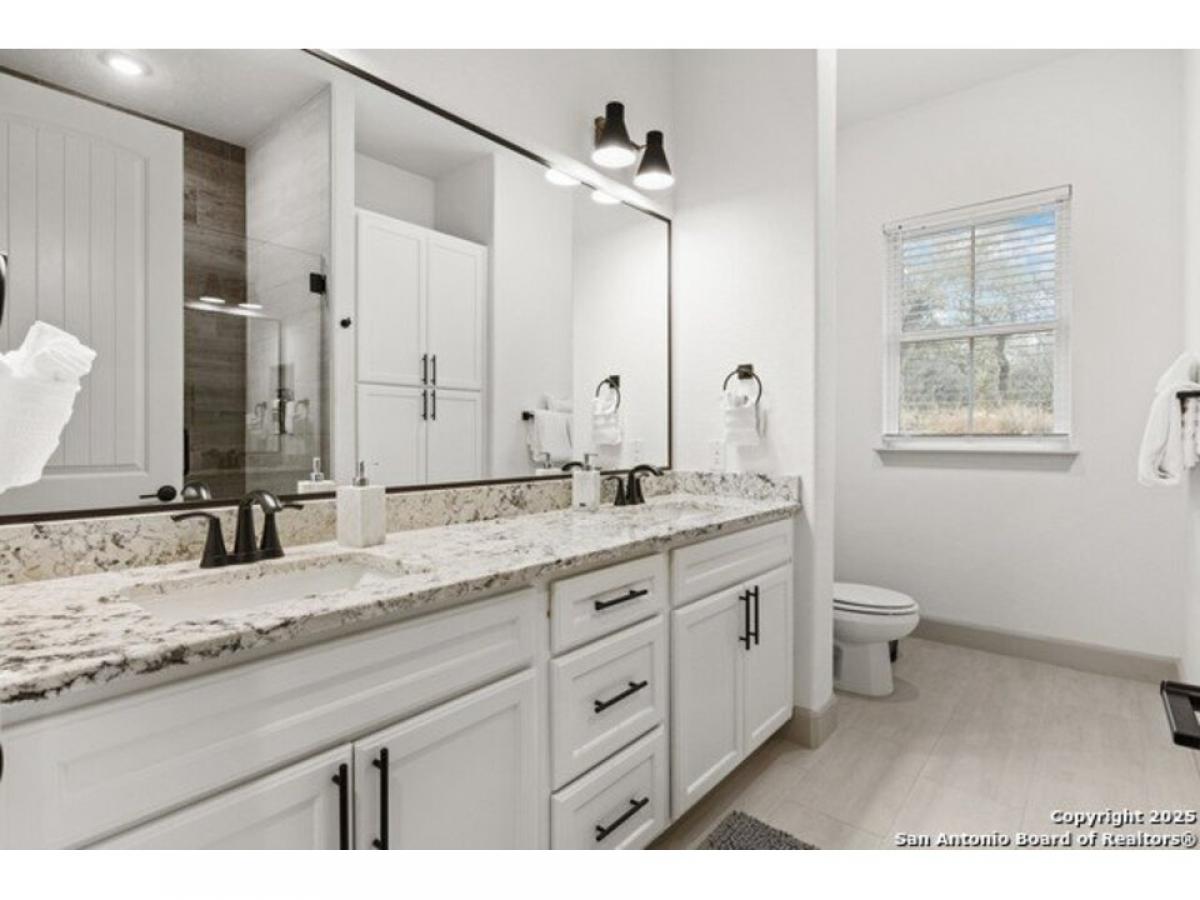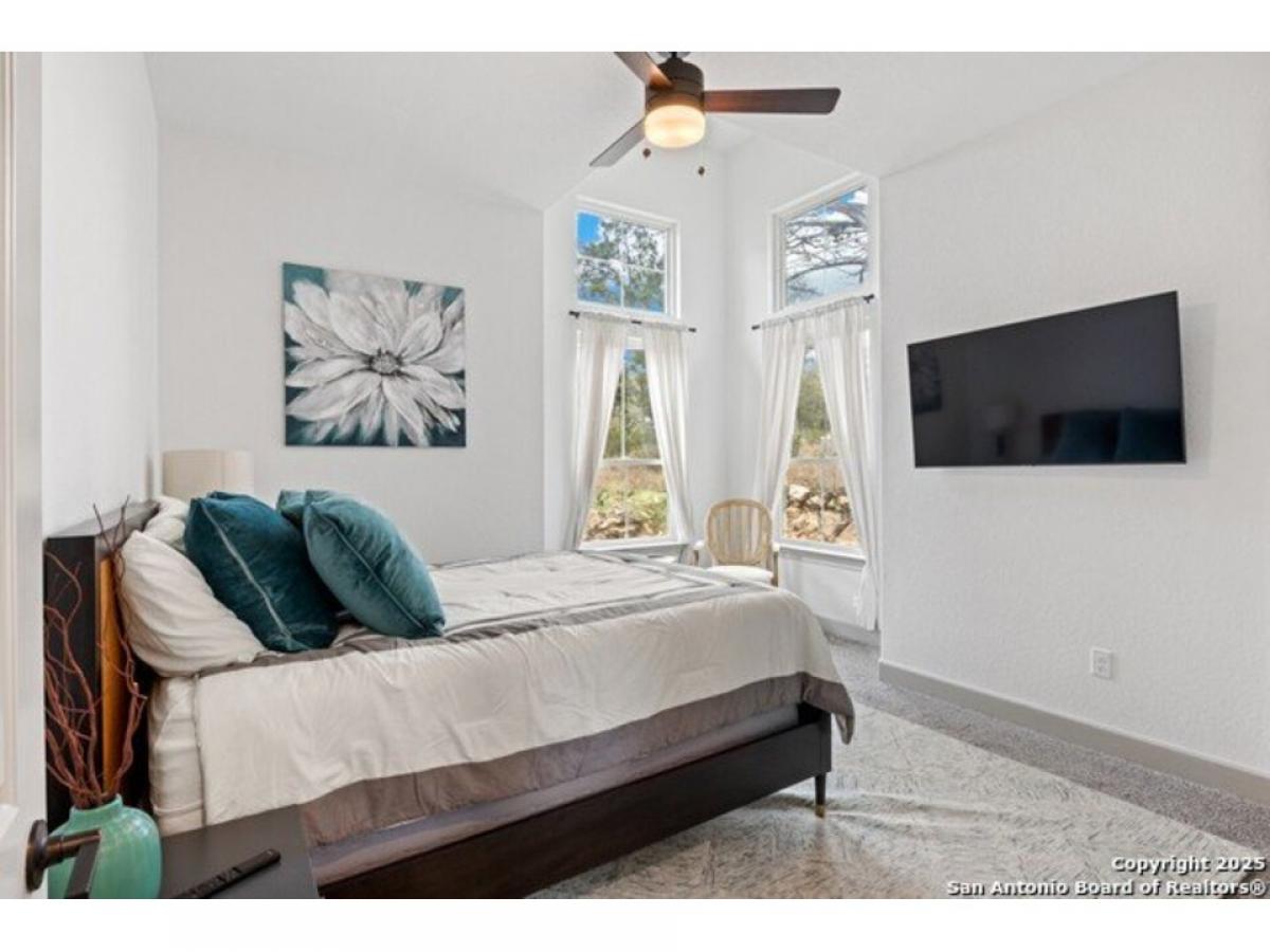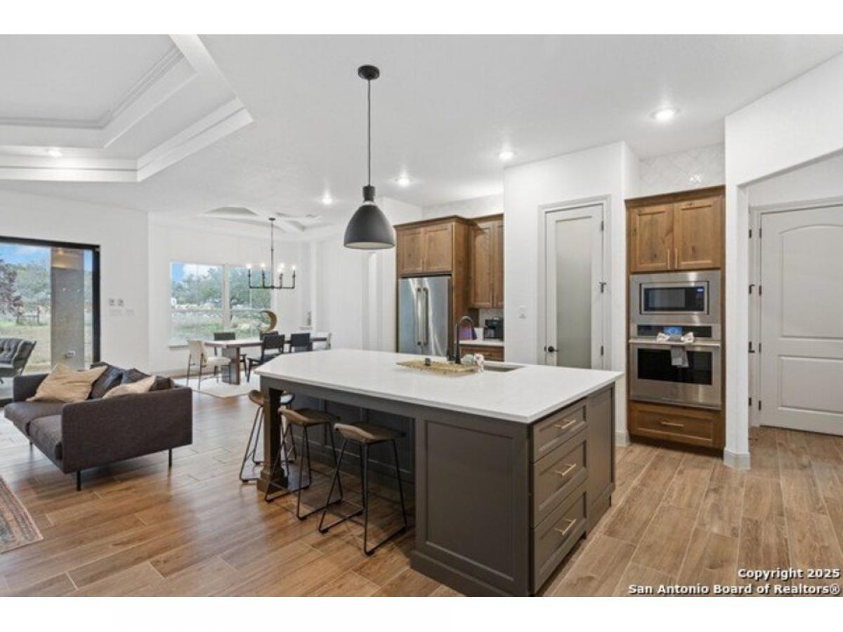 Introducing an extraordinary home nestled on a magnificent 1-acre lot adorned with majestic oak trees, situated within an exclusive gated community that offers serene access to a tranquil creek. This stunning residence boasts an elegant exterior featuring a harmonious blend of stone and stucco, topped with a durable metal roof, ensuring lasting beauty and functionality. Step into the expansive outdoor living space, where a generous 40 x 18 back patio awaits, perfect for dining and entertaining. Inside, discover a thoughtfully designed floor plan encompassing 3 spacious bedrooms, an office, and a game room, all accentuated by custom wood tile flooring that radiates sophistication. The heart of this home is its gourmet kitchen, featuring upgraded granite countertops, premium light fixtures, and high-end appliances, complemented by custom cabinets with soft-close features. The oversized cooktop, paired with a built-in cabinet vent hood, creates a culinary haven for aspiring chefs. The inviting game room, equipped with both wet and dry bar areas and a full bath, offers endless opportunities for leisure and gatherings. Retreat to the master suite, where vaulted ceilings and a serene sitting room lead to a luxurious bath adorned with a barrel ceiling, a spacious glass shower with double shower heads, and a free-standing spa tub, along with dual vanities and ample walk-in closets. Additional highlights include foam insulation for energy efficiency, an oversized side-entry garage with opener, and a custom-built master closet for sophisticated storage solutions. The community park, located just two lots away, features a BBQ area, pavilion, playground, and scenic creek, making it an ideal backdrop for family gatherings and outdoor enjoyment. This home is a true masterpiece, offering a lavish lifestyle in an enchanting setting. Don#039;t miss the opportunity to make it yours! Message for video tour.