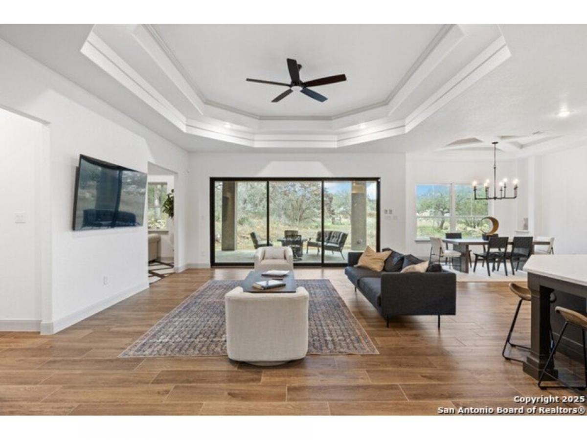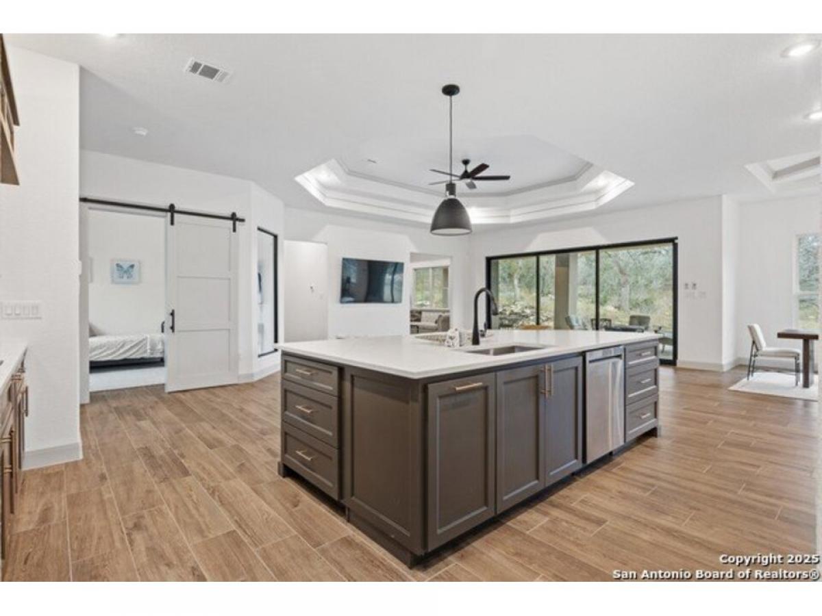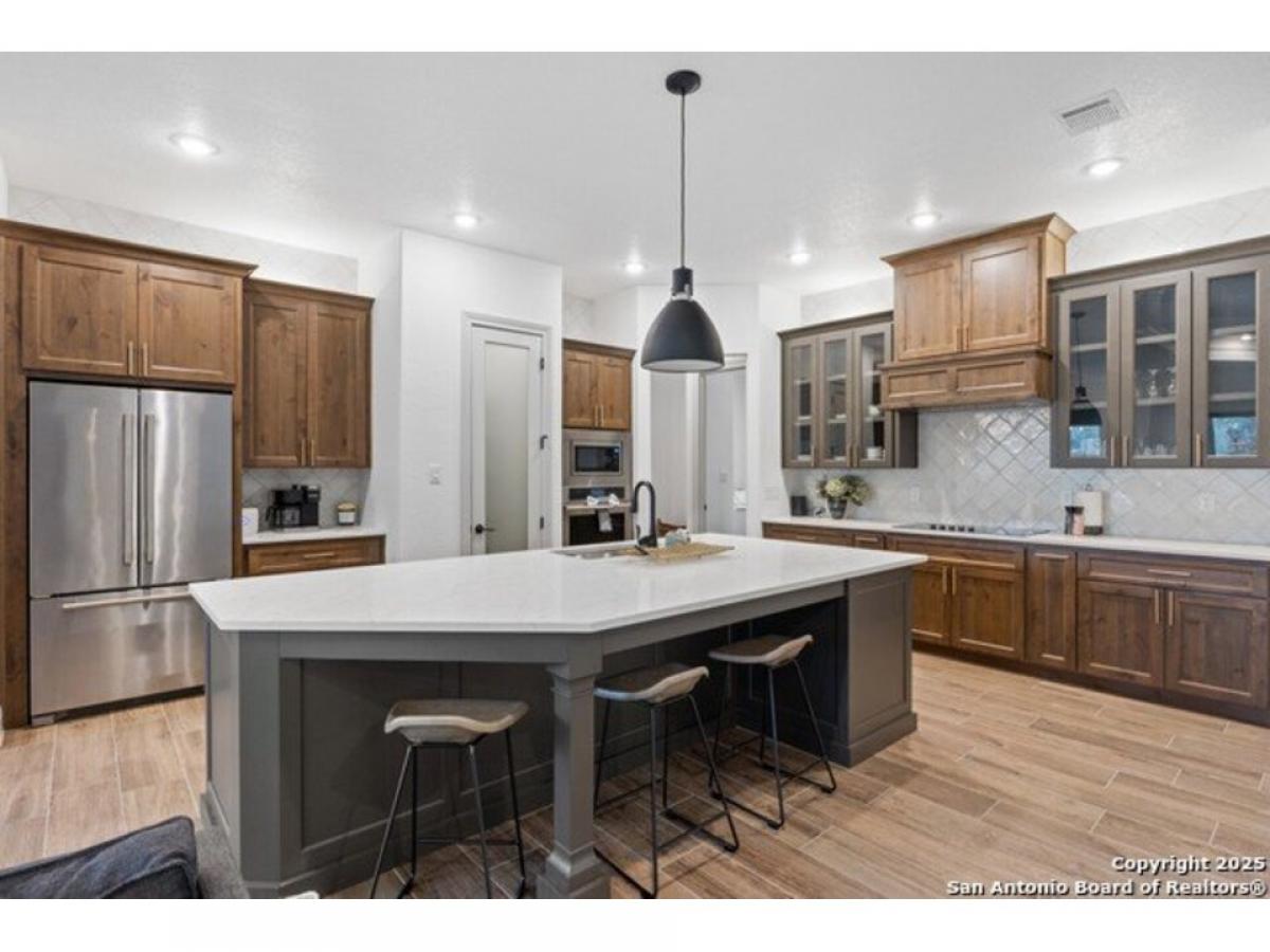 Introducing an extraordinary home nestled on a magnificent 1-acre lot adorned with majestic oak trees, situated within an exclusive gated community that offers serene access to a tranquil creek. This stunning residence boasts an elegant exterior featuring a harmonious blend of stone and stucco, topped with a durable metal roof, ensuring lasting beauty and functionality. Step into the expansive outdoor living space, where a generous 40 x 18 back patio awaits, perfect for dining and entertaining. Inside, discover a thoughtfully designed floor plan encompassing 3 spacious bedrooms, an office, and a game room, all accentuated by custom wood tile flooring that radiates sophistication. The heart of this home is its gourmet kitchen, featuring upgraded granite countertops, premium light fixtures, and high-end appliances, complemented by custom cabinets with soft-close features. The oversized cooktop, paired with a built-in cabinet vent hood, creates a culinary haven for aspiring chefs. The inviting game room, equipped with both wet and dry bar areas and a full bath, offers endless opportunities for leisure and gatherings. Retreat to the master suite, where vaulted ceilings and a serene sitting room lead to a luxurious bath adorned with a barrel ceiling, a spacious glass shower with double shower heads, and a free-standing spa tub, along with dual vanities and ample walk-in closets. Additional highlights include foam insulation for energy efficiency, an oversized side-entry garage with opener, and a custom-built master closet for sophisticated storage solutions. The community park, located just two lots away, features a BBQ area, pavilion, playground, and scenic creek, making it an ideal backdrop for family gatherings and outdoor enjoyment. This home is a true masterpiece, offering a lavish lifestyle in an enchanting setting. Don#039;t miss the opportunity to make it yours! Message for video tour.