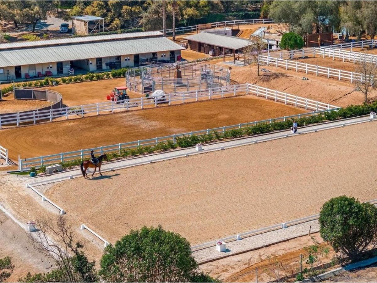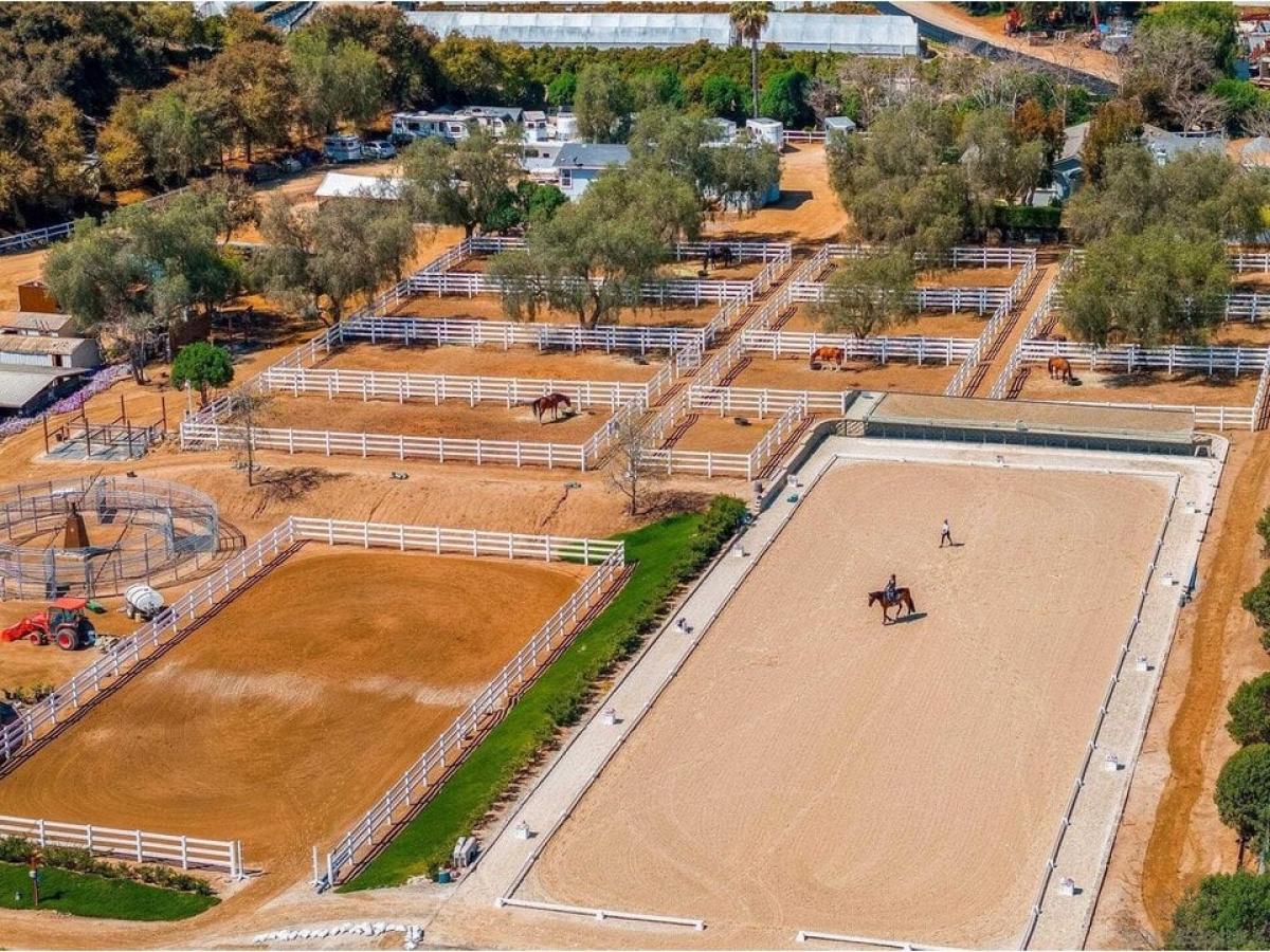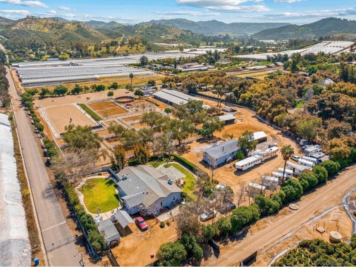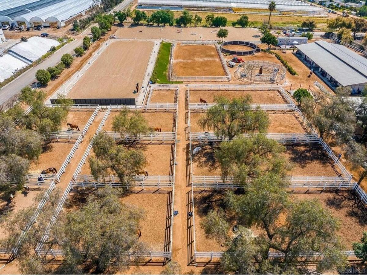Rare opportunity to purchase a commercial equestrian center providing boarding and training for 50+ horses in beautiful Twin Oaks Valley. The property includes a large jumping arena and a regulation dressage court with mirrors along one entire end, both with newly upgraded, professional footing. Several barns with 50+ stalls, an equiciser, round arena, third arena and many separately fenced turnout paddocks with shady trees create a scenic, relaxing environment for horses and riders. The spacious single level main home offers 3 beds and 3 baths and a separate manufactured home of approximately 1200 sf is ideal for guests, barn manager or rental housing. Excellent access, vehicle circulation and plenty of trailer parking make this a lovely, well-designed property for anyone who loves the equestrian lifestyle. The property is gated and fully fenced and enjoys a west of I-15 location with coastal breezes and close proximity to restaurants, shopping and urban amenities. Owner may consider lease.