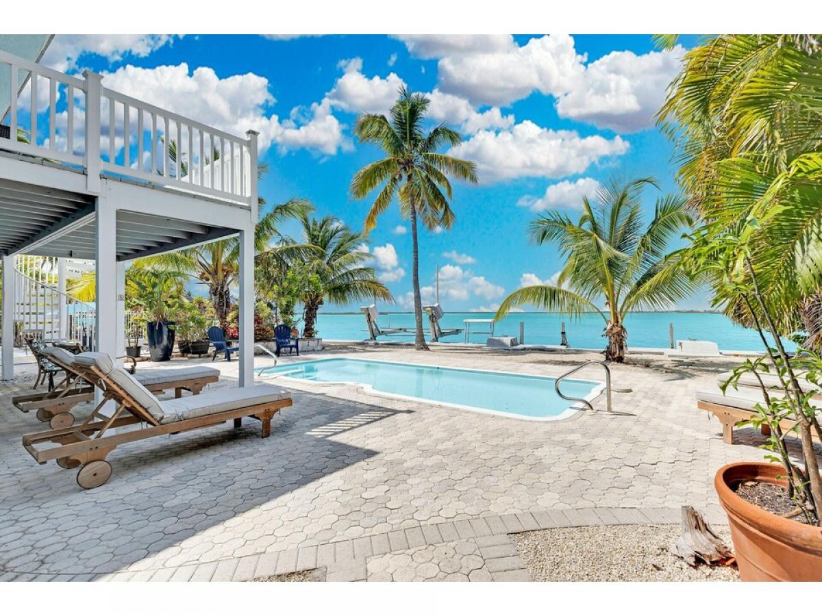 This impressive resort style home features a contemporary interior of 2900 square feet. 1900 square feet upstairs 3 bedrooms & 3 baths. 1035 downstairs with additional bath 4th bedroom, rec room and 2nd laundry area workshop and gym area The open floor plan of the living area and kitchen has glass walls overlooking the beautiful open water vistas with glorious sunsets every day!! The kitchen is a foodie's dream. Spacious and updated kitchen includes stainless steel appliances, large Island, built in ovens , granite counter tops and cream custom cabinetry. The natural light and recessed lighting create a lovely ambiance. The adjacent living is generous in size with incredible ocean views. A split floorplan with 2 bedrooms and two baths on one side and private master suite area on other side. Very spacious with private screened porch. The ensuite bath is a pleasure. Soaking tub and walk in shower a plus. Double sinks, granite counter tops and marble flooring. Custom walk in closet for all the storage you need. The lower level adjacent to pool is permitted at recreation room, additional bath and 2nd laundry area. Host an alfresco party down by the heated pool with lots of privacy with the abundance of tropical foliage. An easy spot for year round outdoor living. Concrete seawall to dock your toys and boat lift and best of all a sandy beach and basin to play in.