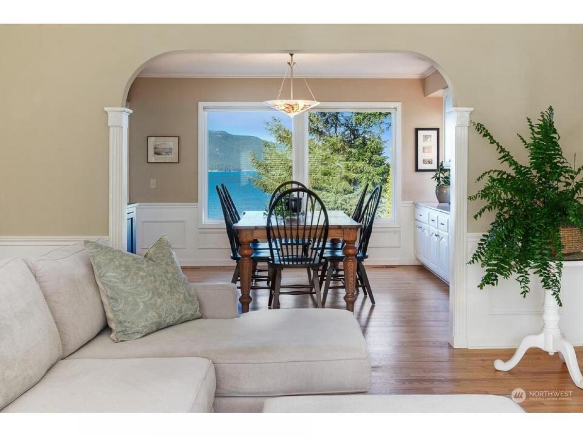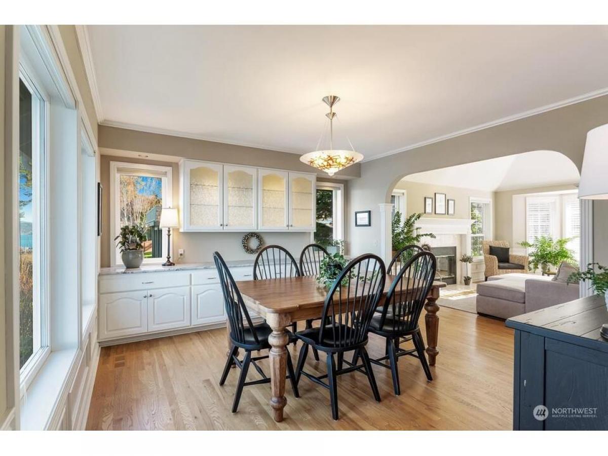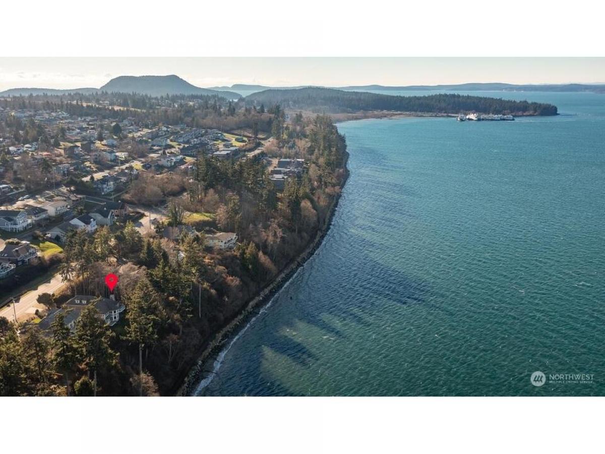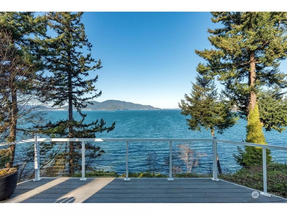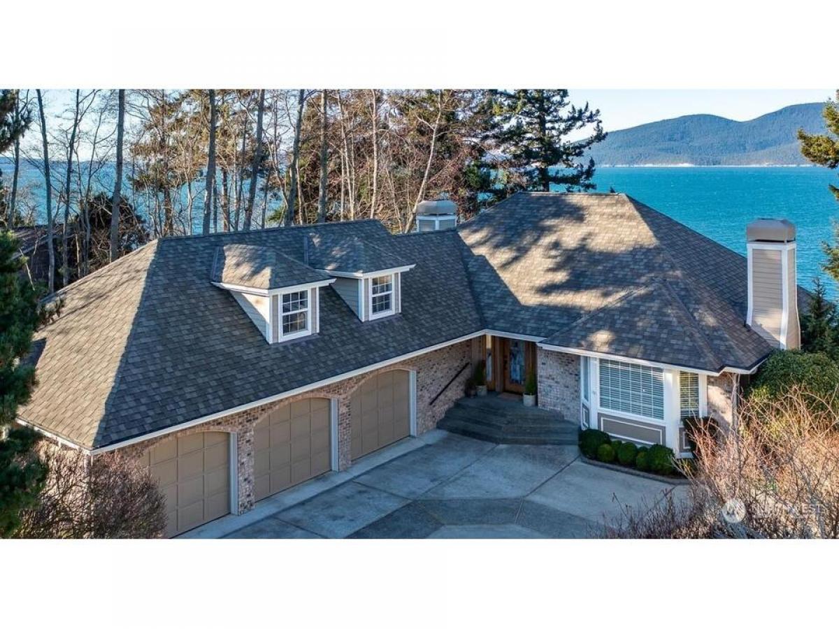 Perched above the Channel, this impeccably maintained waterfront home offers breathtaking views of the Islands Strait up to Canadian mountains. Thoughtful details include arched openings, built-ins abundant natural light. Main lvl features serene living room w/fireplace leading into dining, spacious kitchen with breakfast nook, cozy family room w/addtl fireplace deck access + bedroom/office 3/4bath. Downstairs, enjoy sunroom with wet bar hot tub w/backyard access, 2nd bdrm, 3/4 bth, laundry dreamy primary suite w/walk-in closet, 5-piece bath heated floors. Bonus room above 3-car garage offers endless possibilities. Relax on the private decks, watch sunsets marine life drift by embrace the tranquility of waterfront living.