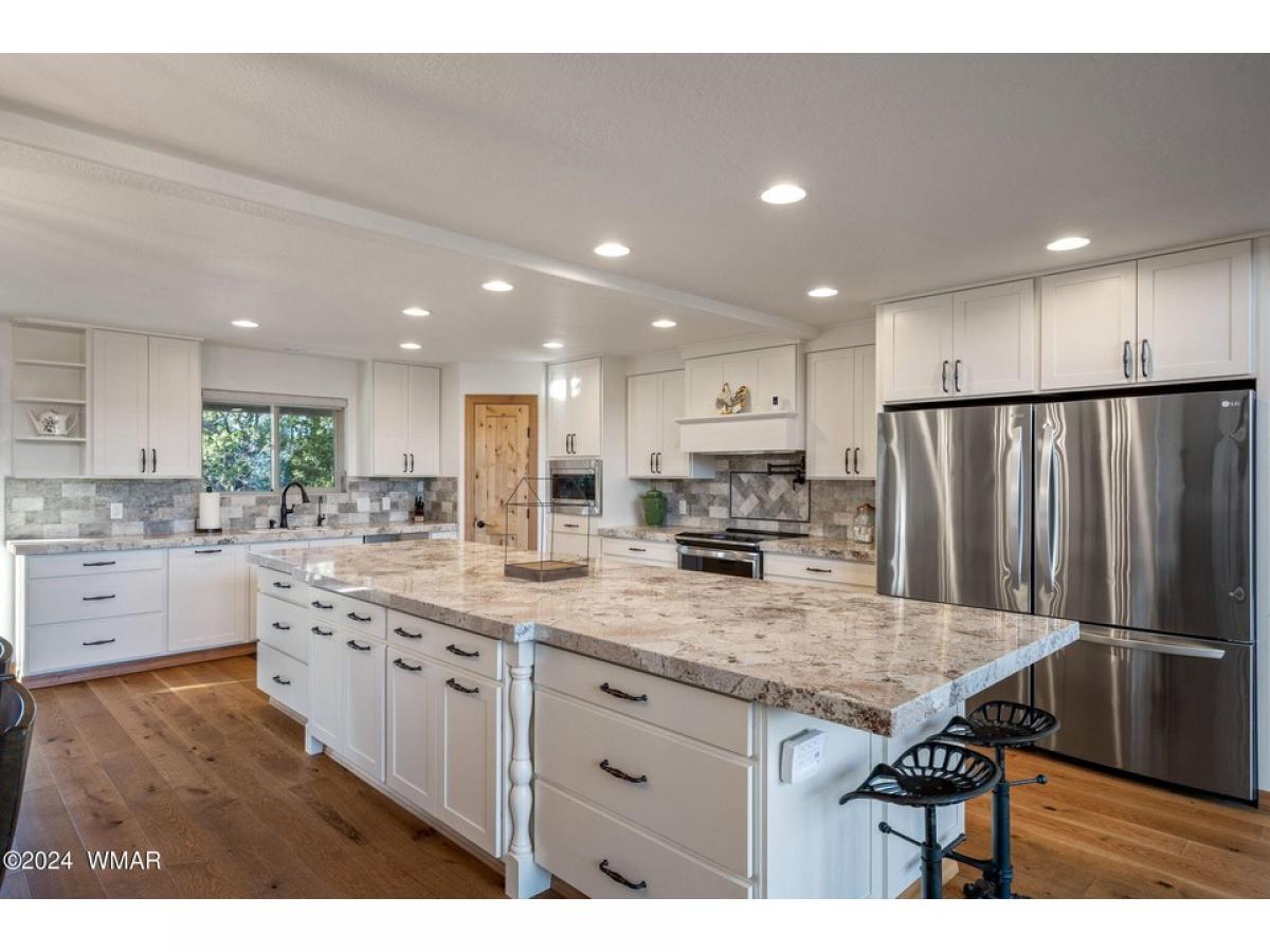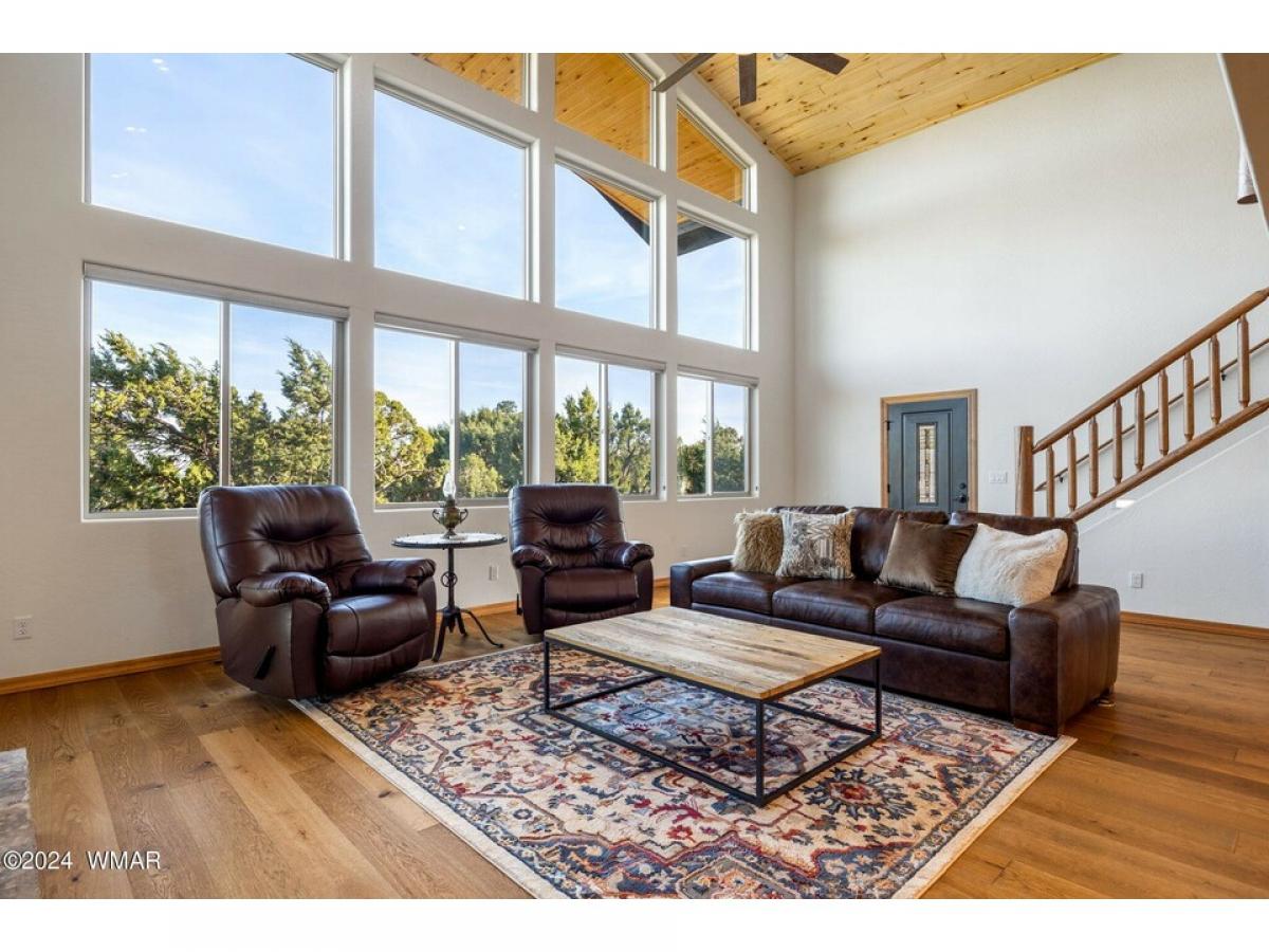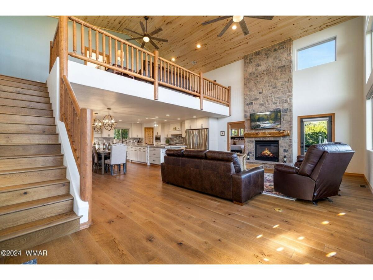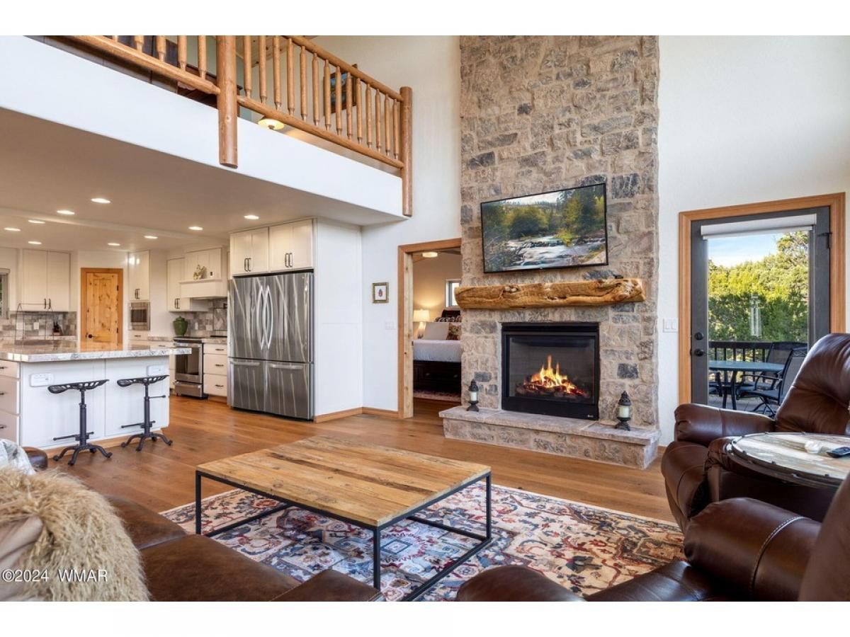 Stunning Mountain Retreat! Boasting four bedrooms and three and a half baths, plus a oversized loft space. This home invites you to indulge in breathtaking panoramic views through its impressive wall of windows. A cornerstone of modern design, its open floor plan seamlessly connects the living spaces, accentuating the sense of openness and light. With both a master and mini master suite located on the main level, along with two additional bedrooms upstairs, this home caters to both privacy and community. Fully furnished with exquisite attention to detail, from the white oak flooring to the aspen tongue and groove accents, every element exudes warmth and sophistication. Handcrafted wood raised knotty alder doors and baseboards add a rustic charm, while all granite countertops, etc.... double thick, elevate the kitchen and baths to a realm of opulence. Ascend the peeled pole log railing to the heart of the home, where an oversized kitchen island beckons gatherings and culinary adventures. Delight in the convenience of a pot filler faucet and the efficiency of an induction oven, all within the sleek confines of white shaker cabinetry. Outside, a fenced backyard provides a sanctuary for relaxation and entertainment, completing this idyllic retreat. The oversized two-car garage ensures ample space for vehicles and storage. On a county maintained paved road w/ HOA to protect your investment. CALL TODAY!