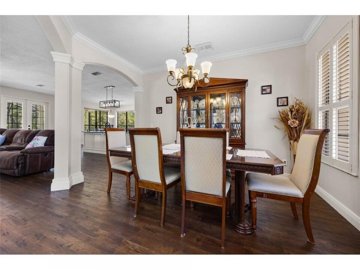 If you are looking in the Oviedo area, look no further. Welcome to the highly sought-after Live Oak Reserve community, where convenience meets luxury. The neighborhood offers fantastic amenities, including a sparkling community pool, basketball courts, tennis courts, volleyball net and a soccer field, perfect for an active lifestyle. This beautiful 5 bedroom, 3 bathroom home sits on a large lot that backs up to conservation land offering tranquility and privacy. As you approach the home, yoursquo;ll be greeted by stacked stone columns, double front glass doors, and lush landscaping with vibrant fresh flowers. The paved driveway leads to a three-car garage for all your storage needs. Inside, the home offers a spacious, open floor plan with luxury vinyl flooring throughout. The high ceilings, are finished with beautiful crown molding adding to the luxury feel of the home. As you enter the two-story grand foyer, you will immediately notice the beautiful staircase with wrought iron banister. To the left, yoursquo;ll find an office/sitting room, perfect for working from home or relaxing. To the right, a formal dining room provides the ideal space for hosting gatherings. Both of these front rooms are adorned with plantation shutters on the windows. Continuing through, the great room combines the living and kitchen areas, creating an open entertaining space for family and friends. The freshly updated eat in kitchen, features gorgeous cabinetry with slow close doors and drawers, stunning backsplash, spacious island, and updated appliances. There are 2 sets of double french doors off the kitchen leading to the backyard oasis, adding to the entertainment value of the space. Outside you will find an amazing pool with a fountain feature for you to relax and cool off to on those hot summer days. The patio is expansive with space to add an outdoor kitchen. Back inside, on the first floor you will also find a guest suite and a full bath, ideal for visitors or multi-generational living. Upstairs, yoursquo;ll find the primary master suite featuring luxury vinyl wood floors, tray ceilings, a sitting area, and two walk-in closets. The en-suite bathroom includes a double vanity, garden tub, walk-in shower, and a separate water closet, offering a true spa-like experience. There are three additional spacious bedrooms, all with walk-in closets and an additional full bathroom that features a double vanity and tub/shower combination. Recent upgrades include new flooring and kitchen updates in 2021, both pool pump motors replaced in 2025, roof replaced in 2019, both HVAC units replaced in 2023, water heater replaced in 2021 and the deck recently repainted. Fresh paint throughout ensures the home feels like new. This home combines luxury, comfort, and a prime location within Live Oak Reserve. Schedule your showing today and experience Florida living at it#039;s finest!