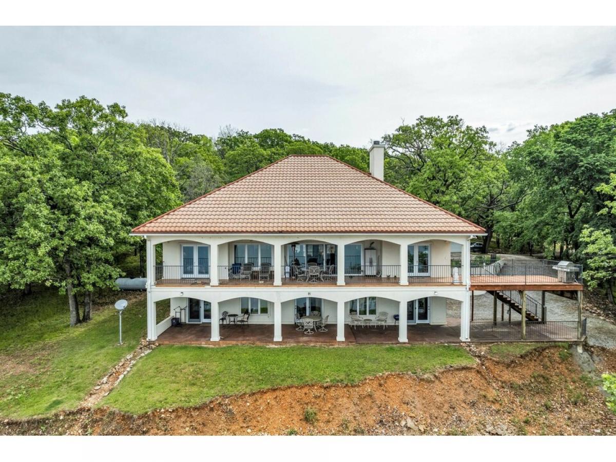 Lovely Bell Haven, Longview Estates waterfront overlooking Grand Lake at its finest! This gorgeous one-owner home offers 3,423 s.f., 5 bedrooms, 3 bathrooms, 2 studies or one could be a game room, open living space with kitchen open to great room, double ovens, pantry, wet bar, breakfast nook and formal dining, 2 laundry rooms, main bedroom offers a large shower, his and her closets, lower level has a kitchenette, large storage area, 3 car garage, both levels have huge covered outdoor lanais with incredible views of Grand Lake. The sunsets are surreal. With this home comes a 900 s.f. separate workshop with full bath and tons of storage. There is a two car portico at the entrance. This awesome place has .94 acres and 253 feet of shoreline and gentle slope to the lake!