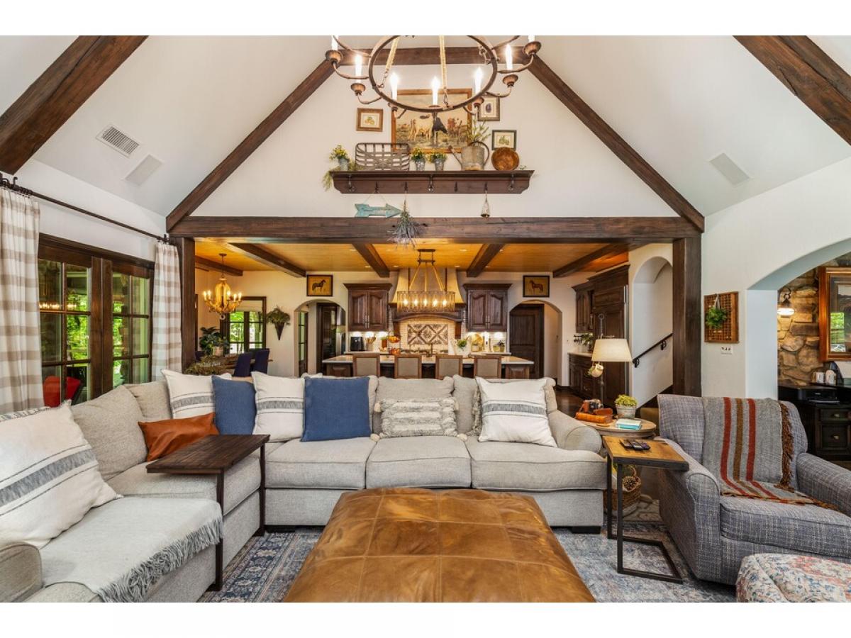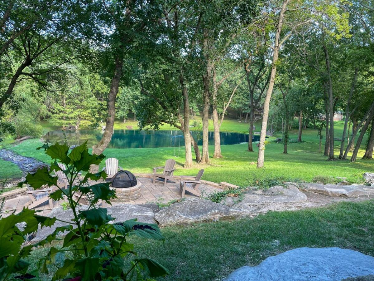 Cascading pond views from this beautiful Buffalo Shores Custom built home! Designer Landscaping, Vaulted Beam Great Room opens to Expansive Gourmet Kitchen Island. Formal Dining has French doors open to bubbling fountain. Romantic fully appointed primary suite. Covered Back Porch lures you outside to enjoy the dreamy hillside setting. One of a kind! Boral Brick with Pastel cote exterior. Pozzi wood clad Windows and French doors. Isokern masonry wood burning fireplace with custom cast stoke mantel by James Michael Kelley. Bevolo gas lantern from New Orleans. CertainTeed Independence roof shingles. Jack Arnold Inspired Cottage, set on a mature treed approx. 1.3 Acre lot. Boat slips in a community dock in Buffalo Shores are available to rent sometimes. Boat launch close.