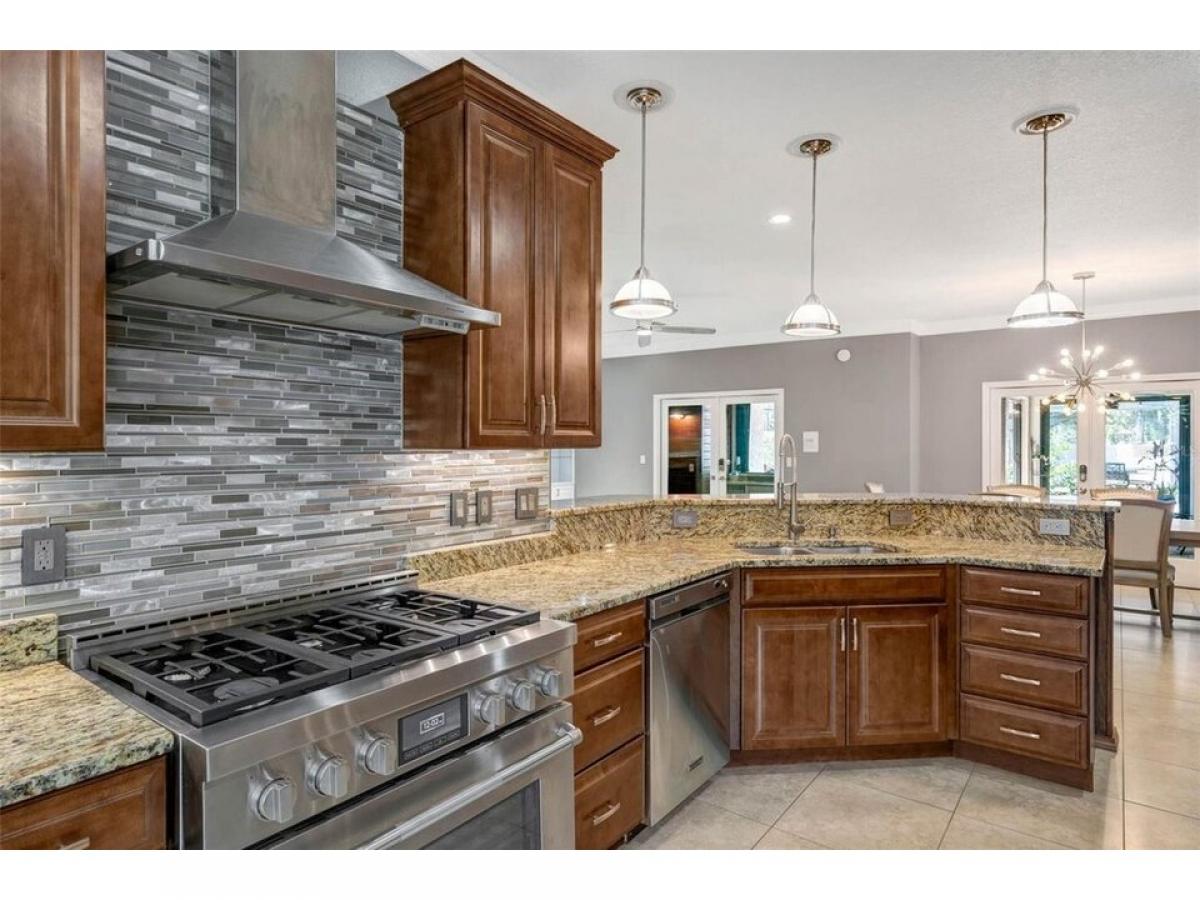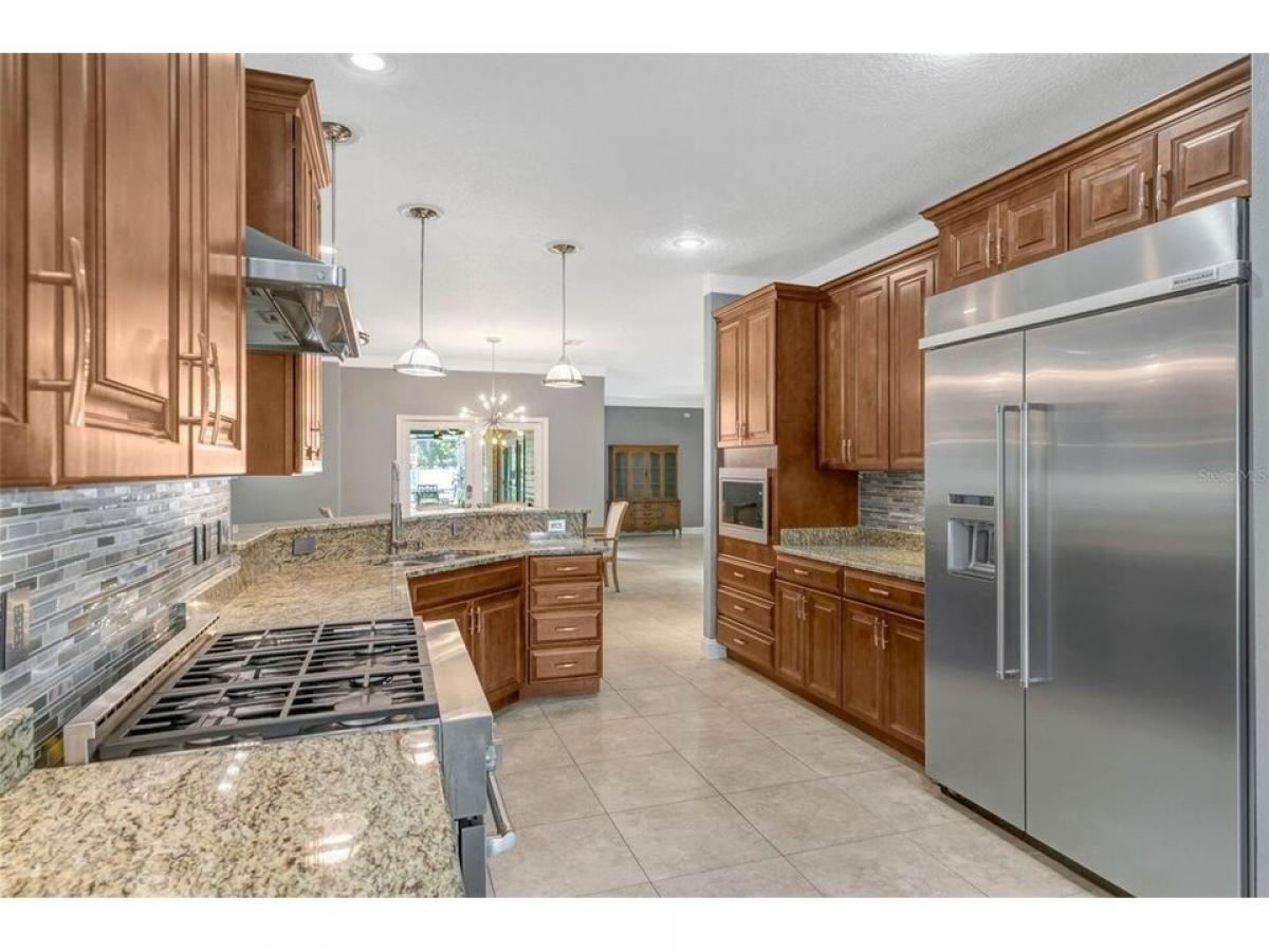 Meticulously maintained, one-of-a-kind home! This custom-built executive POOL home w/spa sits on a 0.60 acre completely FENCED lot w/ motorized entry gate. Single story, approximately 3200 sq ft, 4 bedroom/3.5 bathroom plus Office has deeded access to Blue Lake and NO HOA! This quot;Parade of Homesquot; winner has an open floorplan, split bedroom plan amp; perfect indoor/outdoor living flow. Vaulted foyer with wood ceiling detail leads you into your spacious living room, dining room, amp; family room with multiple sets of French doors with views out to the screened pool area amp; expansive covered lanai. The family room has a built-in bookcase amp; cozy gas fireplace. The large gourmet kitchen boasts beautiful wood cabinetry w/crown molding and soft close drawers amp; doors, under-cabinet lighting, and a tiled backsplash. The kitchen has GRANITE counters and high-end Stainless-Steel appliances, including a 6-burner JennAir gas range with hood vent and oversized KitchenAid refrigerator and a new built-in microwave. The kitchen also features a breakfast nook with built-in seating amp; large walk-in pantry. 20-inch Porcelain Tile throughout and crown molding in living areas and in the primary bedroom. Spacious primary suite offers direct access to the lanai. Primary bath has double vanities, jetted spa-tub, walk-in shower w/Pulse Shower Spa, and large walk-in closet w/custom built-in shelving. Next to the primary, is an office with glass French doors. There are 2 secondary roomy bedrooms (one with a walk-in closet) connected by a Jack and Jill bathroom. Powder room for guests as well! Don#039;t miss the semi-detached IN-LAW SUITE w/private entrance, walk-in closet, its own water heater, French doors out to the pool area, and a full bathroom w/shower that also can be used as a pool bath. Outside you will love the L-shaped covered lanai with beautiful wood paneling, new skylights (2021), ceiling fans, outdoor shower, and a summer kitchen w/sink amp; mini fridge. Accordion shutters (2020) were added to easily secure the home! Enjoy the large pool and gas-heated spa with jets. As a bonus, there is an Endless Pool Swimming Machine which is great for exercise! The inside laundry room has plenty of cabinets for storage and sink. There is a 1-car and 2-car attached garage (connected by a door) along with a storage shed with electricity and a gazebo! Other notable features include: Exterior painted Nov 2024 with Tex-Cote paint which has a 25-year warranty, New well tank/bladder/equipment, transferable termite bond with Massey, Tankless water heater, whole house water softener amp; purification system (2021), granite counters and upgraded light fixtures and ceiling fans throughout! A/C 2016, Roof 2014, 12 windows replaced in 2017. This special home is located in a neighborhood of mature oak trees and is at the end of a quiet cul-de-sac on a very large fenced lot with a long circle driveway, that was resurfaced July 2024, offering plenty of room for your RV or Boat. Just a short drive to the Eustisrsquo; downtown district, where you can enjoy festivals, concerts, launch for boating, amazing July 4th Fireworks, and great dining, wine bars, and shops!
