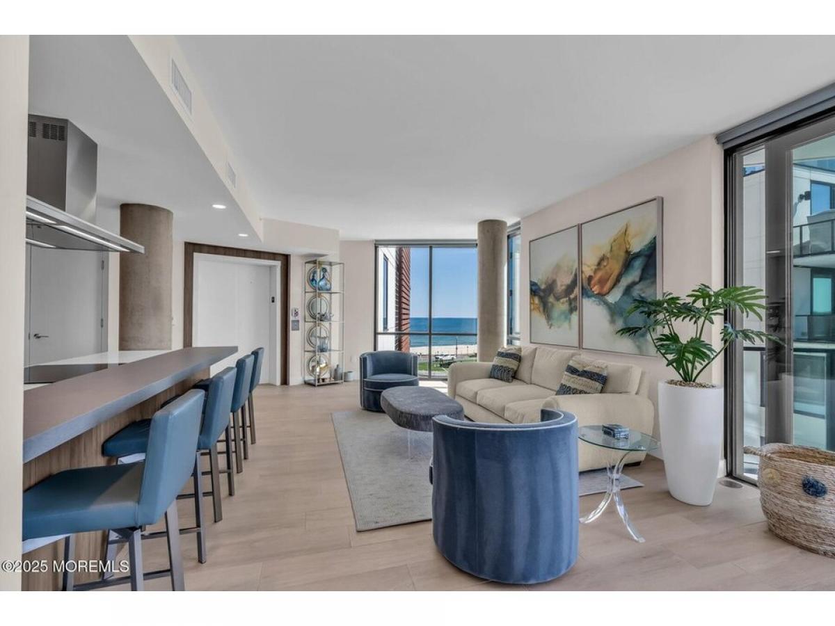 Welcome to 350 Ocean Ave., the premier address with the utmost privacy. Direct elevator entry leads you into this spectacular glass-enclosed sky home where expansive living awaits with ocean views. Residence 403 features 1,751 interior square feet with three spacious bedrooms amp; 3 full baths. This floor plan has a separate dining room making this luxury home exceptional for entertaining. Custom Snaidero Italian cabinetry with porcelain wood textured flooring from Spain runs throughout with a full chef#039;s kitchen outfitted with top-of-the-line Sub- Zero and Wolf appliances. The outdoor terrace is 261 square feet exterior with a gas fireplace to enhance outdoor entertaining throughout the seasons. This residence is designer decorated amp; enriched with remarkable upgrades that seamlessly blend luxury and convenience. South Beach features an unmatched suite of resort-style amenities, from a salt-water triangular infinity edge pool paralleling the ocean to a convivial private dining club and elegant lounge with wine storage, state-of-the-art fitness facility, concierge services, guest suites, business conference center, plaza area with outdoor seating, firepits, and commercial grilling stations, South Beach is unrivaled. The rare seclusion, amenities, privacy, and state-of-the-art access and security coupled with limitless views of the Atlantic Ocean make this residence the perfect home.