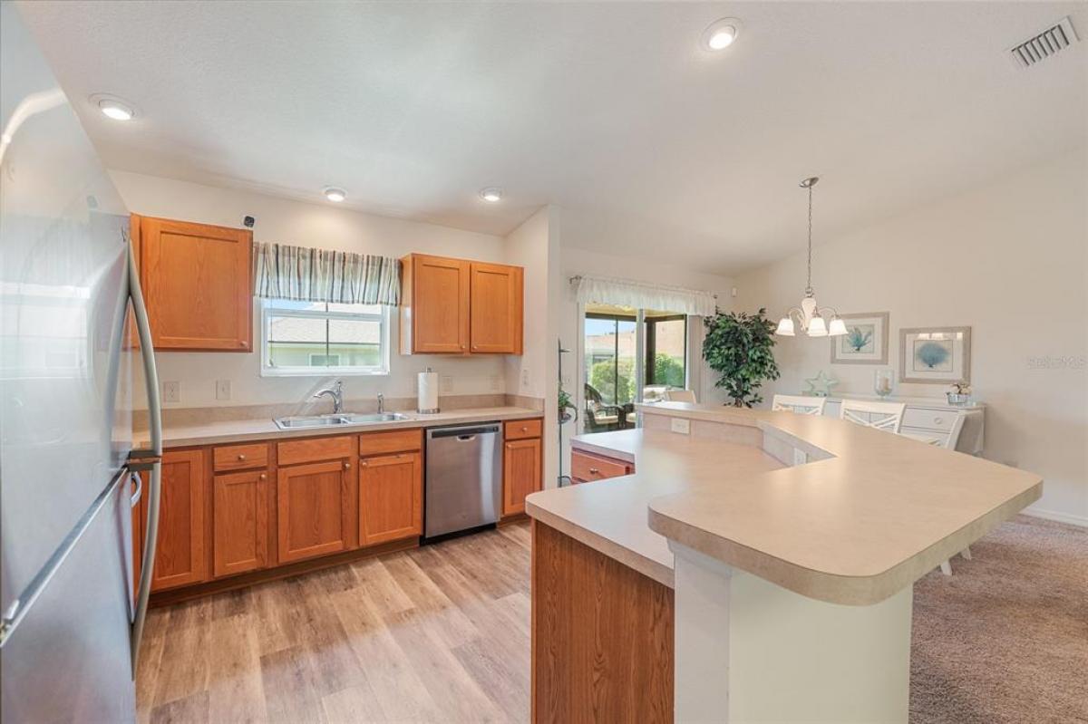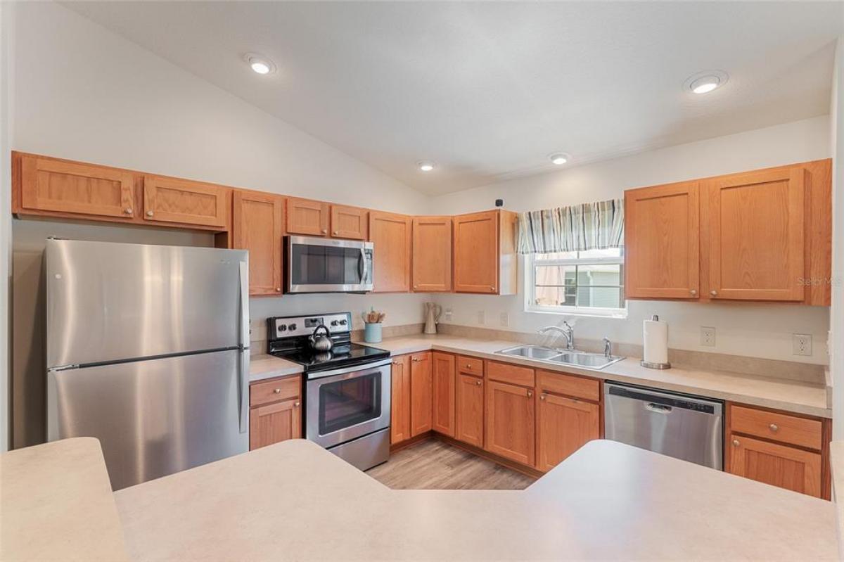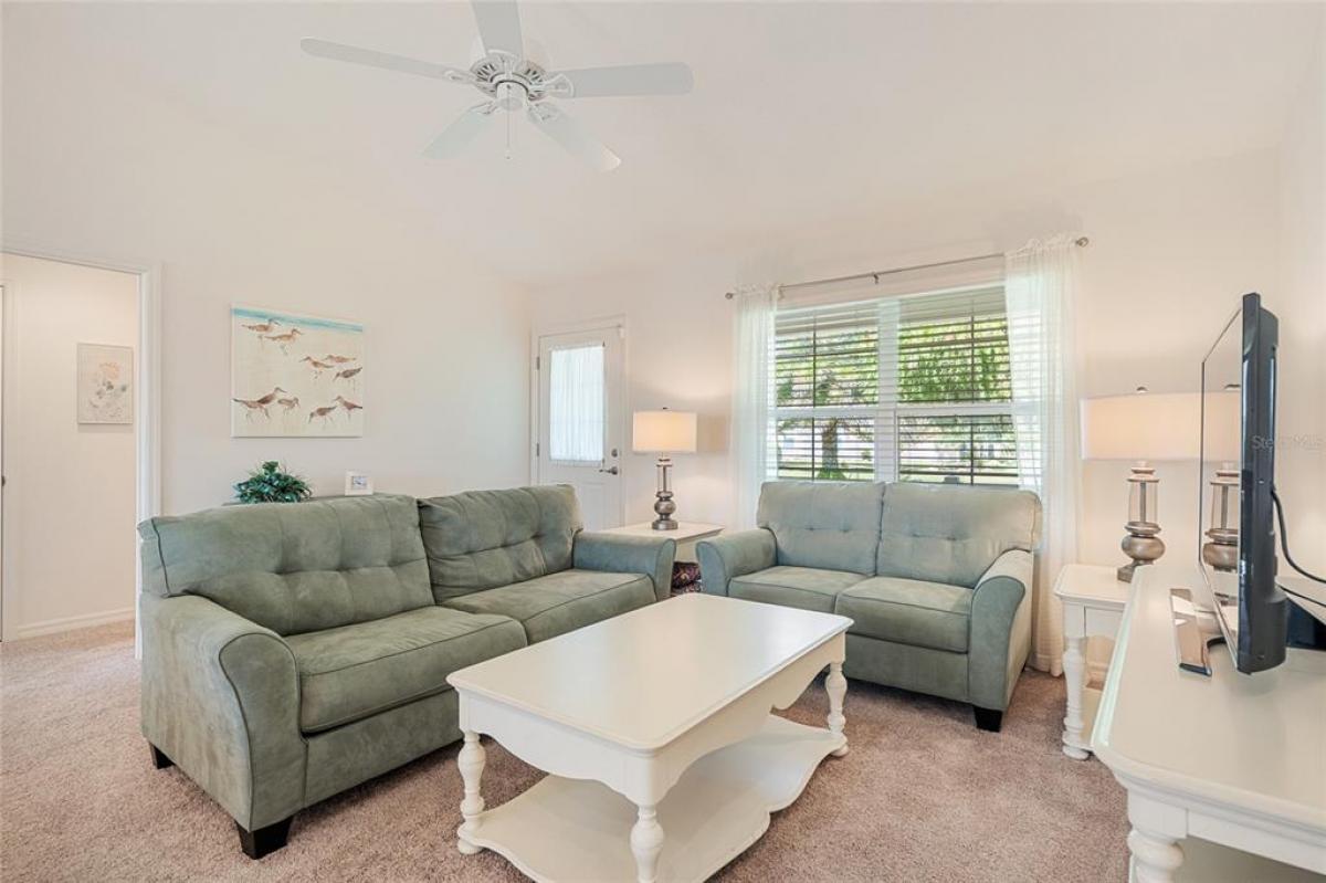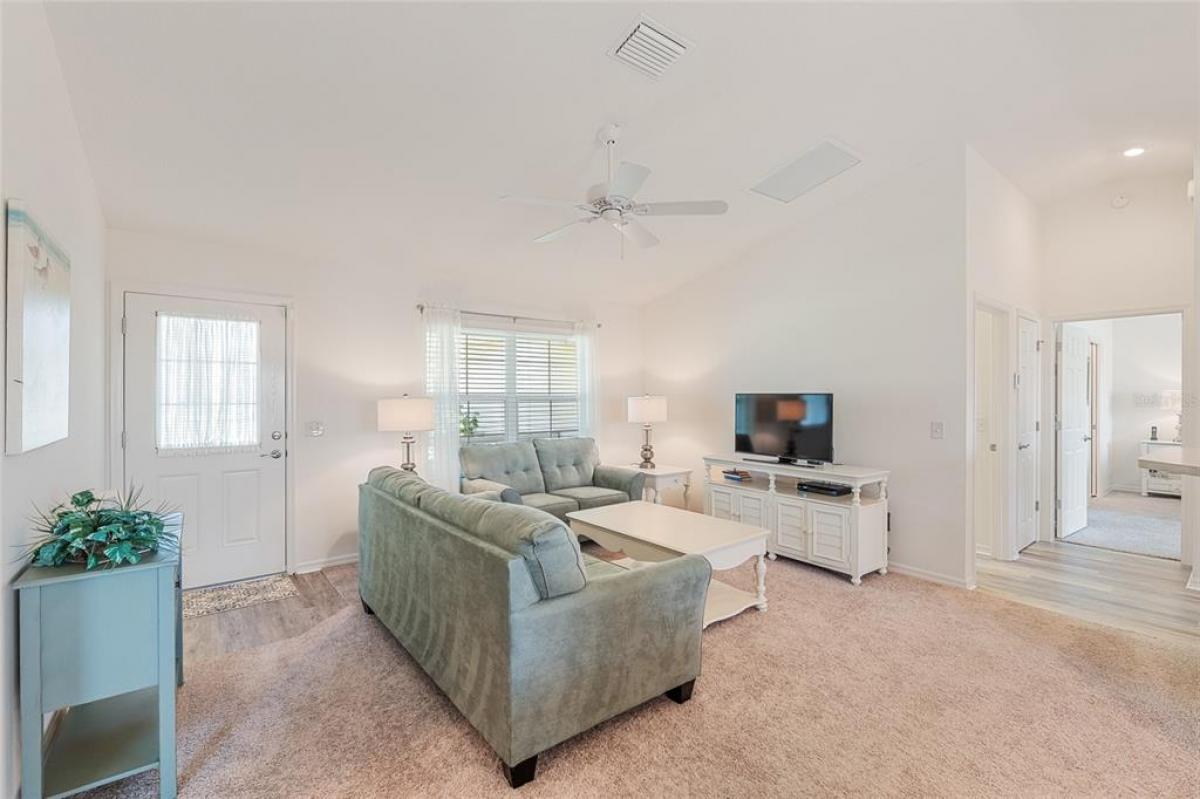 Under contract-accepting backup offers. NEW PRICE ! Plus Home is Now Being Offered Turnkey! Welcome to 3505 Boardroom Trail. Location, Location, Location! You will be close to Belle Glade Championship Country Club with its fabulous FMK Restaurant and 27 holes of challenging golf. This well maintained Three bedroom - Two bath Sun Kissed model is ready for a quick close. The soaring ceilings give it a very open feel. You will enjoy this lightly lived in home that was used seasonally. It will be a great place to get your Villages life started. The friendly neighborhood pool is just down the street! Burnside Family Recreation Center is a short cart ride away. Three additional Executive Golf Courses (Volusia, Escambia, & Okeechobee) are not far from the home either. Living in the Village of La Belle North, you will be spoiled with shopping at either the Walmart Neighborhood Store and Gas Station or Colony Plaza, which is also just minutes away, complete with Restaurants, Banking, Fast Food, Fuel and Healthcare. This defines convenience! Special features of this home include a welcoming open front porch, a 15x9 enclosed lanai, plus a 15x9 birdcage for outdoor entertainment with custom painted flooring. The kitchen has neutral colored durable laminate counters, solid wood cabinets, stainless appliances and a breakfast bar as the gathering point for friends and family. The kitchen, laundry and bathrooms have stylish luxury vinyl flooring. Each of the bedrooms has ceiling fans with light kits. You will love the storage space since both guest bedrooms have closets. and the primary suite has a very large walk-in closet. In the primary bedroom with ensuite bath, there are dual sinks and a step-in shower. The garage also has custom finished floor for a very clean look. If you are looking for a clean affordable home to start your life in The Villages, this should be the one! If interested this home could be yours with a separate turnkey package that includes a 2016 Yamaha golf cart which many upgrades. Low Bond balance - Call today!
