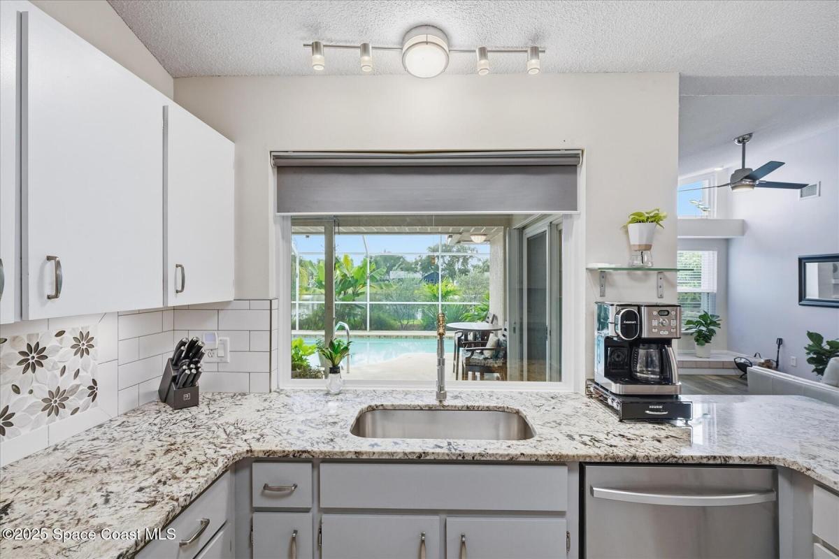 Beautiful Florida Style Pool home with solar heating, located on the lake. New Metal Roof Dec. 2021 with 2 solar attic fans. The floorplan is well designed with formal living room, large family room with wood burning fireplace. Granite kitchen with large plate window to soak in the views of the pool and lake. Split bedroom floorplan, inside utility room. The primary suite is very large, and the bathroom was recently remodeled with a HUGE walk in shower with a natural stone floor, large walk in closet with custom built-ins. New inside A/C 2025, guest bathroom tub just resurfaced. Partial Accordion hurricane shutters. Guest bedroom Murphy Bed conveys with the home. Upgraded landscaping throughout, lots of fruit trees. Enjoy quiet evenings or morning coffee on the front porch. This central location in minutes to anywhere in Melbourne & the Beaches.