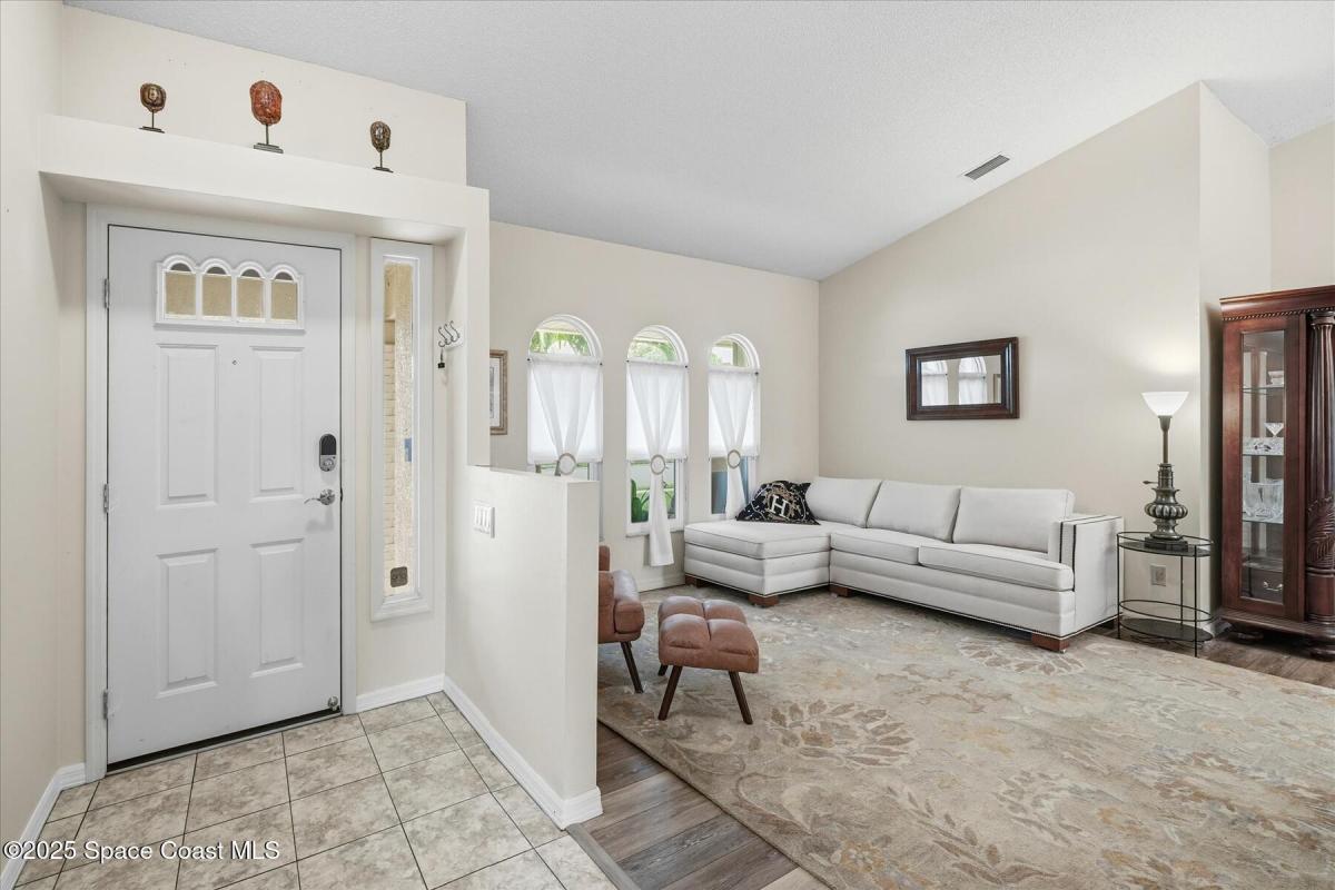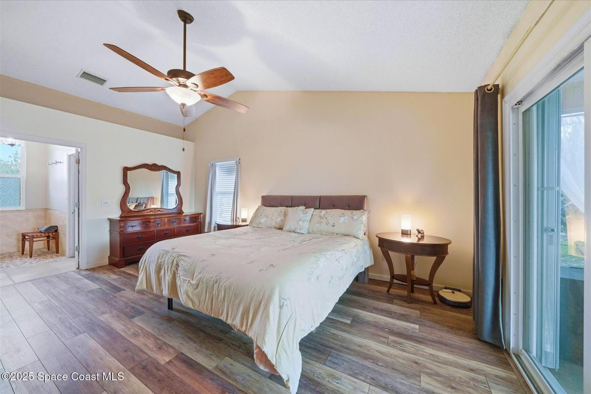 Beautiful Florida Style Pool home with solar heating, located on the lake. New Metal Roof Dec. 2021 with 2 solar attic fans. The floorplan is well designed with formal living room, large family room with wood burning fireplace. Granite kitchen with large plate window to soak in the views of the pool and lake. Split bedroom floorplan, inside utility room. The primary suite is very large, and the bathroom was recently remodeled with a HUGE walk in shower with a natural stone floor, large walk in closet with custom built-ins. New inside A/C 2025, guest bathroom tub just resurfaced. Partial Accordion hurricane shutters. Guest bedroom Murphy Bed conveys with the home. Upgraded landscaping throughout, lots of fruit trees. Enjoy quiet evenings or morning coffee on the front porch. This central location in minutes to anywhere in Melbourne & the Beaches.