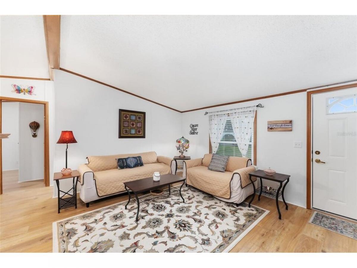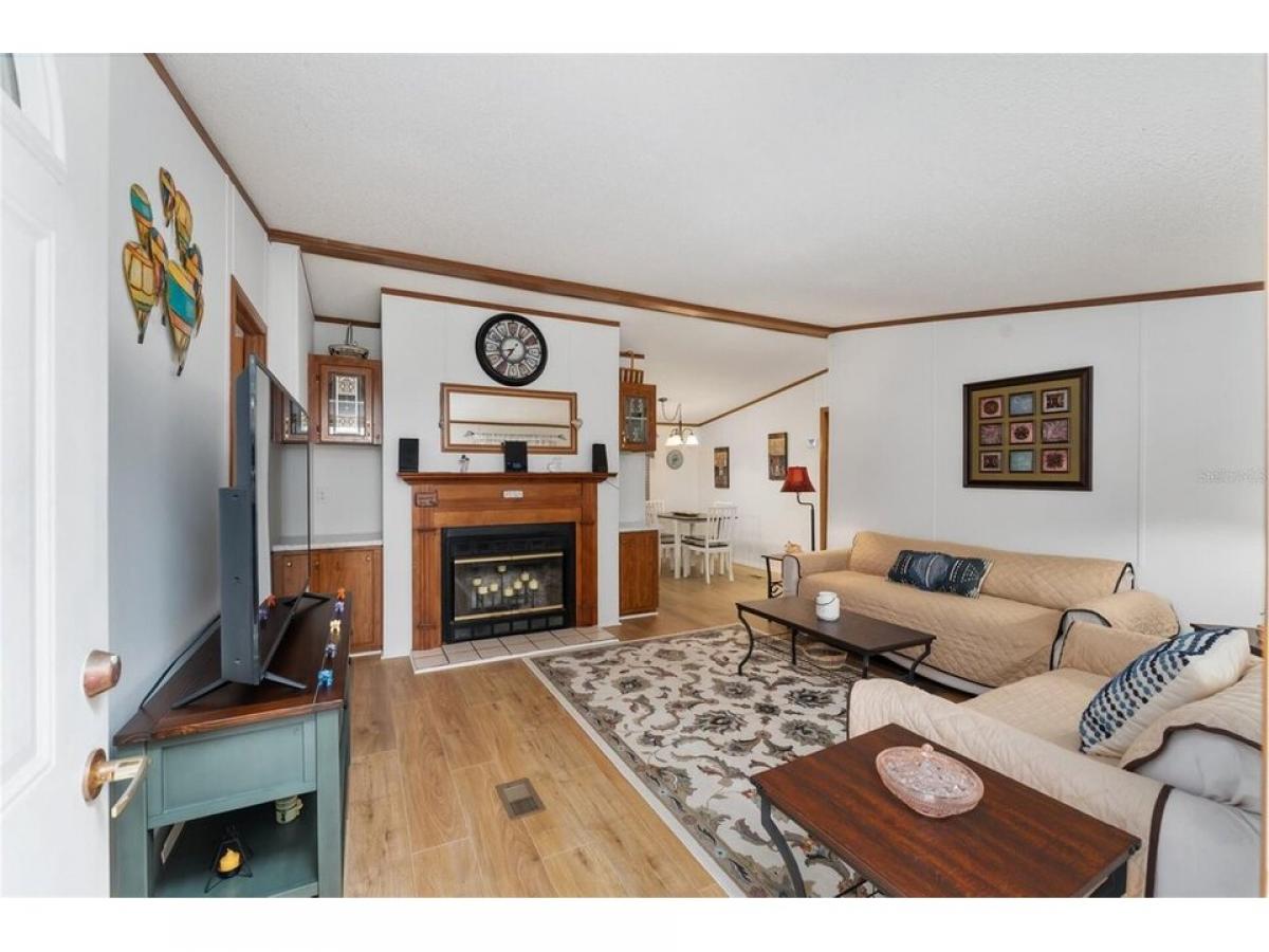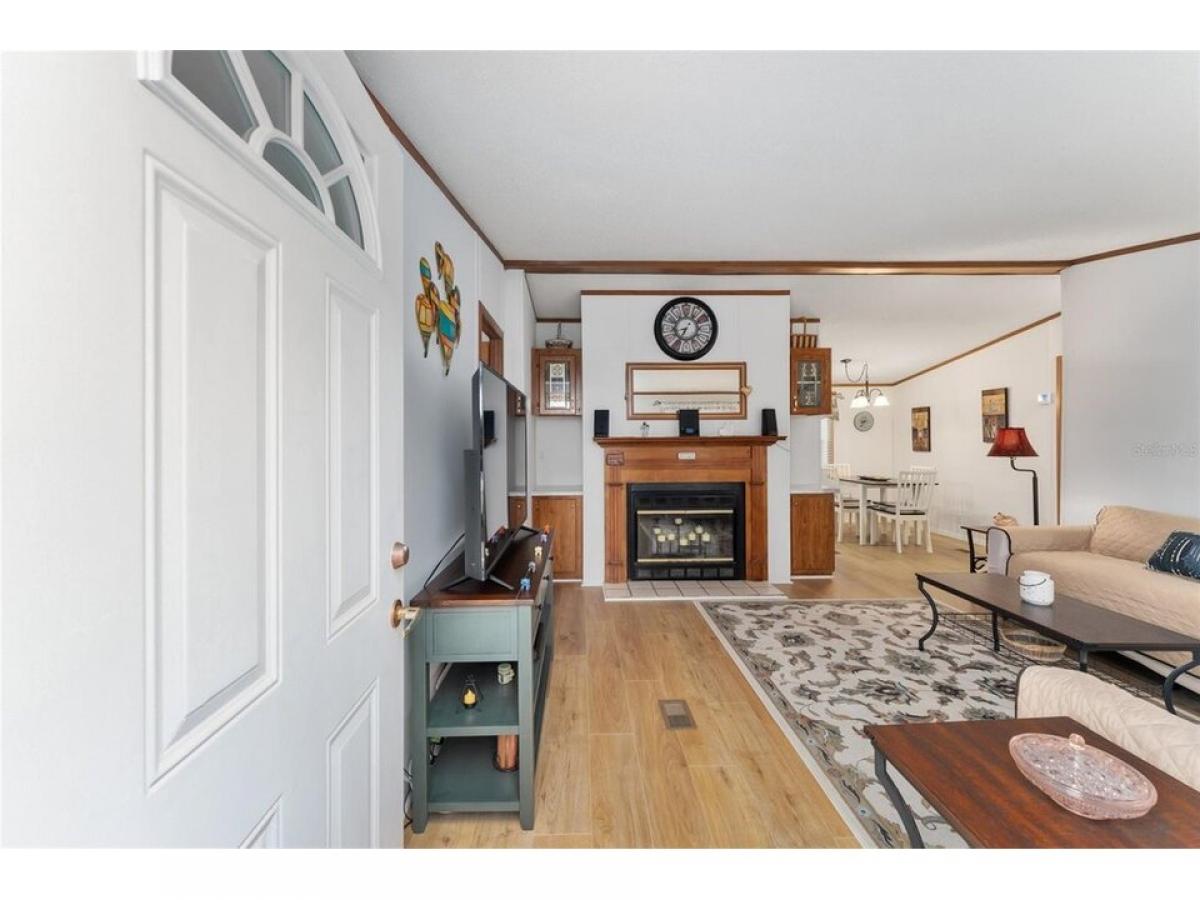 **UNDER CONTRACT ACCEPTING BACK UP OFFERS ** Welcome to this meticulously maintained home in a great location. It is easy to get to the villages with no HOA OR CDD fees. You will love the almost quarter acre that this home is situated on. As you arrive, you will notice the LOW-MAINTENANCE landscaped yard, new stairs into your bright and NEUTRAL PAINTED home, and the storm door welcoming you in. This home has three bedrooms and two bathrooms. VINYL PLANK flooring throughout, high ceilings, and a built-in attractive fireplace in the living room. The Primary bedroom has a walk-in closet, and the en-suite bath has been updated with a NEW VANITY, WALK-IN SHOWER. You will love this OPEN SPLIT FLOOR PLAN with the guest bedrooms on the opposite side of the home, and the guest bathroom has a tub/shower and a new vanity. The kitchen has been newly updated and boasts NEW COUNTERTOPS, CABINETS, NEW SINK, and FAUCET. INSIDE LAUNDRY, The backyard has a COVERED BACKPORCH W/ NEW ROOF 2024. PLUS, a brick paver area! LIVE WORRY-FREE W/ NEW WELL 2024, LIFETIME WARRANTY WINDOWS, A/C 2022, HOT WATER HEATER 2024 AND ROOF 2012. Call today to see this fabulous home in person today!