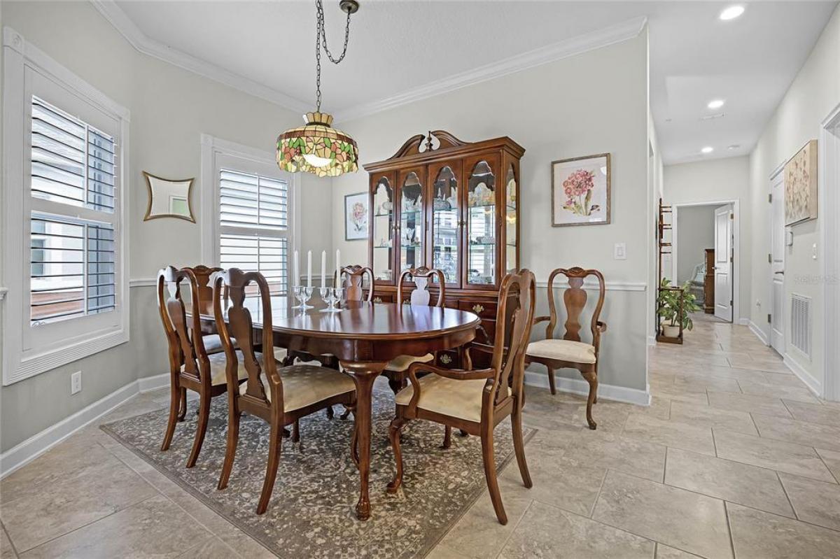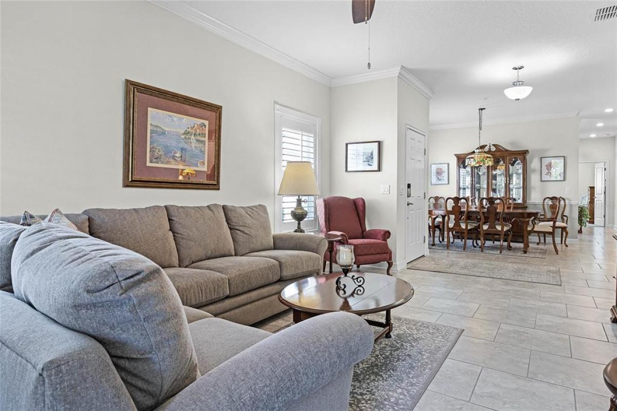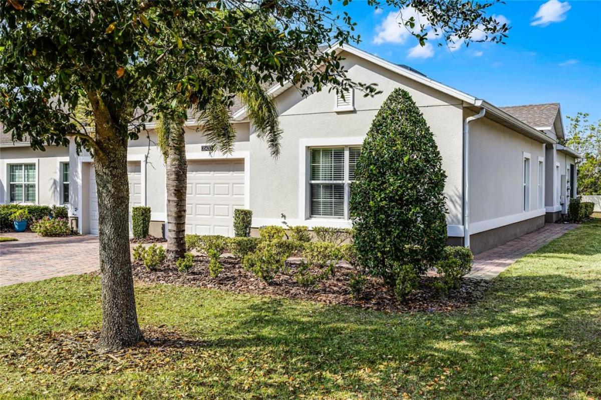 Heritage Hills is a sought after 55 plus community in beautiful Clermont! This popular St. Marten villa is a 2 bedroom with 2 full baths plus a flex room with a one car garage! Loads of upgrades in this villa! Plantation shutters on all the windows including the sliding glass door to the lanai. There is crown molding, ceramic tile in the main living area and carpet in the 2 bedrooms. The screened lanai is a perfect place to relax and enjoy the outdoors with no rear neighbors! Lots of privacy! The split bedroom plan is perfect for guests! The washer and dryer stay! The kitchen has tons of cabinets and granite countertops with a breakfast bar with pendant lighting. The windows in the family room and dining room bring lots of natural light inside! Furnishings optional. Heritage Hills amenities include a heated pool and spa, pickle ball, tennis, basketball, bocce ball, shuffleboard, clubhouse with planned activities, lots of clubs to join, fitness center, art and crafts room, billiard room, card room and ballroom for holding events. Exterior is painted every 5-6 years! The roof is replaced at year 15 and the reclaimed irrigation water is included in the HOA fee. There is a 5 mile walking trail around the community. Call today for a private showing!