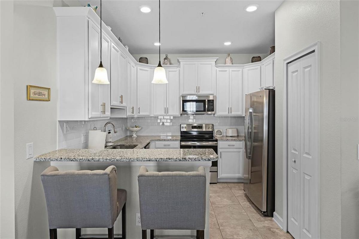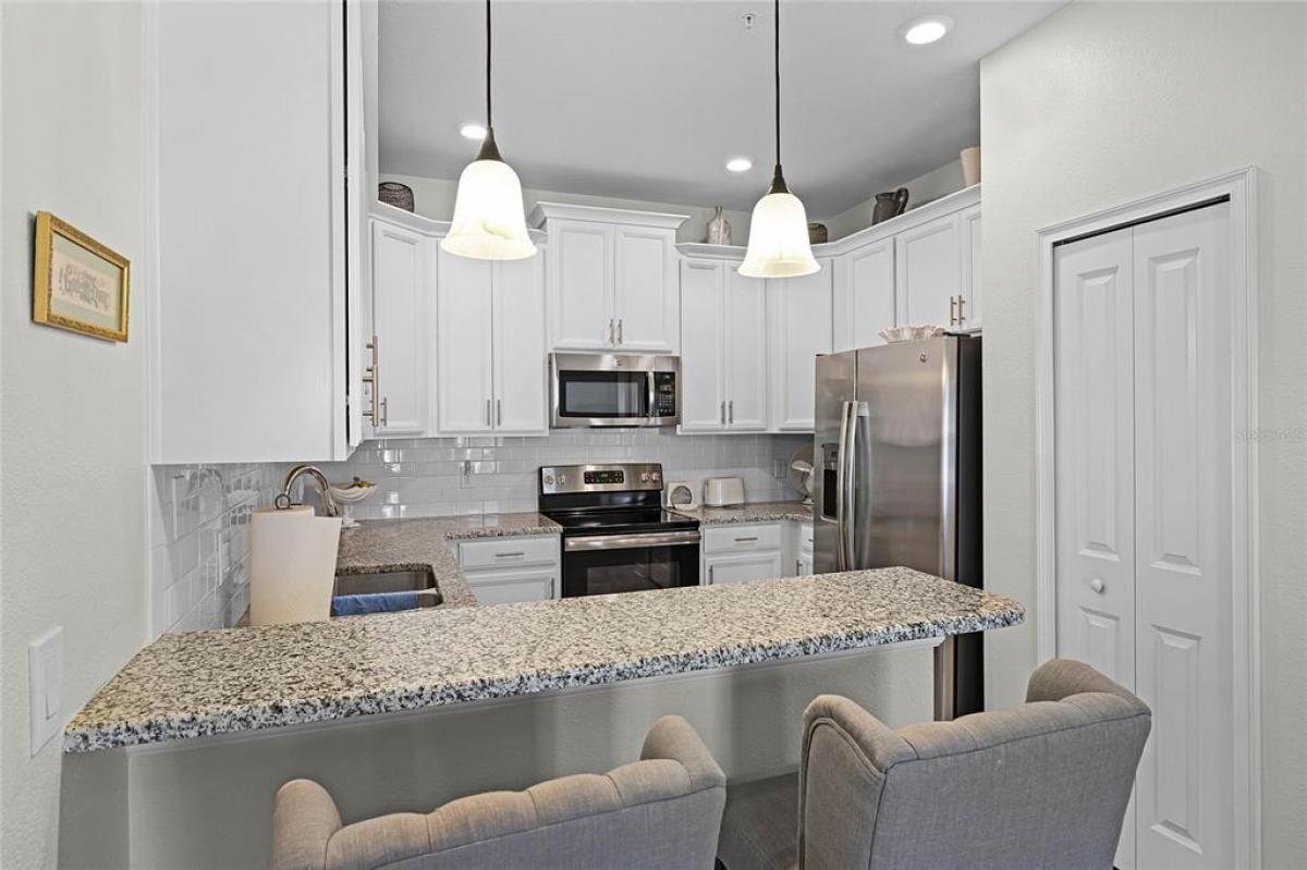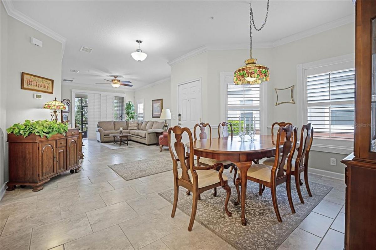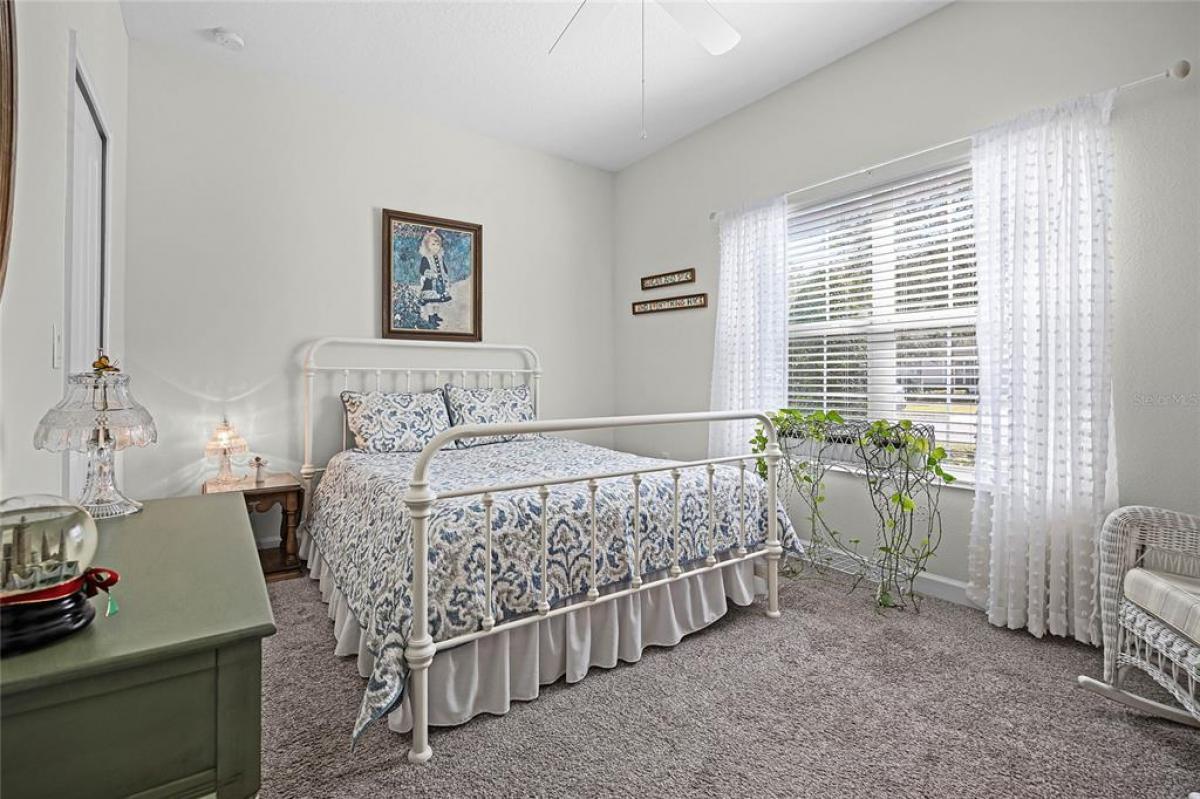 Heritage Hills is a sought after 55 plus community in beautiful Clermont! This popular St. Marten villa is a 2 bedroom with 2 full baths plus a flex room with a one car garage! Loads of upgrades in this villa! Plantation shutters on all the windows including the sliding glass door to the lanai. There is crown molding, ceramic tile in the main living area and carpet in the 2 bedrooms. The screened lanai is a perfect place to relax and enjoy the outdoors with no rear neighbors! Lots of privacy! The split bedroom plan is perfect for guests! The washer and dryer stay! The kitchen has tons of cabinets and granite countertops with a breakfast bar with pendant lighting. The windows in the family room and dining room bring lots of natural light inside! Furnishings optional. Heritage Hills amenities include a heated pool and spa, pickle ball, tennis, basketball, bocce ball, shuffleboard, clubhouse with planned activities, lots of clubs to join, fitness center, art and crafts room, billiard room, card room and ballroom for holding events. Exterior is painted every 5-6 years! The roof is replaced at year 15 and the reclaimed irrigation water is included in the HOA fee. There is a 5 mile walking trail around the community. Call today for a private showing!