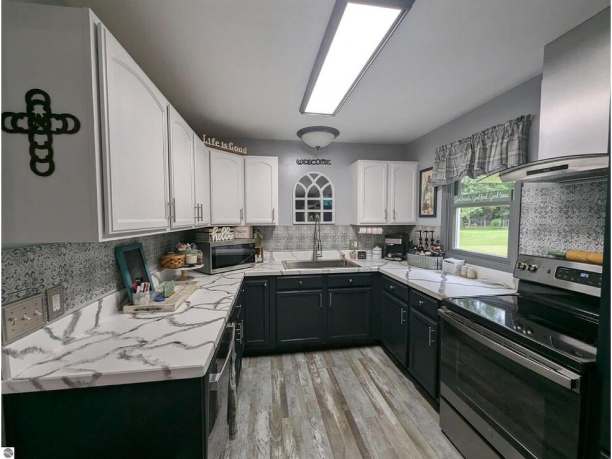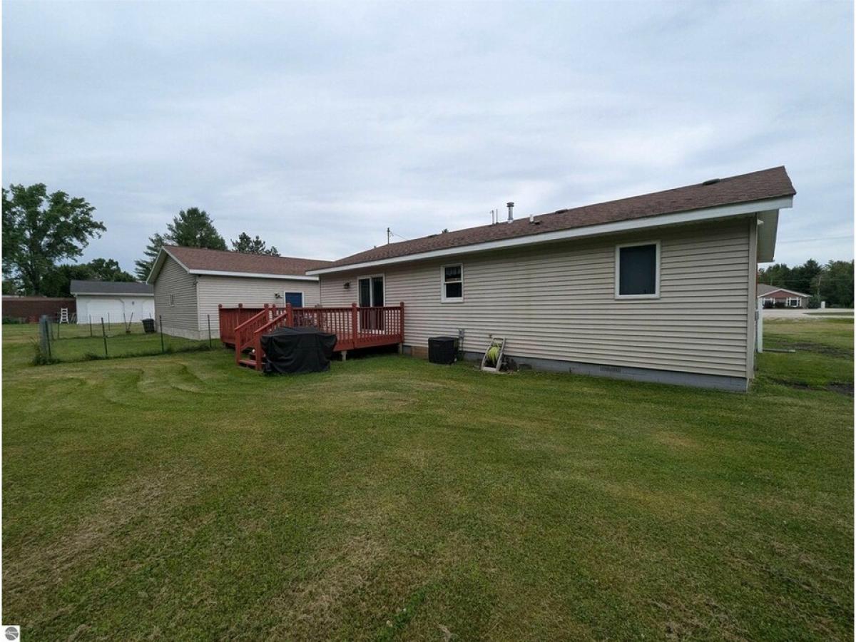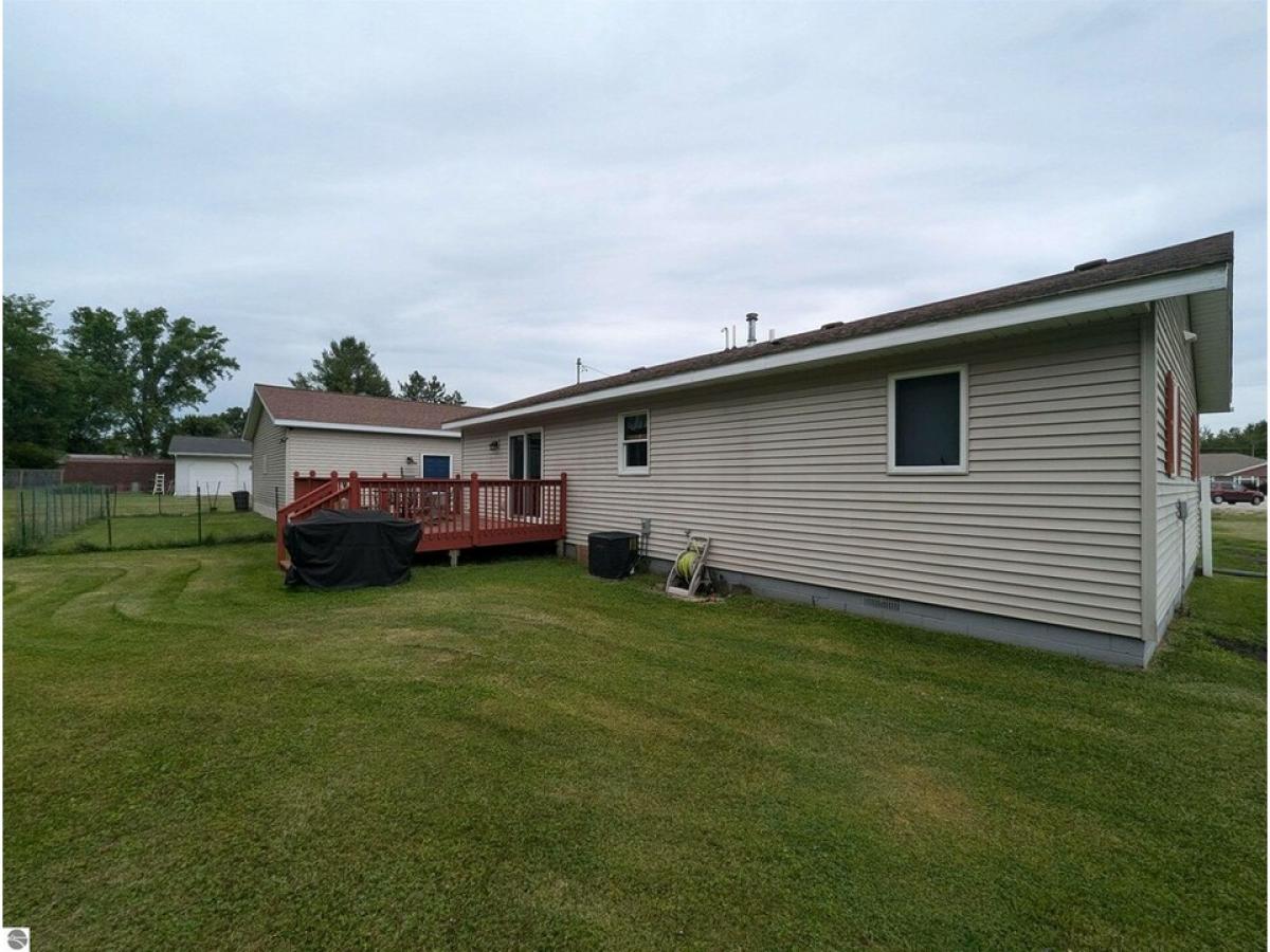 An immaculate ranch home sitting on just over an acre close to M-61, I-75, Standish, etc!! This three bedroom, one bath home has been updated and offers a sleek and clean look. Features include a welcoming covered front porch, back deck, central air added in 2024, natural gas furnace added in 2018, Andersen windows, generator hookup added in 2024 that will power the home and garage, connection into city sewer in 2024, flooring/fixtures/faucets and appliances in 2023/24, and two driveways. Enjoy a cozy back deck overlooking the large back yard. For storage there is an awesome 28x36 outbuilding with power including a 220 outlet, concrete floors, two overhead doors, upper level storage, and a built in speaker system! This home and property has been extremely well cared for and is ready for the next owner!