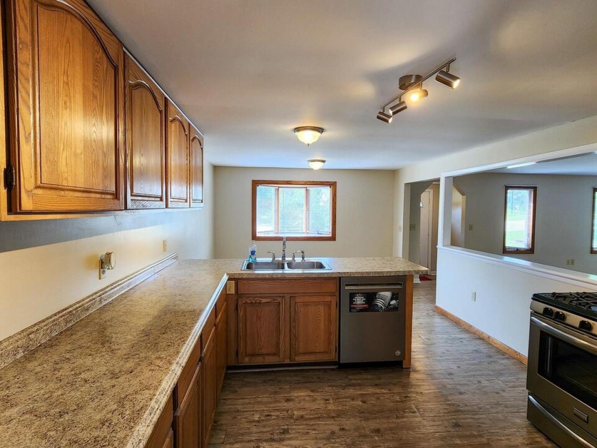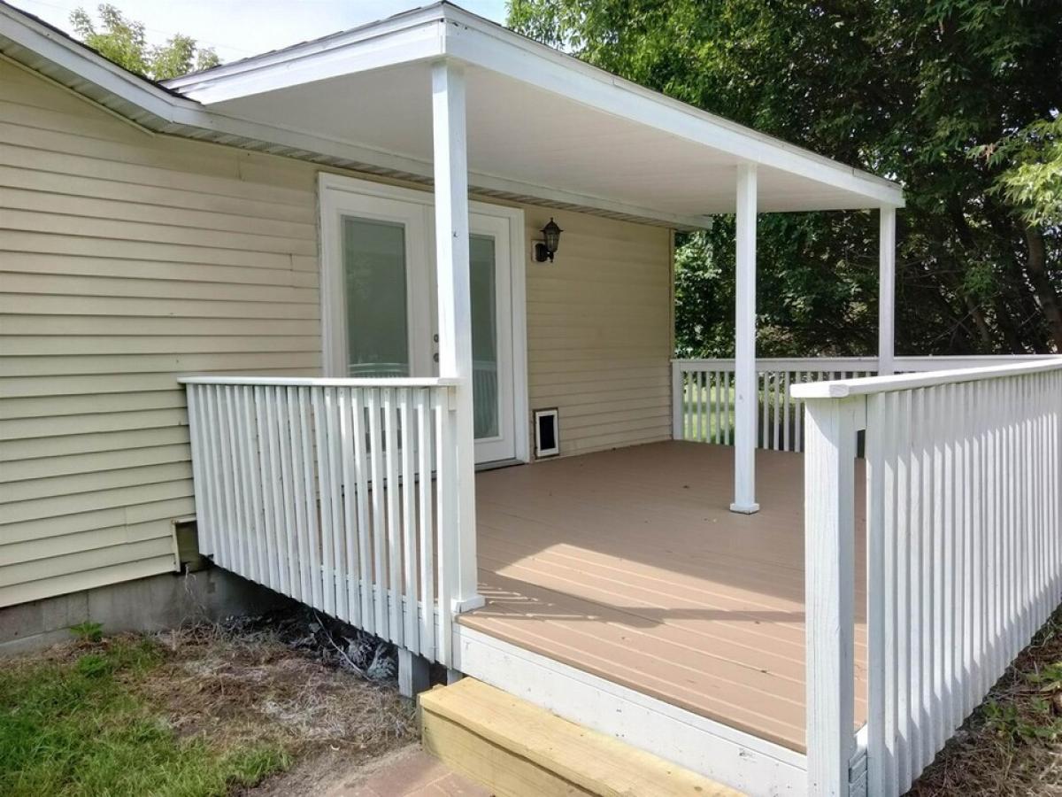 Prime Location in the Village of Farwell! Situated on a spacious 1.04-acre lot, this freshly painted 3-bedroom, 2.5-bath home offers city conveniences like Spectrum TV and internet, as well as city sewer and water services. The primary ensuite features a half bath, walk-in closet, with double glass doors leading to a covered deck that overlooks a partially fenced backyard. The other two bedrooms are located near a full bathroom, providing a sense of privacy. Off the kitchen, there is another full bathroom for guests and a separate laundry/utility room. The kitchen is equipped with stainless steel appliances, including a stove, refrigerator, and dishwasher, along with oak cabinetry that flows seamlessly into the dining room. An open pass-through window connects the kitchen to the living room, creating a spacious, open floor plan. The side yard boasts two apple trees and raised garden beds, perfect for gardening enthusiasts. Additionally, the property includes a freshly painted 2.5-car detached garage with plenty of space for a workshop. This home combines comfort, convenience, and a great location!