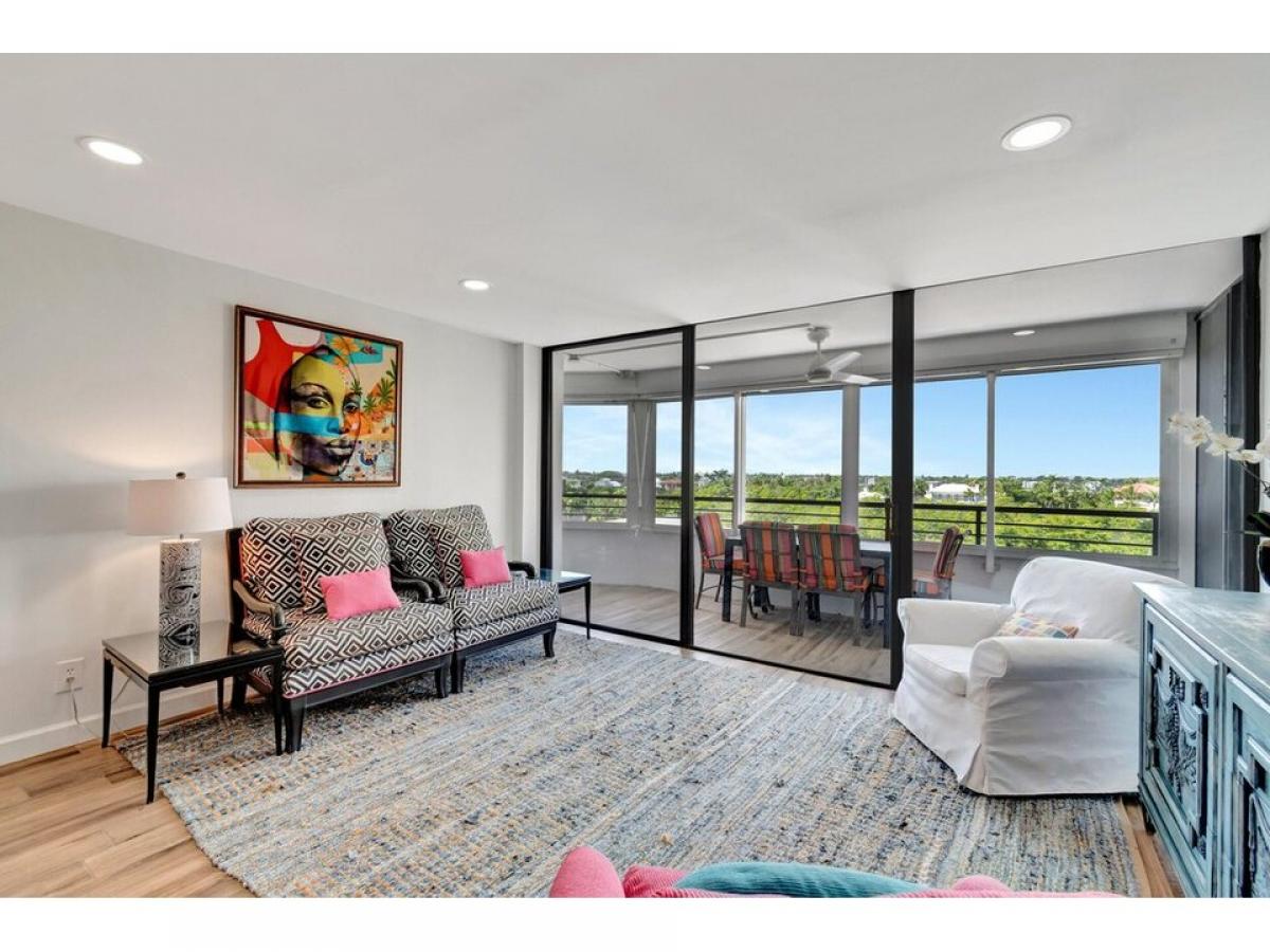 Updated 2/2 on barrier island! Tranquil Intracoastal and Sunset Views! Split bedroom floor plan. Renovated kitchen with granite counters, plus designer baths! Inviting living area with generous space for entertaining and relaxing with family and friends. The heart of the space is balcony, which connects a bedroom, kitchen and primary living area. It is deep and long, so the space is wonderful for all occasions. The condo has impact windows and shutters so it is ready for storms. The property has a pool on the ICW plus an Ocean Club on the sand, with an additional pool and outdoor BBQ and indoor kitchen. Beach access is provided. The community has a gym, sauna, doorperson and loads of guest parking. NEW AC 2023/H2O Heater 2022. Community finished new roofs and concrete restoration already.