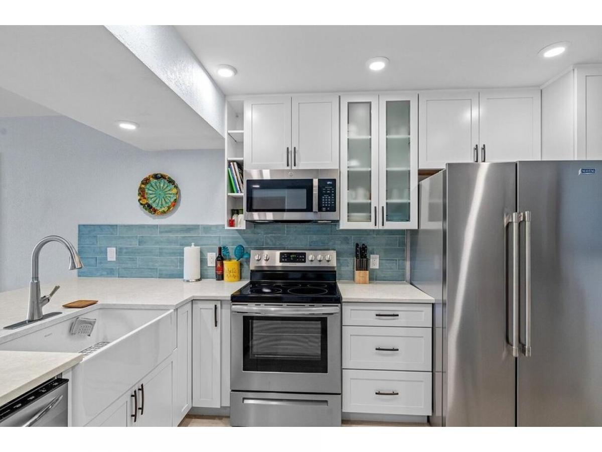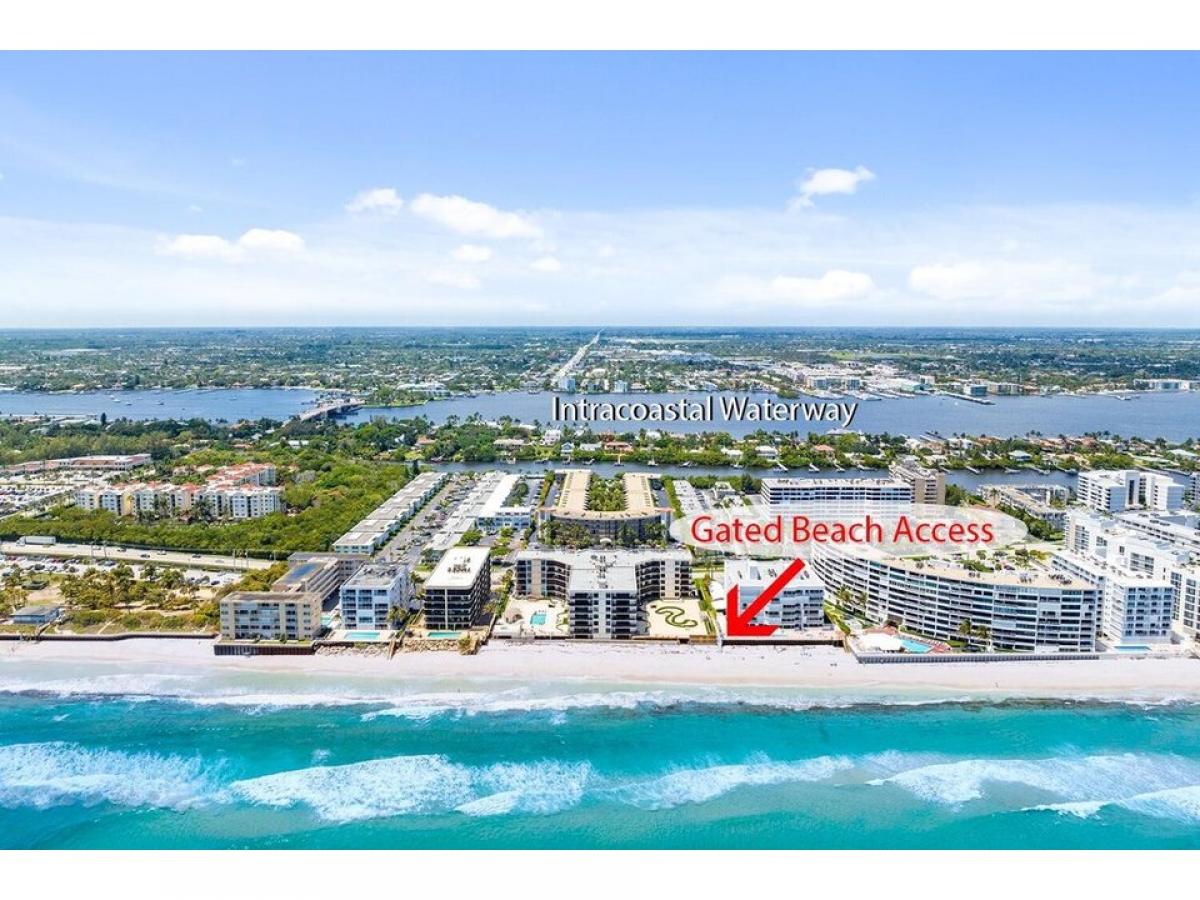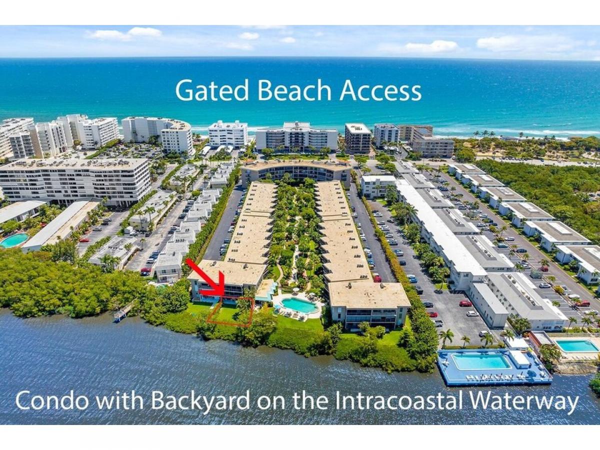 RENOVATED 2 bedroom WATERRONT condo with PRIVATE backyard #039;#039;limited common area#039;#039; on the Intracoastal. Walk across the street to the OCEAN with PRIVATE gated BEACH access! Bright new kitchen with open concept dining amp; living room, with upgraded Impact hurricane windows amp; slider that is great for entertaining. This 2-bed (previously 3 bedroom), 2.5-bath home with large master bedroom amp; ensuite bathroom, walk-in closet amp; private laundry room. 2nd bedroom also has a full bathroom amp; walk-in closet.Located only steps to the heated waterfront pool and assigned parking near the unit at the end of covered walkway. BBQ area, doorman, on-site manager and the private beach access across the street. Only 20 minutes to to the Palm Beach airport, close to shops amp; the Old Key Lime House