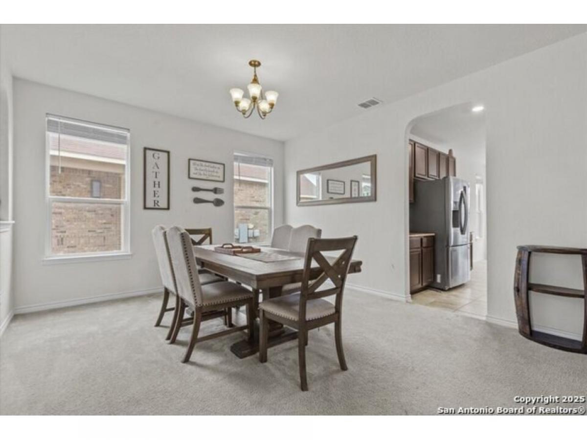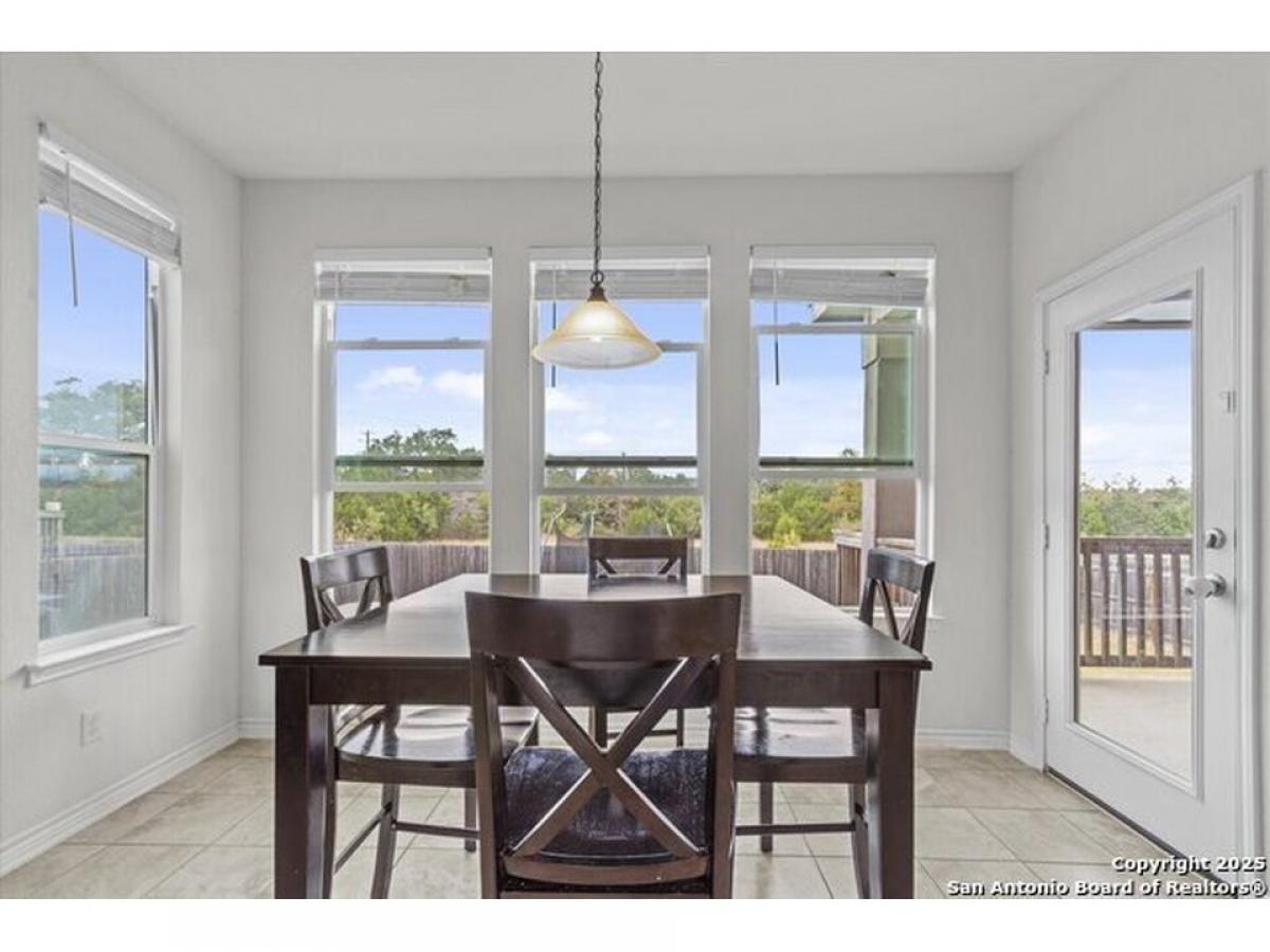Come experience the charm and elegance of this stunning home in the desirable Edgewood community of Bulverde! With five spacious bedrooms and three full baths, this home provides the perfect balance of comfort, style, and functionality. Step inside and be greeted by an open-concept layout designed for effortless living. The gourmet kitchen is a chef#039;s dream, featuring a large stylish island, sleek countertops, and ample cabinet space-ideal for cooking, entertaining, and gathering with loved ones. With two dining areas, you#039;ll have plenty of space for both intimate meals and larger celebrations. Upstairs, a generously sized loft offers endless possibilities-it can be used as a cozy secondary living area, an entertainment hub, or even a game room for endless fun. The primary suite is a true retreat, featuring a spa-like ensuite bath and a spacious walk-in closet. Outside, unwind on the covered back patio, perfect for enjoying your morning coffee or relaxing after a long day. The private backyard is an oasis of tranquility, with no back neighbors, offering the perfect setting for outdoor gatherings, barbecues, or simply soaking in the peaceful surroundings. This home is the perfect blend of beauty, space, and privacy in a fantastic location. Don#039;t miss your chance to make it yours-schedule your showing today!