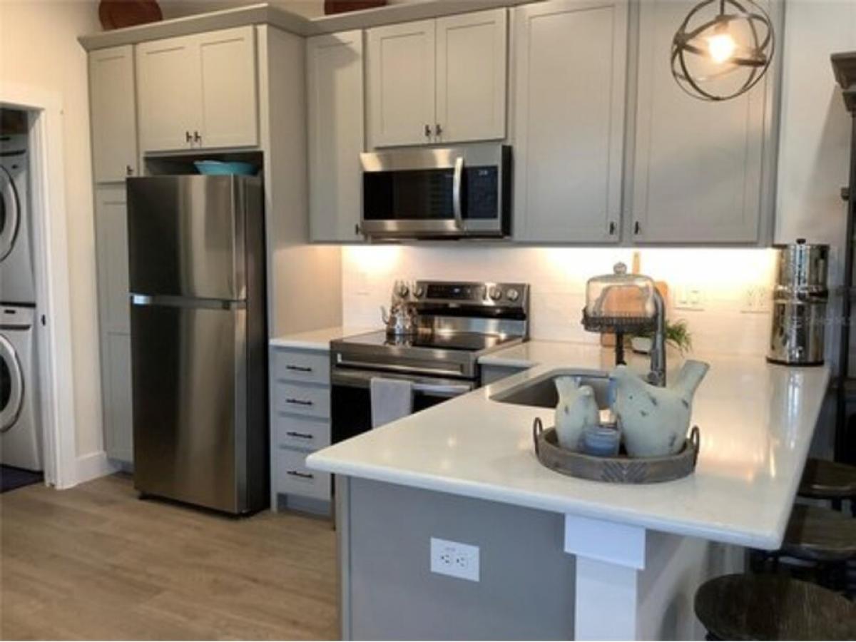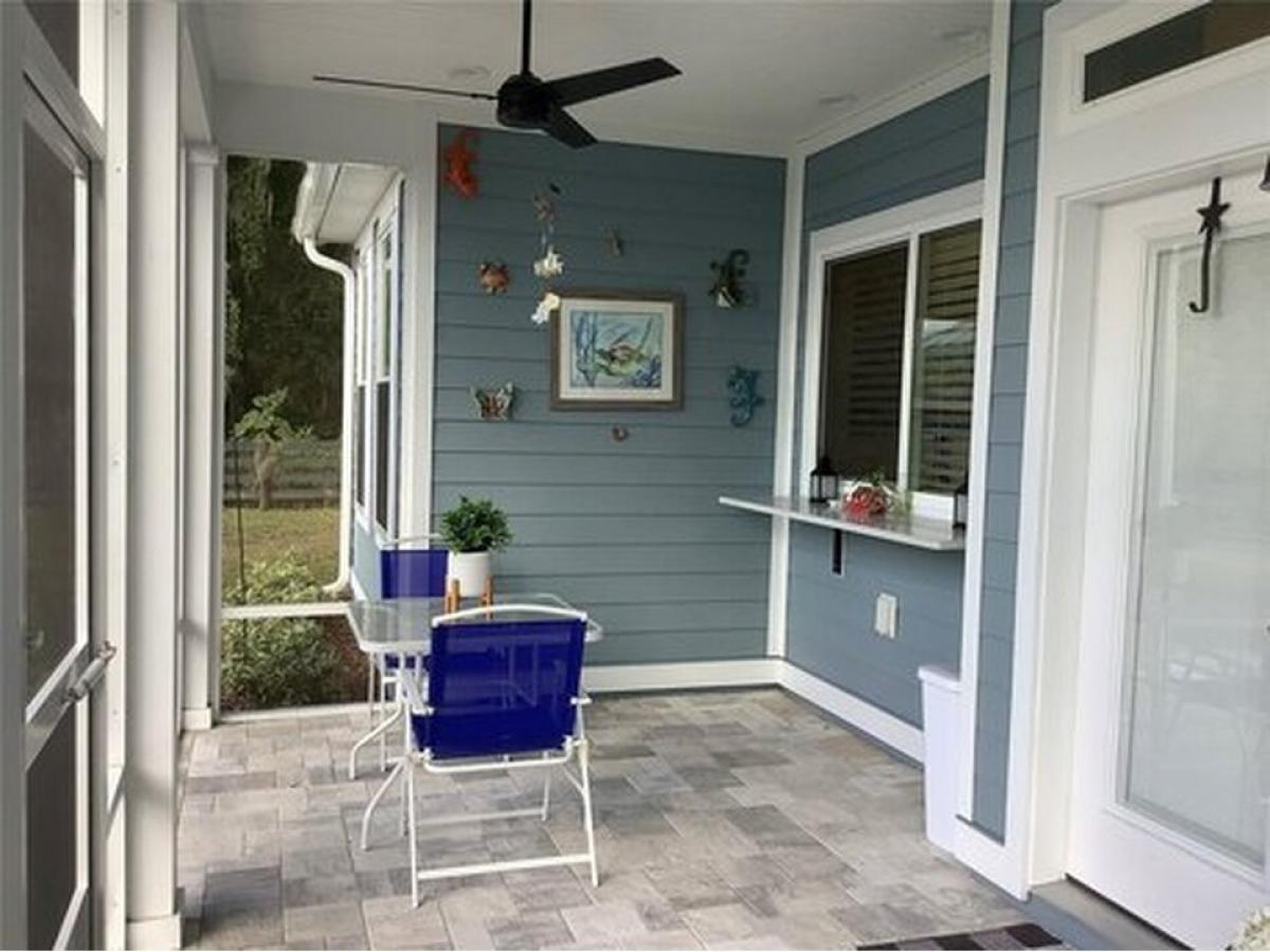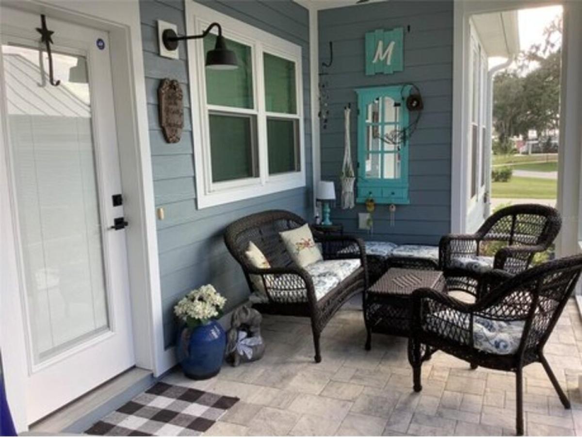 This CHARMING COTTAGE is just waiting for you! Built in 2022. This home has a PRIVATE WOODED REAR VIEW. With a split floorplan and all the upgrades this luxurious home is bathed in natural light. Come sit on the large screened porch with your new friends and enjoy a cold drink. Porch features ~ CEILING FANS~ PASS THROUGH WINDOW~ The OPEN FLOOR PLAN with HIGH CEILINGS and CROWN MOLDING is so inviting. QUARTZ COUNTER TOPS THROUGH OUT ~ STAINLESS STEEL APPLIANCES~ UNDER CABINET LIGHTING ~ SUBWAY TILE BACKSPLASH~ NEUTRAL COLORS ~ Guests have a POCKET DOOR to shut for privacy making their own little suite. Two FULL Baths with LARGE TILED SHOWERS~ FULL SIZE STACKED WASHER amp; DRYER~ THERMOSTAT can be operated remotely from phone~ CUSTOM SHED gives ample storage. A great place to work from home or a short commute to The Villages. A paradise in a gated community, amenities, convenience to shopping, medical facilities and entertainment. Enjoy your time with no worries about maintaining a lawn. Your monthly lot lease includes.....water, sewer, trash, irrigation, cable, internet, lawn maintenance, and amenities. Enjoy the beautiful POOL and FIREPIT with VIEWS of the LAKE. Are you a PICKLEBALL player? There is a pickleball court along with a DOG PARK, CLUBHOUSE, COMMUNITY GARDENS, FITNESS FACILITY, STOCKED COMMUNITY TOOL SHED, YOGA CENTER, and ORGANIZED CLASSES amp; ACTIVITIES. So if your ready for a SIMPLER LIFESTYLE then you need to see this home with MATURE LANDSCAPING and BEAUTIFUL CURB APPEAL!
