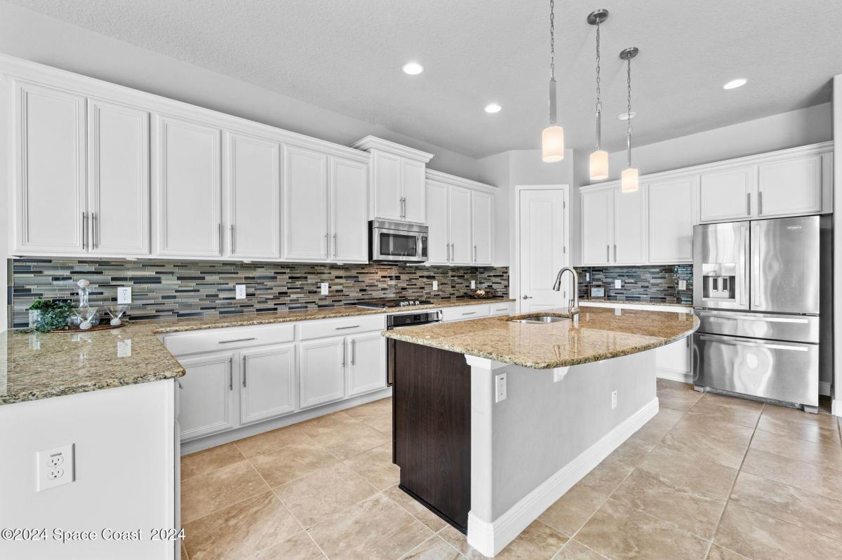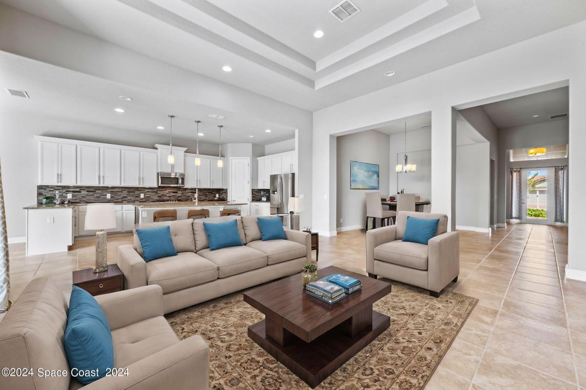 * BEASCH SIDE LUXURY LIVING * Located in the Prestigious Gated Community of OCEANSIDE VILLAGE, this Executive Home is just minutes away from both the Beach & River. Meticulously designed to elevate comfort with an open floor plan that seamlessly integrates the living, dining & kitchen areas. Your family will enjoy living spaces that are both elegant and functional. The gourmet kitchen is the heart of the home with beautiful white shaker cabinets, table height island, granite countertops, gas range, pantry, modern lighting and spacious eat in area. Family room features tray ceilings & triple sliders to the patio area. Home is loaded w/high end finishes. Plantation Shutters, Soaring Ceilings, Paver Driveway, 2.5 Car Garage, Tile Roof, Hurricane Shutters & more. Fourth bedroom can be used as an office/study. Resort Style Amenities include a community pool, basketball, tennis, pickleball, playground & clubhouse. Close to restaurants and shopping. Lawn Care included! FENCING ALLOWED!