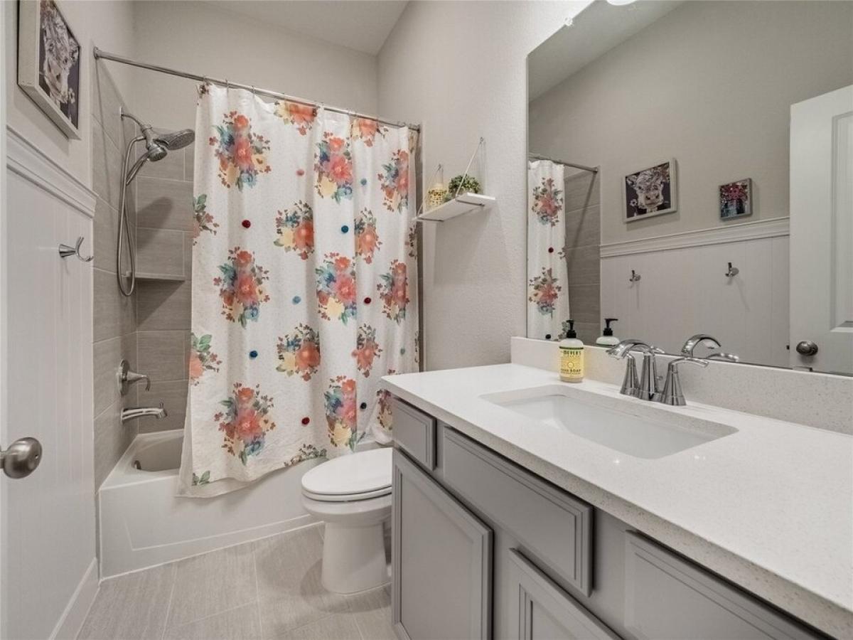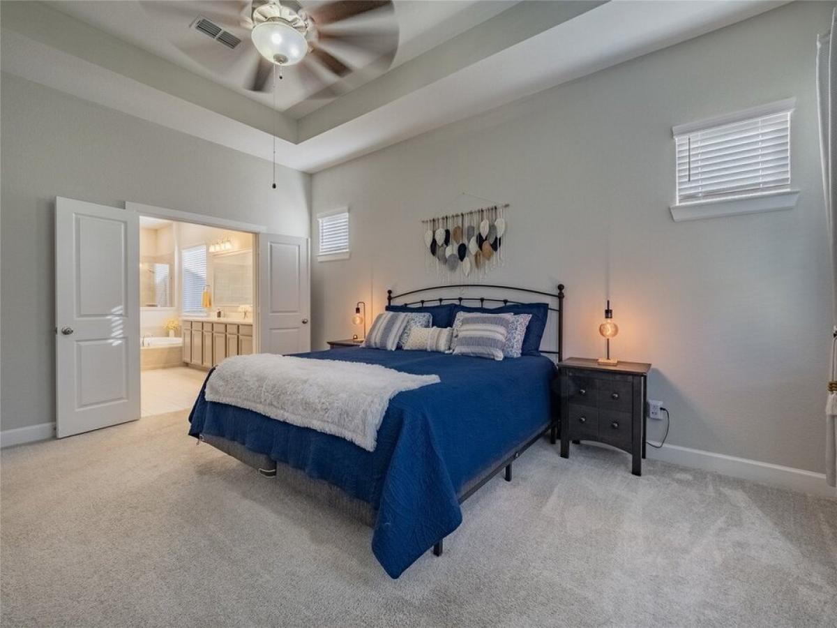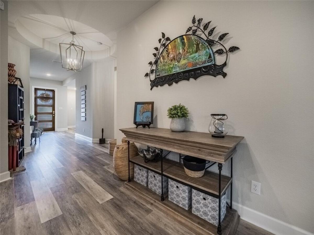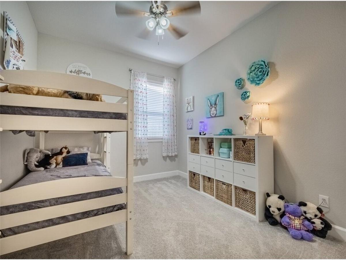 Introducing your dream home that perfectly balances modern living w/functional design. Yoursquo;re greeted w/foyer featuring rotunda w/chandelier. Open floor plan seamlessly connects the living spaces, creating an inviting atmosphere for entertaining or everyday living. The heart of the home boasts an oversized 13-foot island, great cabinet space, S/S appliances. Enjoy working from the comfort of your own office/flex room. 4 generous bedrooms w/3.5 baths. Primary suite offers a spa-like bathroom w/soaking tub, separate shower, walk-in closet. Guest suite w/full bath. Natural light fills the dining area/sunroom. Enjoy the evenings on your covered extended patio. An air-conditioned attic and 3-car tandem garage provide ample space for storage. Schedule your tour today and envision your life in this beautiful abode. Community amenities include lazy river, wave pool, 2 family pools, kiddie pool, splash pad, pickle ball, 2 gyms, and many more. Do not miss out on this one.